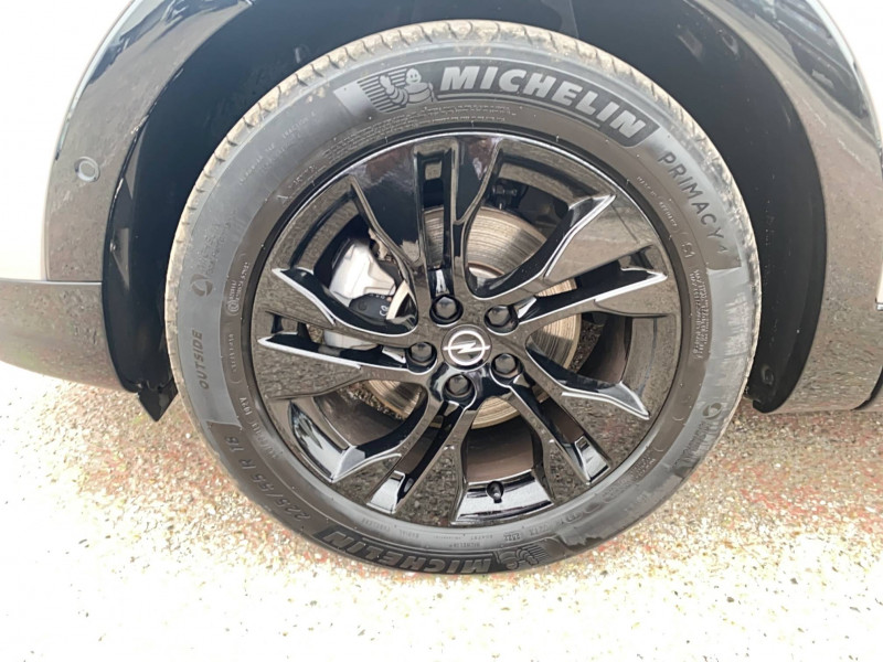 Jantes en alliage 18'', 5 double branches noir brillant / Multimedia Navi Pro Ecran tactile central de 8'' - Navigation avec cartographie Europe 3D - Reconnaissance vocale - Apple CarPlay et Android Auto - Ecran d'instrumentation digitale de 3,5" - 2 USB / Pack Black / Pack Caméra Opel Eye / Volant cuir multifonctions 3 branches à méplat / 2 Clés pliantes / 6 HP / Accoudoir avec rangement et 2 porte-gobelets / Bas de pare-choc AV/AR arches de roue : Noir brillant / Caméra de recul 180° sans radar AV et AR / Coquilles de rétroviseurs peintes en noir / Eclairage d'ambiance / Eclairage du coffre / Ecran d'instrumentation couleur 12" / Ecran tactile 10'' couleur avec Bluetooth / Kit anti-crevaison / Ligne de vitrage noire / Opel PURE PANEL / Pare-soleil avec miroir de courtoisie éclairé / Protections bas de porte Noir brillant / Rails de toit noir brillant / Rétroviseur intérieur électrochrome / Sabots de protection AV/AR Noir brillant / Sièges AV réglables dans 4 directions / Spots de lecture AV et AR / Système Isofix sièges latéraux AR / Sécurité enfants / Toit Noir Karbon