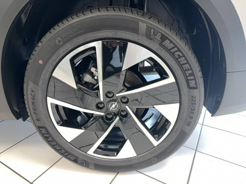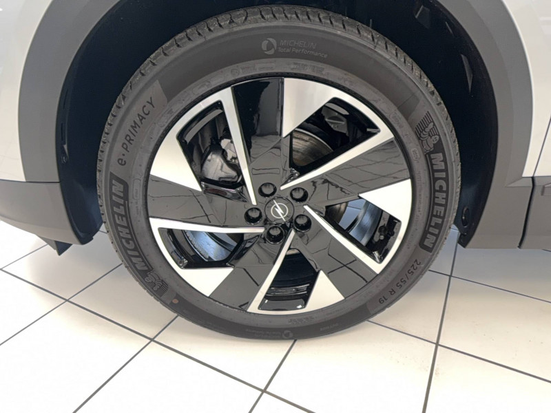 2 clés à télécommandes 3 boutons (verrouillage, coffre, déverrouillage) / 3 prises 12V (AV/AR et coffre) / 6 HP (2 haut-parleurs de porte avant, 2 tweeters avant, 2 large bande dans les portes arrière) / Airbags frontaux et latéraux conducteur et passager AV, rideaux (6 airbags) / Air conditionné automatique bi-zone avec filtre à polen et aérateurs AV/AR / Alerte de sous-gonflage des pneumatiques / Banquette AR avec dossier rabattable 40/20/40 / Boîte automate séquentielle 6 rapports / Calandre Opel Vizor 3D iluminé / Caméra de recul 180° avec buse de nettoyage / Console centrale avec porte gobelet / Console centrale Pixel Box / Contrôle de traction électronique (TCS) / Coque de rétroviseurs extérieurs noires / Décor intérieur - Carbon Metal / Décors extérieurs Noir Laqué / Détection de non-bouclage des ceintures de sécurité aux places AV/AR / Eclairage d'ambiance personalisable Edge Light / Ecran d'instrumentation digitale de 10" / Ecran infotainment de 16" avec Navigation / Jantes alliage 19" Diamanté, pneus 225/55 R19 / Kit anti-crevaison / Opel Connect (BTA) avec e-call / b-call / Pack Drive Assist / Pack Visibilité / Pare-brise feuilleté acoustique / Pare-soleils avec miroir de courtoisie conducteur et passager AV / Peinture bi-ton avec toit et spoiler AR - Noir Karbon / Phares Matrix IntelliLux LED Pixel HD / Plancher de coffre modulable 2 positions / Poches AR spécifiques smartphone / Radio FM & AM bi-tuner DAB+ (Digital Audio Broadcasting) / Recharge smartphones sans fil (15W) / Réglages lombaires pneumatiques / Sellerie mixte Tissu / TEP Bird Light - Dominante Gris / Siège passager avec fixations ISOFIX / Sièges AV ergonomiques réglables manuellement sur 10 voies / Sigle Opel AR 3D illuminé / Signature lumineuse 3D avec technologie Edge Light / Spoiler AR / Système de freinage avec antiblocage des roues (ABS) / Verrouillage centralisé avec télécommande et en roulant / Vitres AV/AR électriques avec système anti-pincement