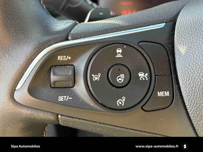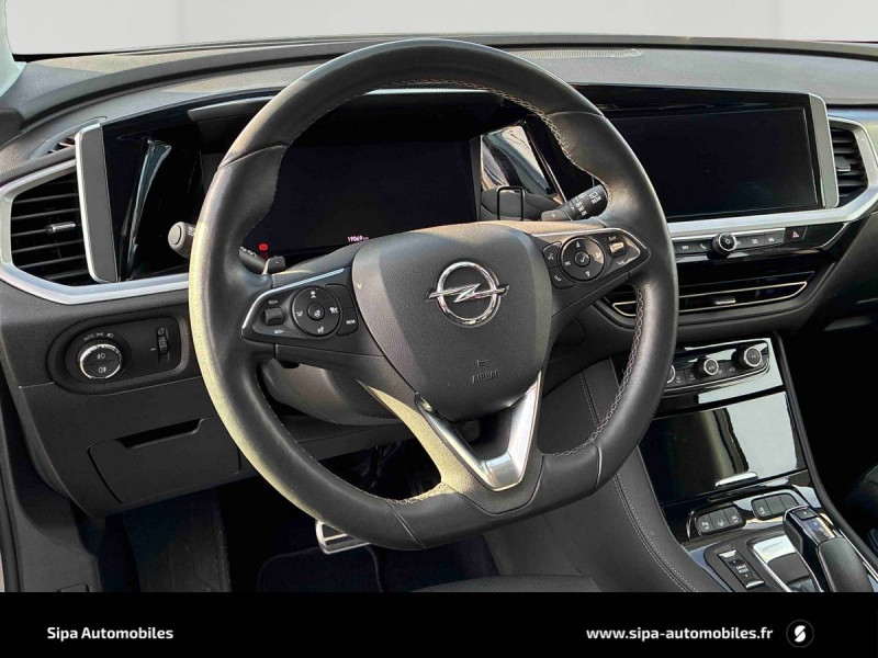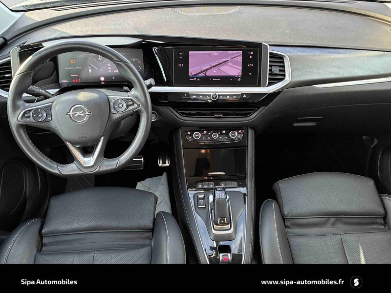 2 clés avec télécommande / 6 HP / Accoudoir avec rangement et 2 porte-gobelets / Aide au stationnement avancée : détection et avertissement des emplacements, calcul de la trajectoire et gestion automatique de la direction / Bas de pare-choc AV/AR arches de roue : couleur carrosserie / Calandre Opel Vizor / Caméra panoramique 360° / Coquilles de rétroviseurs peintes en noir / Eclairage d'ambiance / Eclairage du coffre / Ecran d'instrumentation couleur 12" / Ecran tactile 10'' couleur avec Bluetooth / Jantes en alliage 18'', 5 doubles branches, bi-ton argent/noir / Kit anti-crevaison / Ligne de vitrage chromée / Multimedia Navi Pro Ecran tactile central de 8'' - Navigation avec cartographie Europe 3D - Reconnaissance vocale - Apple CarPlay et Android Auto - Ecran d'instrumentation digitale de 3,5" - 2 USB / Opel PURE PANEL / Pack Active Drive Assist / Pack Caméra Opel Eye / Pack Eclairage AV / Pack Hiver AGR en combinaison avec Sellerie Harlequin / Pare-brise chauffant / Pare-soleil avec miroir de courtoisie éclairé / Pédalier Chromé / Phares AV adaptatifs inteliLux LED Pixel Light / Protections bas de porte couleur carrosserie / Rails de toit noir brillant / Rétroviseur avec alerte d'angle mort / Rétroviseur intérieur électrochrome / Sabots de protection AV/AR "Silver" / Sécurité enfants / Siège conducteur avec réglage lombaire électrique et soutien pour les cuisses / Siège conducteur ergonomique certifié AGR / Siège passager AV avec reglage lombaire électrique et soutien pour les cuisses / Siège passager AV ergonomique certifié AGR / Siège passager AV réglable dans 6 directions / Spots de lecture AV et AR / Système de conduite semi-autonome / Système Isofix sièges latéraux AR / Toit Noir Karbon / Volant avec palette de changement de rapports / Volant cuir multifonctions 3 branches à méplat