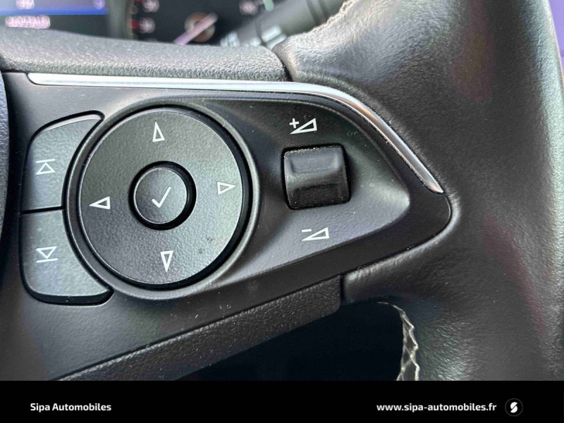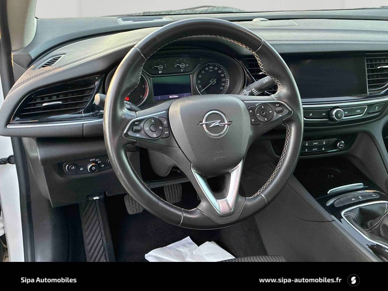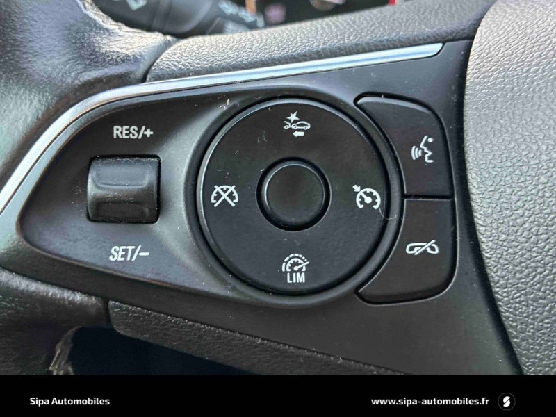 Affichage de la pression individuelle des pneumatiques. / Affichage tête haute et compteurs digitaux 8" / Alarme sonore d'oubli d'extinction des feux / Caméra frontale Opel Eye avec avertisseur de distance, alerte anti collision, avertissement de changement de voies intempestifs et détection piétons / Climatisation automatique bi-zone avec système de recirculation d'air et filtre anti-pollen / Contrôle de freinage en courbe CBC / Contrôle de traction électronique TCplus / Détecteur de présence sur siège passager AV régulant le déclenchement de l'airbag / Direction assistée asservie à la vitesse (EHPS) / Entourage de calandre chromé / Feux diurnes, clignotants AV et feux AR à LED / Frein à main électrique / Indicateur de maintenance / Jantes alliage 17" 10 branches, Pneus 215/55R17 SL 94V BW HW1 / Kit anti-crevaison / Ligne supérieure de vitrage chromée / OnStar avec point d'accès Wi-Fi 4G : votre assistant personnel pour la connectivité et les services / Pack Style Grand Sport / Pack Visibilité / Pare-soleils avec miroir de courtoisie àéclairage LED, conducteur et passager / Pédalier rétractable en cas de choc frontal (PRS) / Poignées de portes avec ligne chromée / Poignées de portes couleur carrosserie / Reconnaissance des panneaux routier via caméra Opel Eye / Réglage électrique de l'assiette des phares / Régulateur et limiteur de vitesse programmable / Rétroviseur intérieur électrochromatique / Seuils de portes chromés / Système antiblocage de roues (ABS électronique) et amplificateur de freinage / Système de navigation Europe IntelliLink Navi 900 (écran central couleur tablette 8", TMC InfoTrafic, USB et Aux-in, reconnaisance vocale, afficheur en couleurs de 4,2" entre les compteurs) / Troisième feu stop / Verrou électronique Opel (antidémarrage) / Verrouillage centralisé et ouverture des vitres à distance par télécommande / Vitres électriques AV/AR à impulsion avec dispositif anti-pincement