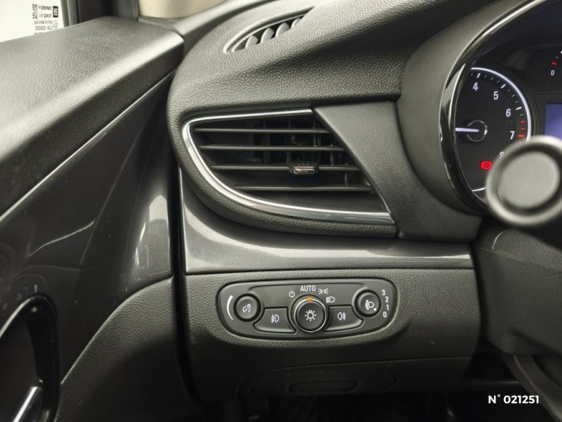 Ordinateur de bord au centre du bloc d'instrumentation muni d'un écran digital 4.2" couleur / Pack Visibilité / Pack Visibilité / Pare-soleil orientables avec miroirs de courtoisie / Pédalier rétractable en cas de choc frontal (PRS) / Plancher de coffre plat avec espace de rangement sous plancher / Poignées de maintien AV et AR / Poignées de portes chromées avec clef Opel mains libres / Poignées de portes couleur carrosserie / Possiblité de déconnecter l'airbag du siège passager AV / Prise 12V sur la console centrale AR / Rails de toit / Rails de toit noirs / Rappel de bouclage de ceinture AV et AR / Réglage électrique de l'assiette des phares / Régulateur et limiteur de vitesse programmable / Rétroviseur intérieur électrochromatique / Rétroviseurs extérieurs, asphérique côté conducteur, dégivrants, à réglage électrique / Rétroviseurs extérieurs couleur carrosserie / R4.0 IntelliLink Ecran couleur tactile 7''. Radio AM/FM. Prises USB et Aux-in, Interface iPod, Bluetooth, audio streaming, et commandes vocales (compatibles avec les commandes vocales du smartphone). Lecture des photos et videos. Apple CarPlay et Androïd Auto / R4.0 IntelliLink écran tactile 7" avec radio, USB, Apple CarPlay, Android Auto, Bluetooth, streaming audio et 4HP / Siège passager réglable dans 2 directions / Spots de lecture AV / Structure de sécurité passive avec cellule de survie pour les passagers en acier haute résistance et zone de déformation à absorbtion d'énergie / Système antiblocage des roues (ABS électronique) avec Répartition électronique du freinage (EBD) / Tiroir de rangement sous siège passager AV / Verrou électronique Opel (antidémarrage) / Verrouillage centralisé (portes, coffre et trappe à carburant) à télécommande / Volant multifonction 3 branches gainé de cuir avec inserts alu brossé, réglable en hauteur et profondeur / Clé pliante avec télécommande intégrée / Clignotants latéraux additionnels / Accoudoirs latéraux AV et AR / Compte-tours électronique / Compteur kilométrique et totalisateur journalier à affichage digital / Contrôle électronique de stabilité (ESC) intégrant le contrôle de traction (TC), le contrôle de freinage en courbe (CBC), le contrôle de couple en courbe (CTC), l'assistance au freinage d'urgence (BAS) et la compensation hydraulique de l'évanouissement des freins (HBFA) / Dossier banquette AR rabattable asymétriquement 2/3-1/3 / Eclairage du coffre / Ecran de l'instrumentation de bord 3.5" TFT monochrome à affichage blanc / Essuie-glace AR électrique intermittent / Jantes en alliage 18", Pneus 215/55 R18 95H / Jauge carburant avec témoin d'alerte / Kit anti-crevaison / Ligne de vitrage chromée / Lunette et vitres latérales AR surteintées / OnStar: Assistant de connectivité et de service personnel / OnStar avec point d'accès Wi-Fi 4G : votre assistant personnel pour la connectivité et les services / Assistant au feux de route / Bacs de rangement intégrés aux portes AV et AR / Cache-bagages rigide / Ceintures de sécurité 3 points à enrouleur AV et AR (réglables en hauteur à l'AV) / Ordinateur de bord au centre du bloc d'instrumentation muni d'un écran digital 3.5'' TFT monochrome blanc avec affichage digital de la vitesse, alarme de dépassement de la vitesse programmée, contrôle électronique de la pression des pneumatiques