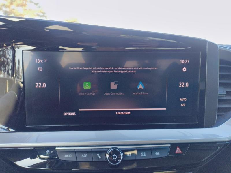 Noir Perla Nera métallisé / Système d'Infotainment OPEL PURE PANEL / 6 Haut parleurs / Bacs de portes avant / Compte tours / Détecteur de sous-gonflage / Eclairage d'ambiance / Filtre à Pollen / Lampes de lecture à l'avant / Levier vitesse cuir