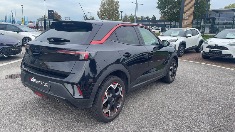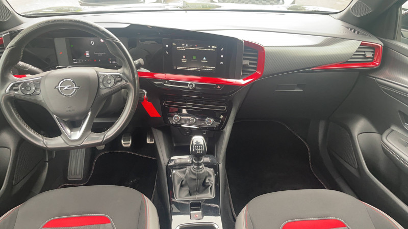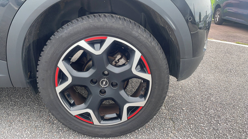 2ème clé avec télécommande / 3ème appui-tête AR / 6 HP / Accoudoir conducteur avec porte-gobelet / Aide actif au maintien dans la voie / Alerte anti-somnolence / Antenne courte / Calandre Opel Vizor / Caméra de recul panoramique 180° / Coque de rétroviseurs extérieurs noires / Ecran d'instrumentation couleur 7" / Ecran tactile 7" couleur avec Bluetooth, compatible Apple CarPlay/Android Auto / Jantes en alliage 18" 5 branches, Tri-color Noir/Argent/Rouge / Kit anti-crevaison / Ligne de contour de Vizor Noire / Ligne de vitrage rouge / Logos AV/AR Noirs / Pack Active Drive Assist + / Pack City 180° / Pack Visibilité / Pédalier chromé / Phares Eco LED / Plafonnier avec double spot de lecture / Poignées de portes intérieures chromées / Sécurité enfants aux portes AR / Siège passager AV réglable dans 6 directions / Spoiler AR Noir / Système anti-collision à tous niveaux de vitesse et detection des pietons et cyclistes / Système Isofix sur sièges latéraux 2ème rangée / Toit Noir / Volant 3 branches