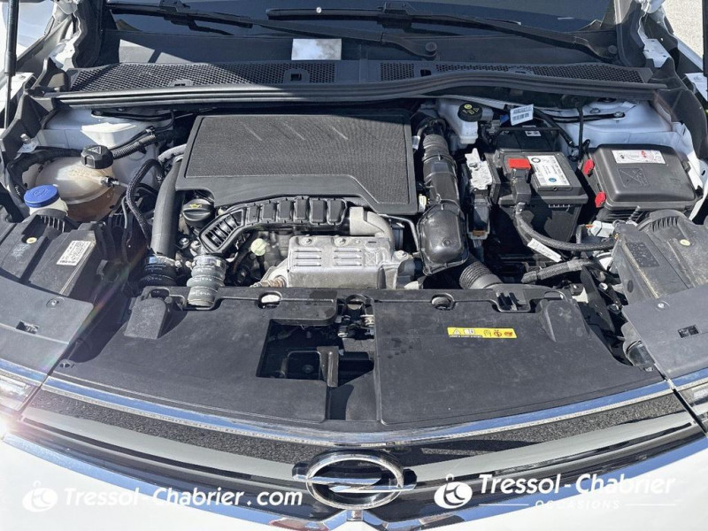 2ème clé rigide / 3ème appui-tête AR / 4 HP / Aide actif au maintien dans la voie / Alerte anti-somnolence / Antenne courte / Appuis-tête AV réglables / Calandre Opel Vizor / Coque de rétroviseurs extérieurs noires / Ecran d'instrumentation couleur 7p / Ecran tactile 7'' couleur avec Bluetooth / Ecran tactile 7p couleur avec Bluetooth / Frein à main électrique / Jantes en alliage 16p 5 double branches / Argent / Kit anti-crevaison / Ligne de contour de Vizor Chromée / Ligne de vitrage chromée / Omission du toit contrasté / Phares Eco LED / Plafonnier avec double spot de lecture / Poignées de portes intérieures chromées / Régulateur et limiteur de vitesse programmable / Sellerie Tissu «Sensation» / Siège conducteur réglable dans 6 directions / Siège passager réglable dans 4 directions / Spoiler AR Noir / Système Isofix aux places AR / Système Isofix sur sièges latéraux 2ème rangée / Sytème anti-collision à basse vitesse et détection des piétons / Sécurité enfants aux portes AR / Toit couleur carrosserie / Volant 3 branches