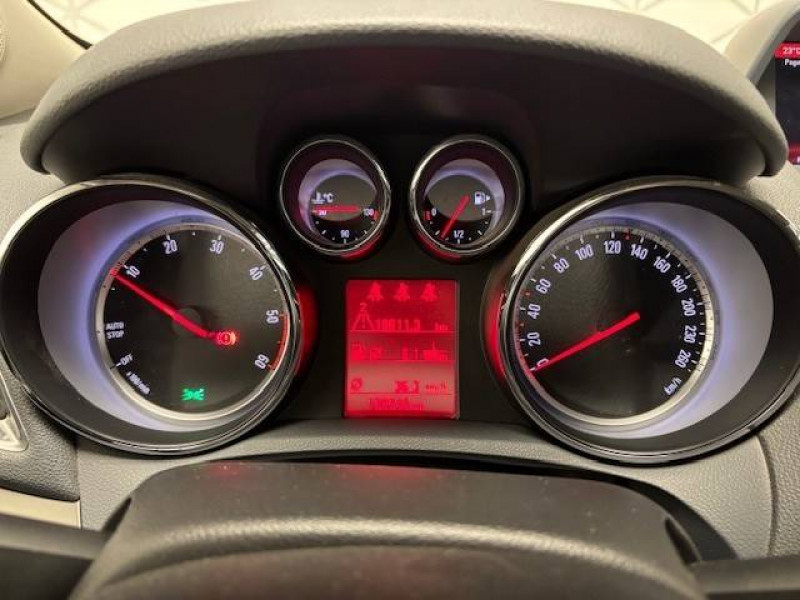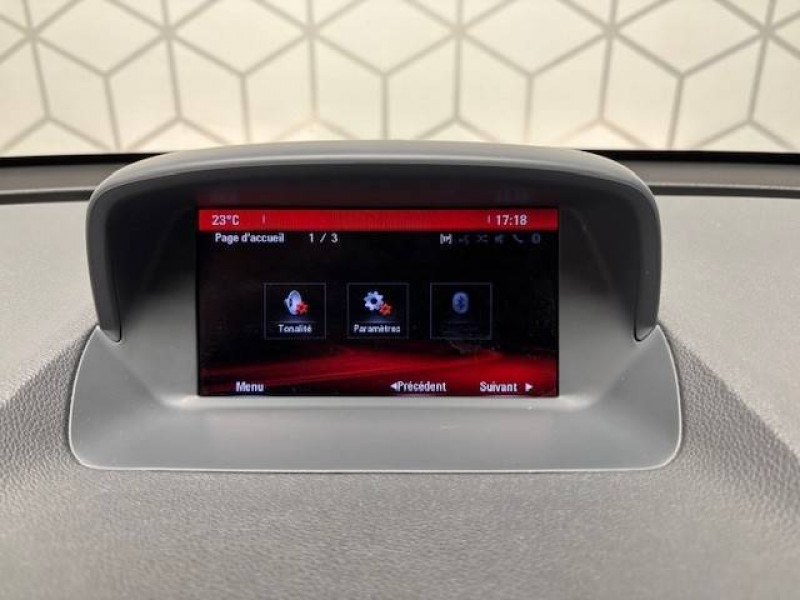 5 ceintures de sécurité 3 points à enrouleur AV et AR (réglables en hauteur à l'AV) / Accoudoir central AR incluant 2 porte-gobelets / Accoudoirs latéraux AV et AR / Assistant au feux de route avec 9 lois d'éclairage / Avertisseur double ton / Bacs de rangement intégrés aux portes AV et AR / Bluetooth pour téléphone portable / Boucliers couleur carrosserie / Cache-bagages rigide / Calandre chromée / Clef pliante avec télécommande intégrée / Clignotants latéraux additionnels / Climatisation automatique bi-zone avec filtre anti-pollen et détecteur de qualité d'air / Compte-tours électronique / Compteur kilométrique avec totaliseur journalier / Console centrale comprenant 2 porte-gobelets et espace de rangement avec couvercle / Contrôle électronique de stabilité (ESC) intégrant le contrôle de traction (TC), le contrôle de freinage en courbe (CBC), le contrôle de couple en courbe (CTC), l'assistance au freinage d'urgence (BAS) et la compensation hydraulique de l'évanouissement des freins (HBFA) / Dossier de banquette AR rabattable asymétriquement 2/3 - 1/3 / Eclairage du coffre / Essuie-glace AR électrique intermittent / Essuie-glaces AV électriques (3 vitesses dont 1 intermittente sauf si capteur de pluie) / Jauge à carburant avec alerte mini / Kit anti-crevaison / Ligne de vitrage intégralement chromée / Lumière d'ambiance / OnStar: Assistant de connectivité et de service personnel / Ordinateur de bord 6 fonctions (consommation moyenne, consommation instantanée, distance parcourue, autonomie, durée du trajet, vitesse moyenne) et interface de contrôle / Pack Visibilité / Pare-soleil orientables avec miroirs de courtoisie / Pédalier rétractable en cas de choc frontal (PRS) / Plancher plat avec espace de rangement sous plancher / Poignées de maintien pour les passagers AR / Poignées de maintien pour les passagers AV / Poignées de portes couleur carrosserie / Poignées de portes intérieures et bouton de frein à main chromés / Possiblité de déconnecter l'airbag du siège passager AV / Prise électrique 230V située sur la console centrale AR / Rails de toit / Rappel de bouclage de ceinture AV et AR / Réglage électrique de l'assiette des phares / Régulateur et limiteur de vitesse programmable / Rétroviseur intérieur électrochrome / Rétroviseurs extérieurs, asphérique côté conducteur, dégivrants, à réglage électrique / Rétroviseurs extérieurs couleur carrosserie / Siège conducteur ergonomique certifié AGR / Siège passager AV ergonomique certifié AGR / Sièges conducteur et passager AV réglables dans 6 directions dont réglage en hauteur, extension de l'assise réglable et réglage lombaire (réglage de la bascule et lombaire électrique) / Spots de lecture AV / Structure de sécurité passive avec cellule de survie pour les passagers en acier haute résistance et zone de déformation à absorbtion d'énergie / Système antiblocage des roues (ABS électronique) avec Répartition électronique du freinage (EBD) / Système de Navigation Navi 950 IntelliLink Europe avec reconnaissance vocale, écran couleur 7", TMC Info Trafic, points d'intérêt, prise auxiliaire et USB, streaming audio / Verrou électronique Opel (antidémarrage) / Verrouillage centralisé (portes, coffre et trappe à carburant) à télécommande / Volant chauffant / Volant multifonction 3 branches gainé de cuir avec inserts alu brossé, réglable en hauteur et profondeur