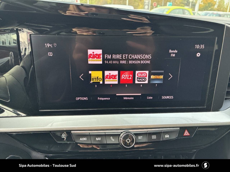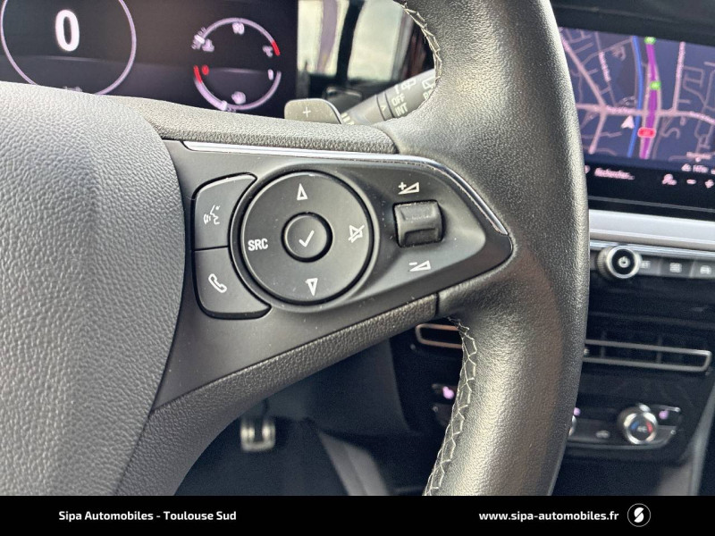 3ème appui-tête AR / 6 HP / Accoudoir conducteur avec porte-gobelet / Aide actif au maintien dans la voie / Alerte anti-somnolence / Barre de pare-choc AV chromée / Calandre Opel Vizor / Clé Opel mains libres : entrée et démarrage sans clé et seconde clé avec télécommande / Coque de rétroviseurs extérieurs noires / Jantes en alliage 18" 5 branches, Bi-ton Argent/Noir / Kit anti-crevaison / Ligne de contour de Vizor Chromée / Ligne de vitrage chromée / Lumières d'ambiance intérieures à LED / Module Opel Connect / Pack Active Drive Assist + / Pack Advanced City 180° / Pack Visibilité / Pack Vision Matrix / Pédalier chromé / Plafonnier avec double spot de lecture / Poignées de portes intérieures chromées / Provisions pour plancher de coffre amovible / Sécurité enfants aux portes AR / Siège conducteur réglable dans 6 directions avec réglage lombaire / Siège passager AV réglable dans 6 directions / Sièges AV chauffants (Conducteur & passager) / Spoiler AR Noir / Système anti-collision à tous niveaux de vitesse et detection des pietons et cyclistes / Système d'Infotainment et Navigation Connectée OPEL PURE PANEL / Système Isofix aux places AR / Toit Noir Perla Nera / Vitres latérales et lunette AR surteintées / Volant 3 branches