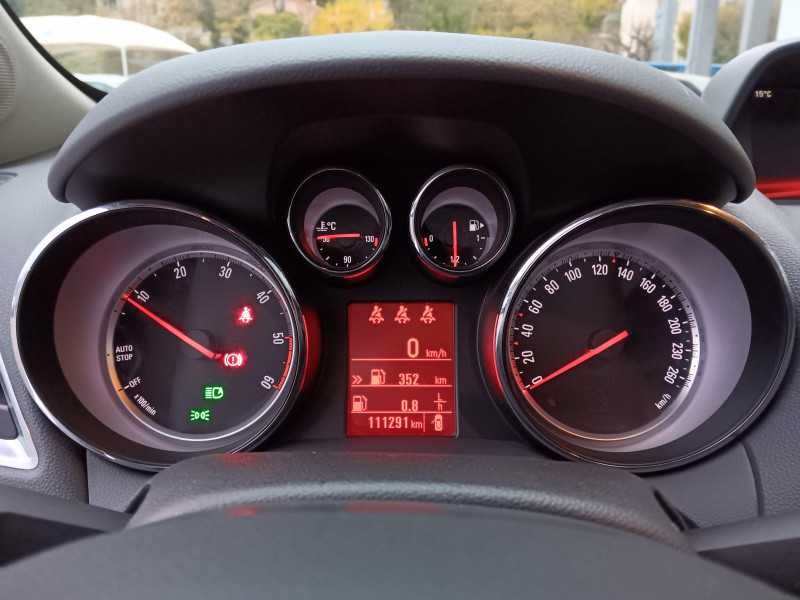 Climatisation automatique bi-zone avec filtre anti-pollen et détecteur de qualité d'air / Volant multifonction 3 branches gainé de cuir avec inserts alu brossé, réglable en hauteur et profondeur / 5 ceintures de sécurité 3 points à enrouleur AV et AR (réglables en hauteur à l'AV) / Accoudoir central AR incluant 2 porte-gobelets / Accoudoirs latéraux AV et AR / Assistant au feux de route avec 9 lois d'éclairage / Avertisseur double ton / Bacs de rangement intégrés aux portes AV et AR / Bluetooth pour téléphone portable / Boucliers couleur carrosserie / Cache-bagages rigide / Calandre chromée / Clef pliante avec télécommande intégrée / Clignotants latéraux additionnels / Compte-tours électronique / Compteur kilométrique avec totaliseur journalier / Console centrale comprenant 2 porte-gobelets et espace de rangement avec couvercle / Contrôle électronique de stabilité (ESC) intégrant le contrôle de traction (TC), le contrôle de freinage en courbe (CBC), le contrôle de couple en courbe (CTC), l'assistance au freinage d'urgence (BAS) et la compensation hydraulique de l'évanouissement des freins (HBFA) / Dossier de banquette AR rabattable asymétriquement 2/3 - 1/3 / Eclairage du coffre / Essuie-glace AR électrique intermittent / Essuie-glaces AV électriques (3 vitesses dont 1 intermittente sauf si capteur de pluie) / Jauge à carburant avec alerte mini / Kit anti-crevaison / Ligne de vitrage intégralement chromée / Lumière d'ambiance / OnStar: Assistant de connectivité et de service personnel / Ordinateur de bord 6 fonctions (consommation moyenne, consommation instantanée, distance parcourue, autonomie, durée du trajet, vitesse moyenne) et interface de contrôle / Pare-soleil orientables avec miroirs de courtoisie / Plancher plat avec espace de rangement sous plancher / Poignées de maintien pour les passagers AR / Poignées de maintien pour les passagers AV / Poignées de portes couleur carrosserie / Poignées de portes intérieures et bouton de frein à main chromés / Possiblité de déconnecter l'airbag du siège passager AV / Prise électrique 230V située sur la console centrale AR / Pédalier rétractable en cas de choc frontal (PRS) / Radio CD 450 MP3 - CD - RDS - AM/FM - 4x20W - 6x6 pré-sélections - 6HP - écran de contrôle 155x60 mm - égaliseur graphique-commandes au volant, prise USB et Aux-in / Rails de toit / Rappel de bouclage de ceinture AV et AR / Réglage électrique de l'assiette des phares / Régulateur et limiteur de vitesse programmable / Rétroviseur intérieur électrochrome / Rétroviseurs extérieurs couleur carrosserie / Rétroviseurs extérieurs, asphérique côté conducteur, dégivrants, à réglage électrique / Siège passager réglable dans 2 directions / Spots de lecture AV / Structure de sécurité passive avec cellule de survie pour les passagers en acier haute résistance et zone de déformation à absorbtion d'énergie / Système antiblocage des roues (ABS électronique) avec Répartition électronique du freinage (EBD) / Tiroir de rangement sous siège passager AV / Verrou électronique Opel (antidémarrage) / Verrouillage centralisé (portes, coffre et trappe à carburant) à télécommande