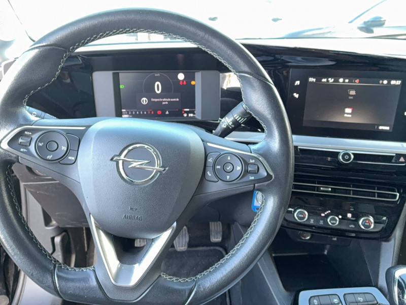1 port USB à l'AV et 2 à l'AR / 6 HP / Accoudoir conducteur avec porte-gobelet / Aide active au maintien et positionnement dans la voie / Alerte anti-somnolence / Assistant au feux de route / Calandre Opel Vizor avec contour chromé / Caméra de recul panoramique 180° / Coque de rétroviseurs extérieurs noires / Coquilles de rétroviseurs peintes en noir / Ecran d'instrumentation couleur 7" / Ecran tactile 7'' couleur avec Bluetooth / Frein à main électrique / Jantes en alliage 17" 5 double branches, Bi-ton Argent/Noir / Kit anti-crevaison / Ligne de vitrage chromée / Pack Visibilité / Phares Eco LED / Poignées de portes intérieures chromées / Régulateur et limiteur de vitesse programmable / Seconde clé avec télécommande / Siège passager réglable dans 6 directions / Spoiler AR Noir / Système Isofix aux places AR / Sytème anti-collision à basse vitesse et détection des piétons / Toit couleur carrosserie / Volant cuir multifonctions 3 branches à méplat