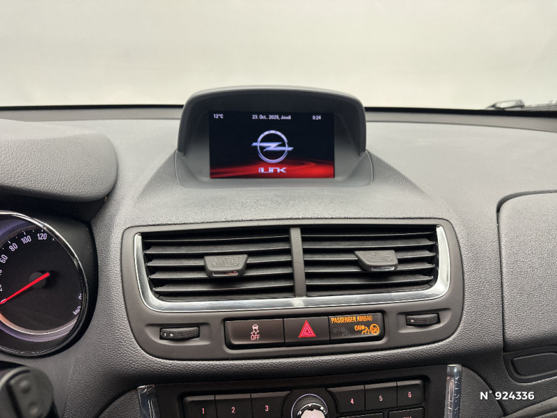 Système antiblocage des roues (ABS électronique) avec Répartition électronique du freinage (EBD) / Calandre chromée / Clef pliante avec télécommande intégrée / Tiroir de rangement sous siège passager AV / Spots de lecture AV / Jauge à carburant avec alerte mini / Essuie-glaces AV électriques (3 vitesses dont 1 intermittente sauf si capteur de pluie) / 6 airbags Opel frontaux conducteur et passager, latéraux et rideaux / Kit anti-crevaison / Rappel de bouclage de ceinture AV et AR / Verrouillage centralisé (portes, coffre et trappe à carburant) à télécommande / Dossier de banquette AR rabattable asymétriquement 2/3 - 1/3 / Ordinateur de bord 6 fonctions (consommation moyenne, consommation instantanée, distance parcourue, autonomie, durée du trajet, vitesse moyenne) et interface de contrôle / Rétroviseurs extérieurs couleur carrosserie / Pare-soleil orientables avec miroirs de courtoisie / Verrou électronique Opel (antidémarrage) / Plancher plat avec espace de rangement sous plancher / Poignées de maintien pour les passagers AV / Compte-tours électronique / Lumière d'ambiance / Rétroviseur intérieur électrochrome / 5 ceintures de sécurité 3 points à enrouleur AV et AR (réglables en hauteur à l'AV) / Possiblité de déconnecter l'airbag du siège passager AV / Rétroviseurs extérieurs, asphérique côté conducteur, dégivrants, à réglage électrique / Essuie-glace AR électrique intermittent / Eclairage du coffre / Pédalier rétractable en cas de choc frontal (PRS) / Climatisation automatique bi-zone avec filtre anti-pollen et détecteur de qualité d'air / Avertisseur double ton / Cache-bagages rigide / Accoudoirs latéraux AV et AR / Bacs de rangement intégrés aux portes AV et AR / Pack Visibilité / Clignotants latéraux additionnels / Compteur kilométrique avec totaliseur journalier / Volant multifonction 3 branches gainé de cuir avec inserts alu brossé, réglable en hauteur et profondeur / Radio CD 450 MP3 - CD - RDS - AM/FM - 4x20W - 6x6 pré-sélections - 6HP - écran de contrôle 155x60 mm - égaliseur graphique-commandes au volant, prise USB et Aux-in / Bluetooth pour téléphone portable / Assistant au feux de route avec 9 lois d'éclairage / Console centrale comprenant 2 porte-gobelets et espace de rangement avec couvercle / Accoudoir central AR incluant 2 porte-gobelets / Siège passager réglable dans 2 directions / Ligne de vitrage intégralement chromée / Structure de sécurité passive avec cellule de survie pour les passagers en acier haute résistance et zone de déformation à absorbtion d'énergie / Contrôle électronique de stabilité (ESC) intégrant le contrôle de traction (TC), le contrôle de freinage en courbe (CBC), le contrôle de couple en courbe (CTC), l'assistance au freinage d'urgence (BAS) et la compensation hydraulique de l'évanouissement des freins (HBFA) / Poignées de portes intérieures et bouton de frein à main chromés / Poignées de maintien pour les passagers AR / Rails de toit / Réglage électrique de l'assiette des phares / Poignées de portes couleur carrosserie / Prise électrique 230V située sur la console centrale AR / Boucliers couleur carrosserie