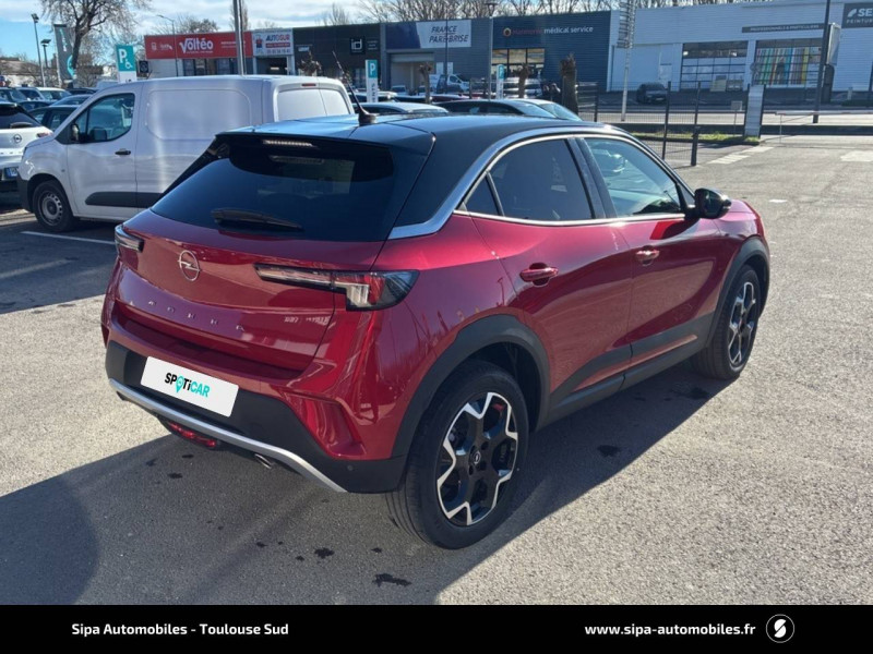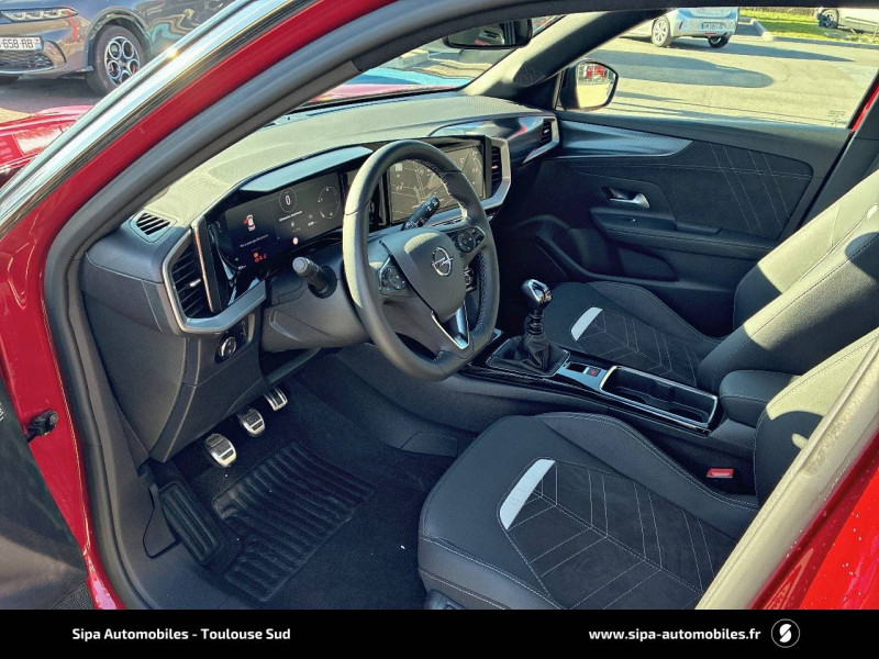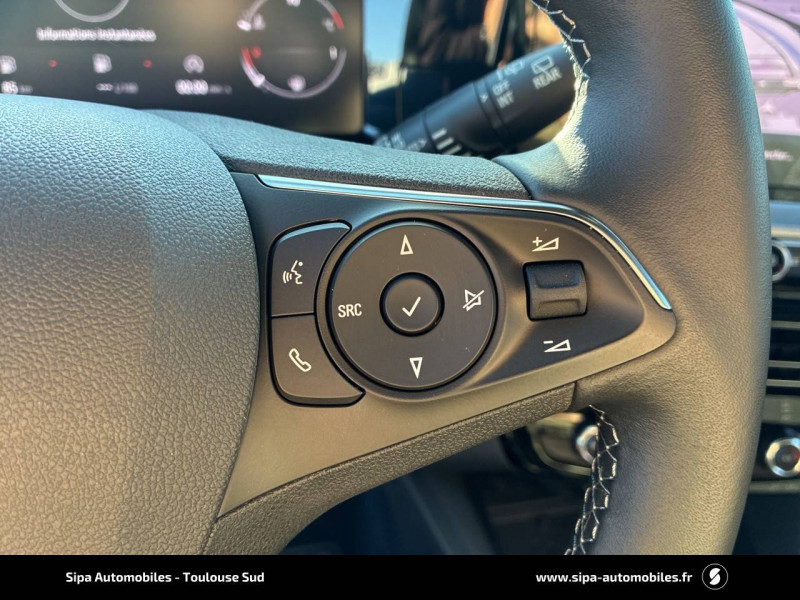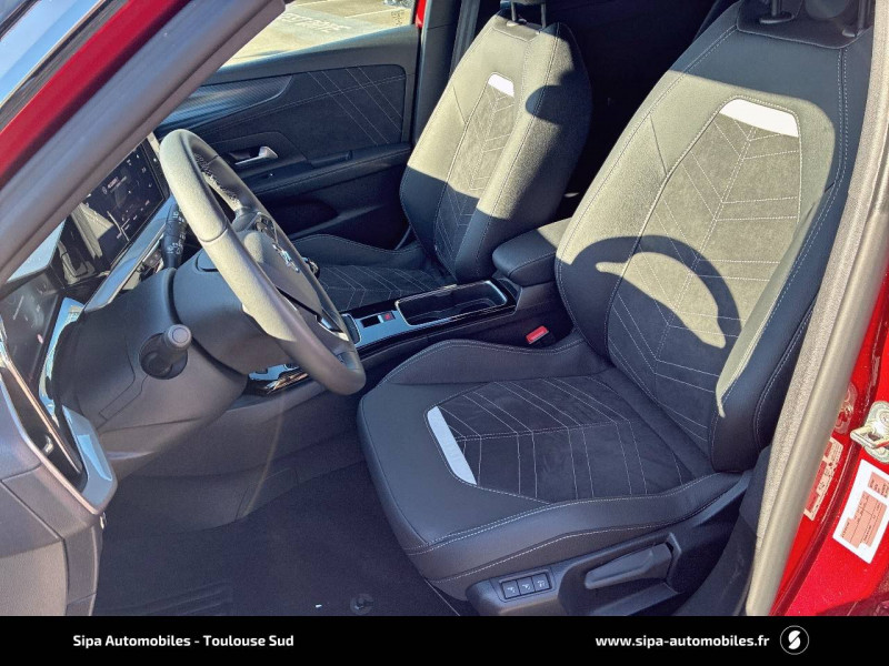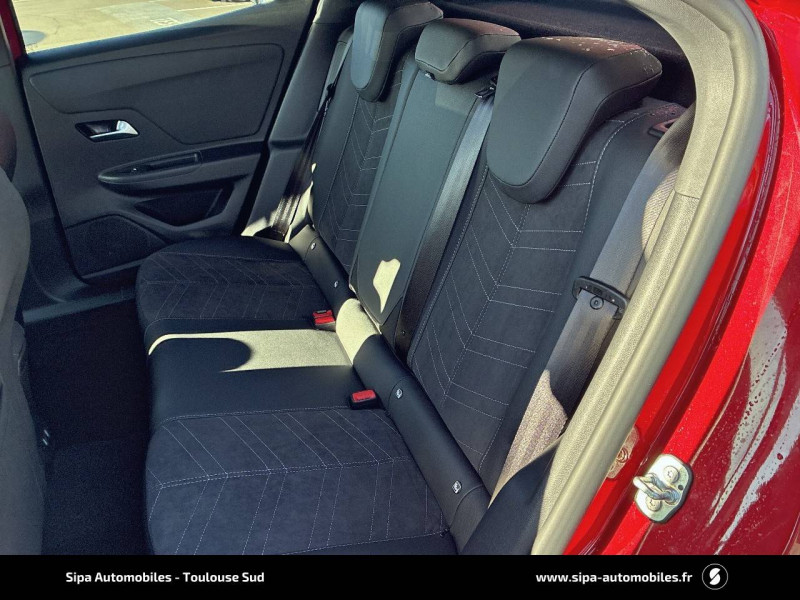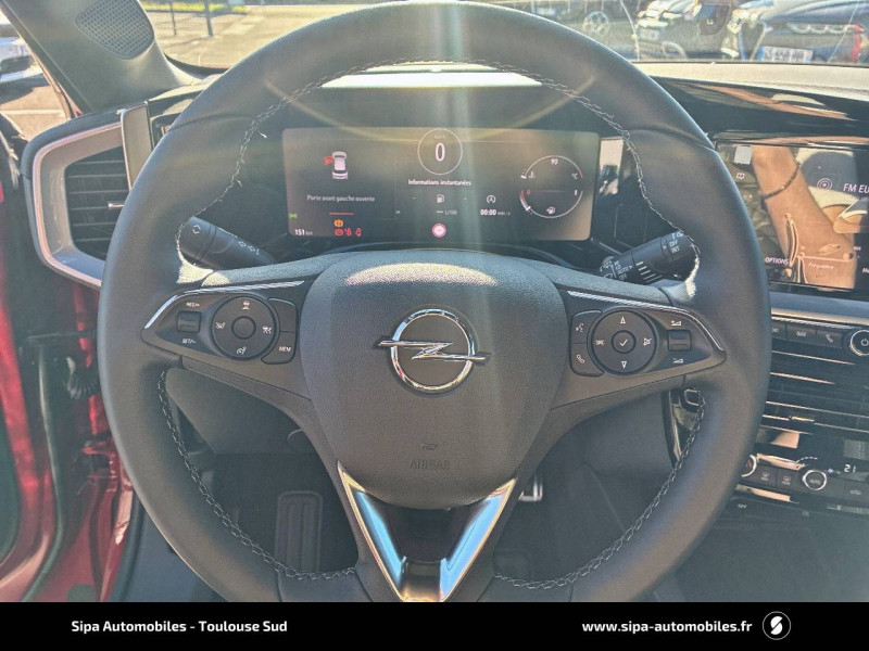 2ème clé avec télécommande / 3ème appui-tête AR / Accoudoir conducteur avec porte-gobelet / Aide actif au maintien dans la voie / Alerte anti-somnolence / Antenne courte / Calandre Opel Vizor / Caméra de recul panoramique 180° / Clef Opel mains libres / Coque de rétroviseurs extérieurs noires / Jantes en alliage 18" 5 branches, Bi-color Argent/Noir / Kit anti-crevaison / Ligne de contour de Vizor Chromée / Ligne de vitrage chromée / Lumière d'ambiance LED / Module Opel Connect / Opel PURE PANEL-Ecran digital 10" compatible avec Apple CarPlay/Android Auto+navigation TomTom Live+ 6HP+DAB+, prise USB (type-A)+le module Opel Connect+l'écran d'instrumentation digital de 12" / Pack Active Drive Assist + / Pack Advanced City 180° / Pack Visibilité / Pack Vision Matrix / Pédalier chromé / Plafonnier avec double spot de lecture / Poignées de portes intérieures chromées / Sécurité enfants aux portes AR / Siège conducteur réglable dans 6 directions avec réglage lombaire / Siège passager AV réglable dans 6 directions / Sièges AV chauffants (Conducteur & passager) / Spoiler AR Noir Karbon / Système anti-collision à tous niveaux de vitesse et detection des pietons et cyclistes / Système Isofix sur sièges latéraux 2ème rangée / Toit Noir / Volant 3 branches / Volant chauffant
