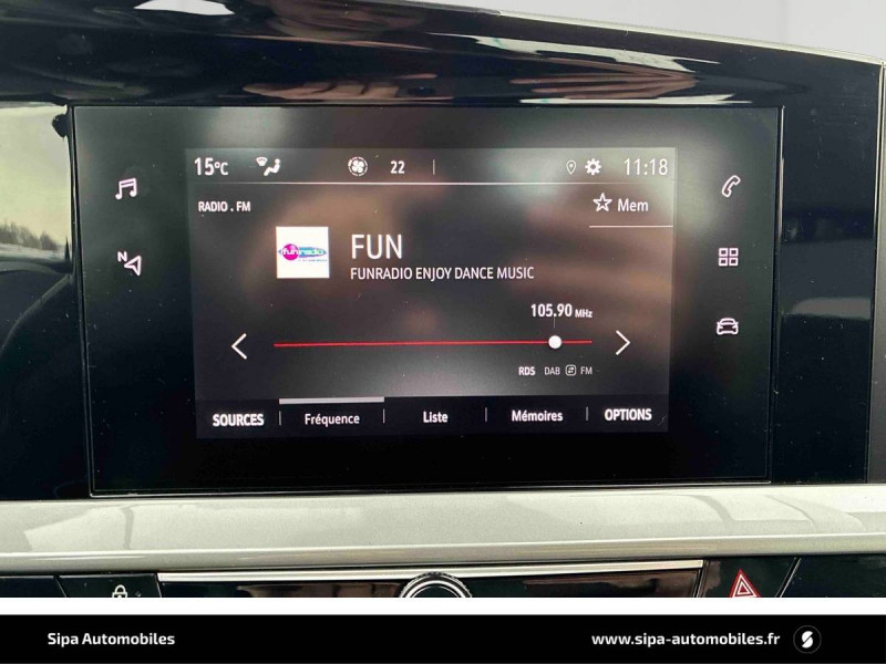 1 port USB à l'AV et 2 à l'AR / 6 HP / Accoudoir conducteur avec porte-gobelet / Aide active au maintien et positionnement dans la voie / Alerte anti-somnolence / Assistant au feux de route / Calandre Opel Vizor avec contour chromé / Caméra de recul panoramique 180° / Coquilles de rétroviseurs peintes en noir / Ecran d'instrumentation couleur 7" / Ecran tactile 7'' couleur avec Bluetooth / Frein à main électrique / Jantes en alliage 17" 5 double branches, Bi-ton Argent/Noir / Kit anti-crevaison / Ligne de vitrage chromée / Pack Visibilité / Phares Eco LED / Poignées de portes intérieures chromées / Régulateur et limiteur de vitesse programmable / Seconde clé avec télécommande / Siège passager réglable dans 6 directions / Spoiler AR Noir Karbon / Système Isofix aux places AR / Sytème anti-collision à basse vitesse et détection des piétons / Toit couleur carrosserie / Volant cuir multifonctions 3 branches à méplat