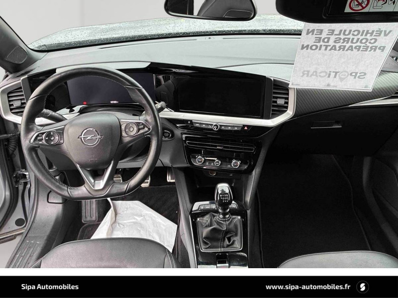 2ème clé avec télécommande / 3ème appui-tête AR / Accoudoir conducteur avec porte-gobelet / Aide actif au maintien dans la voie / Alerte anti-somnolence / Antenne courte / Calandre Opel Vizor / Caméra de recul panoramique 180° / Clef Opel mains libres / Coque de rétroviseurs extérieurs noires / Jantes en alliage 18" 5 branches, Bi-color Argent/Noir / Kit anti-crevaison / Ligne de contour de Vizor Chromée / Ligne de vitrage chromée / Lumière d'ambiance LED / Module Opel Connect / Opel PURE PANEL-Ecran digital 10" compatible avec Apple CarPlay/Android Auto+navigation TomTom Live+ 6HP+DAB+, prise USB (type-A)+le module Opel Connect+l'écran d'instrumentation digital de 12" / Pack Active Drive Assist + / Pack Advanced City 180° / Pack Visibilité / Pack Vision Matrix / Pédalier chromé / Plafonnier avec double spot de lecture / Poignées de portes intérieures chromées / Sécurité enfants aux portes AR / Siège conducteur réglable dans 6 directions avec réglage lombaire / Siège passager AV réglable dans 6 directions / Sièges AV chauffants (Conducteur & passager) / Spoiler AR Noir Karbon / Système anti-collision à tous niveaux de vitesse et detection des pietons et cyclistes / Système Isofix sur sièges latéraux 2ème rangée / Toit Noir / Volant 3 branches / Volant chauffant