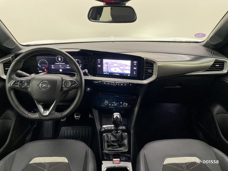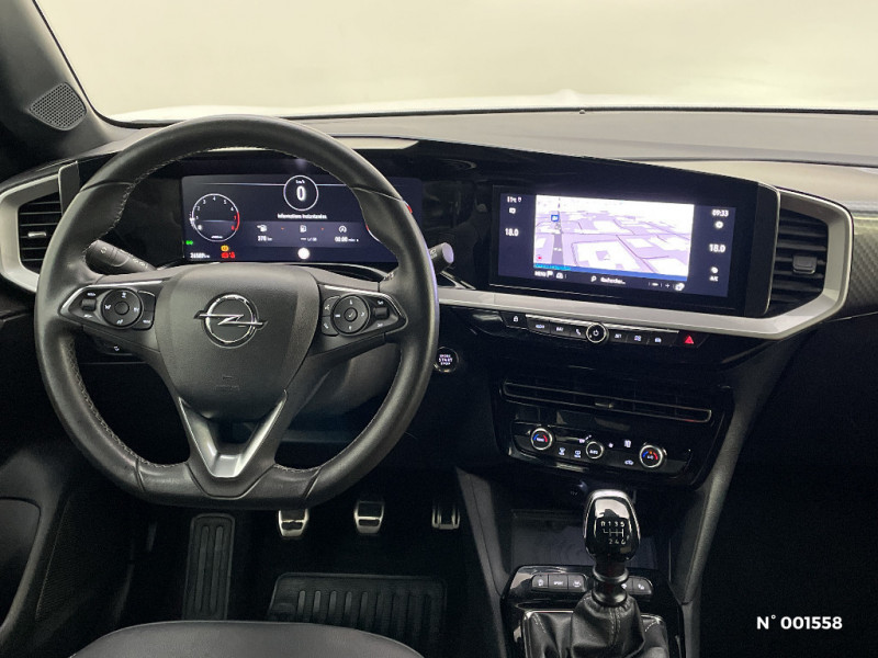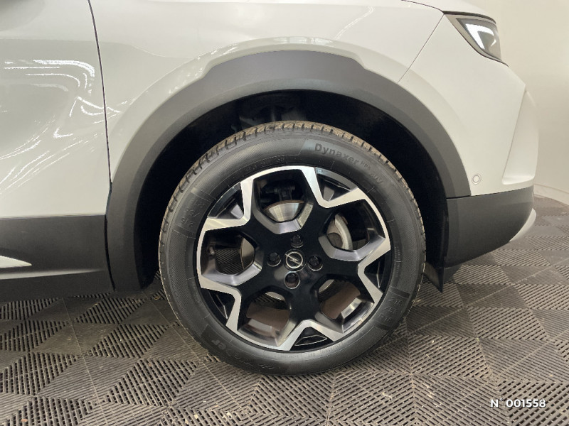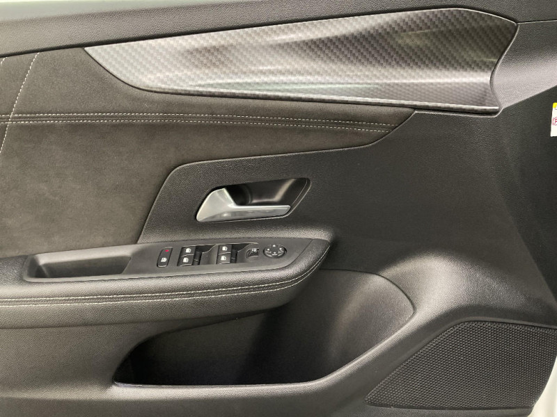 Pédalier chromé / Accoudoir conducteur avec porte-gobelet / Phares AR à LED / Seconde clé avec télécommande / Module Opel Connect / Kit anti-crevaison / Coquilles de rétroviseurs peintes en noir / Système Isofix sièges latéraux AR / Volant cuir multifonctions 3 branches à méplat / Système anti-collision à basse vitesse et détection des piétons / Peinture bi-ton avec Toit Noir Karbon / 1 port USB à l'AV et 2 à l'AR / Aide active au maintien et positionnement dans la voie / Siège conducteur réglable dans 6 directions avec réglage lombaire réglable électriquement et fonction massante / Calandre Opel Vizor avec contour noir / Siège passager réglables dans 6 directions / Radio FM/AM/DAB+ / Lettrage et logo - Noir / Combiné d'instrumentation numérique 12" / Becquet de toit AR noir / Grille inférieure - Noir grainé / Lame inférieur - Chromé / Décors intérieur Erino & Liquid Palladium / Réglage manuel des feux / Aide active au maintien au centre de la voie / Pack Visibilité LED / Jantes en alliage 18" - Diamanté / Aide active au maintien dans la voie / Lame inférieure - Peinte / Lame inférieure - Noir / Siège conducteur avec soutien lombaire réglable électriquement et fonction massante / Volant en TEP Végan / Rétroviseur intérieur électrochromatique / Ligne de vitrage chromée / Ciel de pavillon noir / Verrouillage des ouvrants en roulant / Détection de non-bouclage des ceintures de sécurité aux places AV / Verrouillage centralisé avec télécommande et en roulant / 1 cléà télécommande et seconde clé rigide / Verrouillage automatique de la trappe à essence lors de la fermeture du véhicule / Fonction Bluetooth (appels et streaming audio) / Signature lumineuse en forme d'aile à LED / Vitres AV et AR électriques - système anti-pincement / Lettrage et logo - Argent / Phares AV Eco Full LED / Alerte de sous-gonflage des pneumatiques / 6 HP / Poignées de portes intérieures chromées / Caméra de recul panoramique 180° / Alerte anti-somnolence / Système de freinage avec antiblocage des roues (ABS)