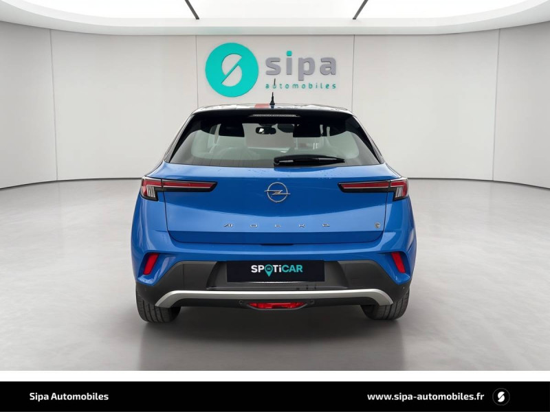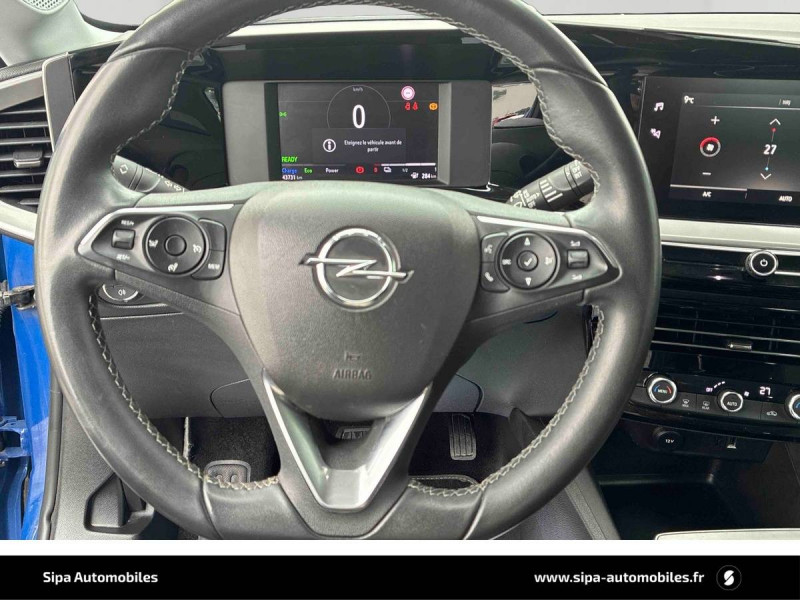 1 port USB à l'AV et 2 à l'AR / 6 HP / Accoudoir conducteur avec porte-gobelet / Aide actif au maintien dans la voie / Alerte anti-somnolence / Assistant au feux de route / Câble de recharge Mode 2 - 3,7 KW Green Up / Calandre Opel Vizor / Caméra de recul panoramique 180° / Chargeur embarqué monophasé 7,4 KW / Coque de rétroviseurs extérieurs noires / Ecran d'instrumentation couleur 7" / Ecran tactile 7'' couleur avec Bluetooth / Frein à main électrique / Jantes en alliage 17" 5 double branches, Bi-ton Argent/Noir / Kit anti-crevaison / Ligne de contour de Vizor Chromée / Ligne de vitrage chromée / Lumières d'ambiance intérieures à LED / Module Opel Connect / Pack Visibilité / Phares Eco LED / Poignées de portes intérieures chromées / Régulateur et limiteur de vitesse programmable / Seconde clé avec télécommande / Siège passager AV réglable dans 6 directions / Spoiler AR Noir Karbon / Système Isofix aux places AR / Sytème anti-collision à basse vitesse et détection des piétons / Toit couleur carrosserie / Volant 3 branches