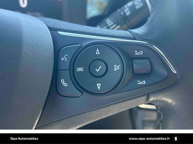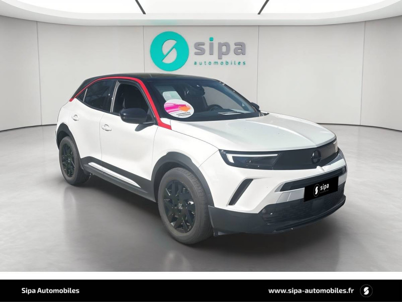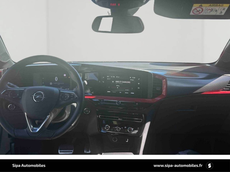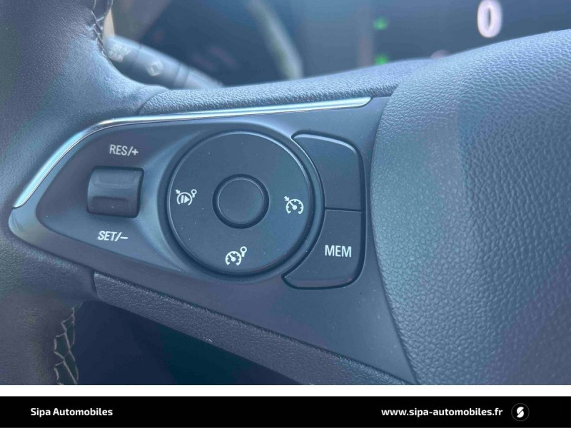 3ème appui-tête AR / 6 HP / Accoudoir conducteur avec porte-gobelet / Aide actif au maintien dans la voie / Alerte anti-somnolence / Barre de pare-choc AV chromée / Câble de recharge Mode 2 - 3,7 KW Green Up / Calandre Opel Vizor / Caméra de recul panoramique 180° / Chargeur embarqué monophasé 7,4 KW / Coque de rétroviseurs extérieurs noires / Deux clés pliables avec télécommande / Ecran d'instrumentation couleur 7" / Ecran tactile 7" couleur avec Bluetooth, compatible Apple CarPlay/Android Auto / Frein à main électrique / Jantes en alliage 17" 5 double branches, Bi-ton Argent/Noir / Kit anti-crevaison / Ligne de contour de Vizor Chromée / Ligne de vitrage chromée / Lumières d'ambiance intérieures à LED / Module Opel Connect / Omission du toit contrasté / Pack City 180° / Pack Visibilité / Phares Eco LED / Plafonnier avec double spot de lecture / Plancher de coffre amovible / Poignées de portes intérieures chromées / Régulateur et limiteur de vitesse programmable / Seconde clé avec télécommande / Sécurité enfants aux portes AR / Sellerie Mixte "Revolution" / Siège passager AV réglable dans 6 directions / Spoiler AR Noir Karbon / Système Isofix aux places AR / Sytème anti-collision à basse vitesse et détection des piétons / Toit couleur carrosserie / Volant 3 branches