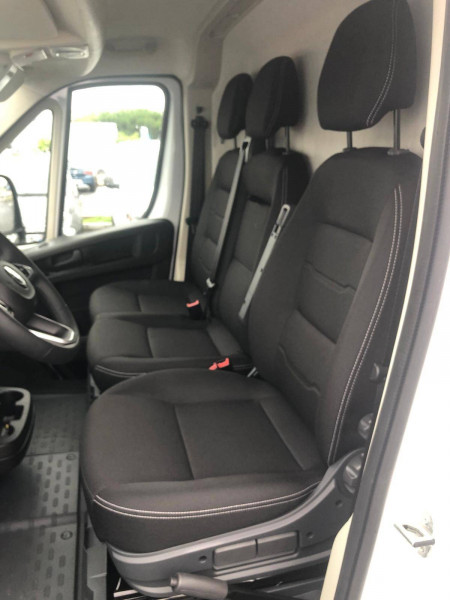 ABS, AFU, ASR et ESP (ESC amélioré avec assistance en cas de vent latéral, contrôle de stabilité de la remorque, et freinage après collision) / Aide au stationnement AR avec avertisseur sonore pour piétons / Alternateur standard (180 A) / Avertisseur sonore de marche AR / Batterie standard (95 Ah) / Boitier Télématique Autonome (BTA) / Capteurs de pression des pneumatiques (TPMS indirect) / Cloison tôlée / Crochets d'arrimage latéraux dans l'espace de chargement / Kit de gonflage pneumatiques Fix&Go / Kit de réduction de CO2 Spoiler central (DAM), Guide d'air. Grille avec volets pilotés (AGS) / Lève-vitres AV électriques (séquentiel côté conducteur à la descente et à la montée avec fonction anti-pincement, séquentiel à la descente côté passager) / Pack Sécurité (ADAS) Freinage d'urgence autonome avec détection piéton / cycliste, Aide au maintien dans la voie, Reconnaissance des panneaux de signalisation, Détecteur de fatigue ou d'inattention (attention assist), Adaptation intelligente de la vitesse / Pare-chocs AV grainé / Porte AR à 2 battants tôlés / Porte-gobelet au milieu du tableau de bord / Projecteurs halogène avec feux de circulation diurne / Rappel de bouclage de ceinture sécurité / Réservoir d'ADBlue 19 litres / Réservoir de carburant 90 litres / Roues en acier 15'' / Sellerie en tissu crêpe noir + appuie-tête plein / Siège conducteur avec réglage en hauteur, réglagle lombaire et accoudoir / Système audio 5'' avec radio numérique DAB + Bluetooth + 1 port USB