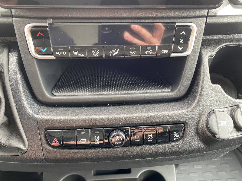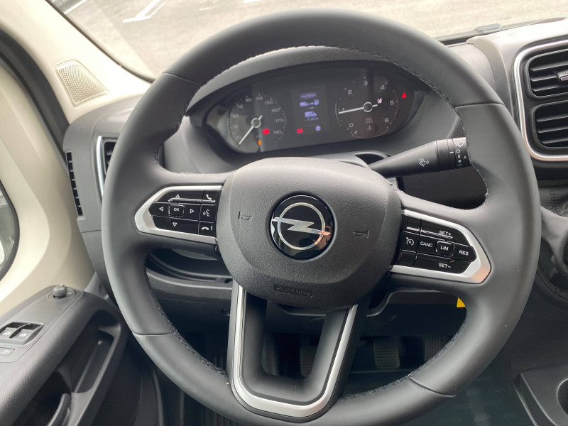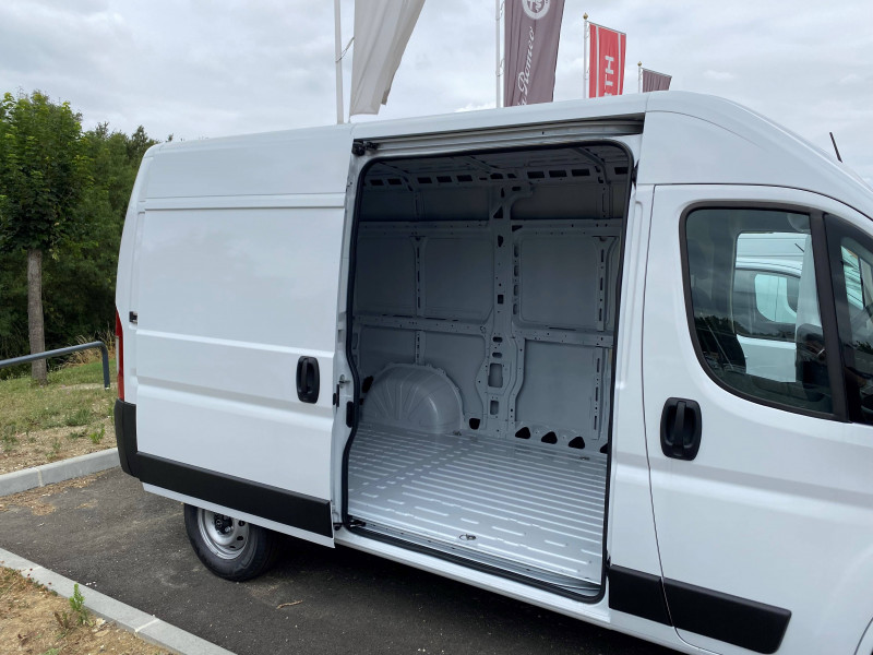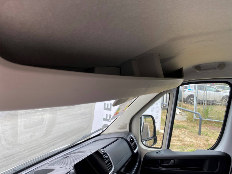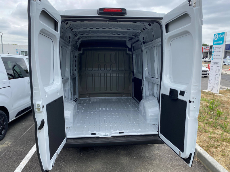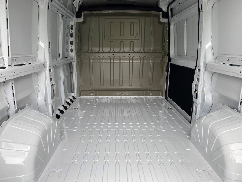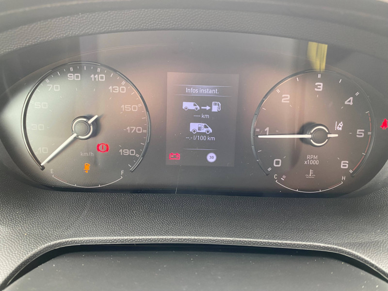 ABS, AFU, ASR et ESP (ESC amélioré avec assistance en cas de vent latéral, contrôle de stabilité de la remorque, et freinage après collision) / Aide au stationnement AR avec avertisseur sonore pour piétons / Alternateur standard (180 A) / Avertisseur sonore de marche AR / Batterie standard (95 Ah) / Boîte manuellle à 6 vitesses / Boitier Télématique Autonome (BTA) / Capteurs de pression des pneumatiques (TPMS indirect) / Cloison tôlée / Crochets d'arrimage latéraux dans l'espace de chargement / Kit de gonflage pneumatiques Fix&Go / Kit de réduction de CO2 Spoiler central (DAM), Guide d'air. Grille avec volets pilotés (AGS) / Lève-vitres AV électriques (séquentiel côté conducteur à la descente et à la montée avec fonction anti-pincement, séquentiel à la descente côté passager) / Pack Sécurité (ADAS) Freinage d'urgence autonome avec détection piéton / cycliste, Aide au maintien dans la voie, Reconnaissance des panneaux de signalisation, Détecteur de fatigue ou d'inattention (attention assist), Adaptation intelligente de la vitesse / Pare-chocs AV grainé / Porte AR à 2 battants tôlés / Porte-gobelet au milieu du tableau de bord / Projecteurs halogène avec feux de circulation diurne / Rappel de bouclage de ceinture sécurité / Réservoir d'ADBlue 19 litres / Réservoir de carburant 90 litres / Roues en acier 15'' / Sellerie en tissu crêpe noir + appuie-tête plein / Siège conducteur avec réglage en hauteur, réglagle lombaire et accoudoir / Système audio 5'' avec radio numérique DAB + Bluetooth + 1 port USB