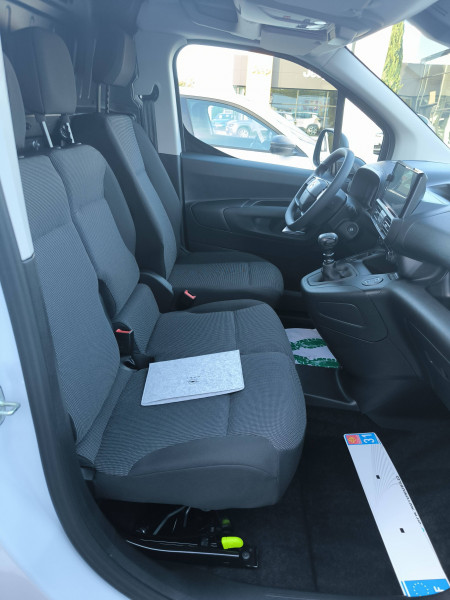 6 anneaux d'arrimage répartis uniformément sur la zone de chargement / Allumage automatique des feux de croisement et essuie-vitre AV / Banquette passager 2 places avec appuis-têtes réglables en hauteur avec rangement sous assise / Boîte manuellle à 6 vitesses / Boitier télématique (appel d'urgence et d'assistance géolocalisés + offres de services connectés) (SOS & Assistance: Appel d'urgence automatique ou manuel par push SOS, et mise en relation directe avec la plateforme d'assistance OPEL (24h/24-7j/7). / Boucliers, Poignées de portes extérieures, Enjoliveur(s) de rail de porte latérale coulissante, Baguettes latérales et Coques de rétroviseurs extérieurs noirs teintés masse / Climatisation manuelle régulée en température / Cloison complète tôlée / Combiné numérique LCD noir et blanc / Commandes au volant du système audio et du régulateur-limiteur de vitesse / Détection de sous-gonflage indirecte / Jantes tôle 16'' grises avec cabochon noir / Jeu de clefs : 2 plips HF 3 boutons avec fonction selectivité / Kit de dépannage provisoire de pneumatiques (Compresseur 12 V + Cartouche de produit de colmatage) / Pack Sécurité Freinage automatique d'urgence avec alerte risque de collision, Assistance au maintien dans la voie, Commutation automatique des feux de route, Détection inattention conducteur et Reconnaissance des panneaux de vitesse et recommandation / Panneaux latéraux intérieurs rangs 2 et 3 de type Isorel / Pare-brise feuilleté acoustique / Portes AR battantes 50/50 tôlées avec ouverture à 180° / Prise 12V (120 W max) dans la boîte à gants / Projecteurs halogène H15 avec feux diurnes intégrés / Radio DAB Bluetooth avec écran tactile 5'' monochrome + 4 HP (2 tweeters + 2 woofers) + 1 prise USB-A / Revêtement de sol en TPO dans l'habitacle / Sellerie Tissu bi-ton noir/gris / Service connecté ''Pack Connect One'' (inclus pendant 10 ans) / Service connecté ''Pack Connect Plus'' (inclus pendant 6 mois) / Services connectés "Preventive Maintenance" (4 ans): Tableau de bord de la flotte, Alertes sur l'état du véhicule, Suivi de la maintenance (& calendrier, Envoi de rapports périodiques / Siège conducteur individuel avec appui-tête réglable en hauteur et avec accoudoir Réglage : longueur, inclinaison, réhausse et lombaire