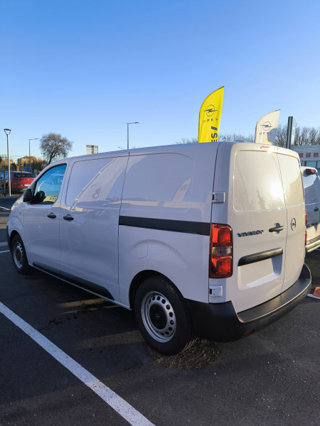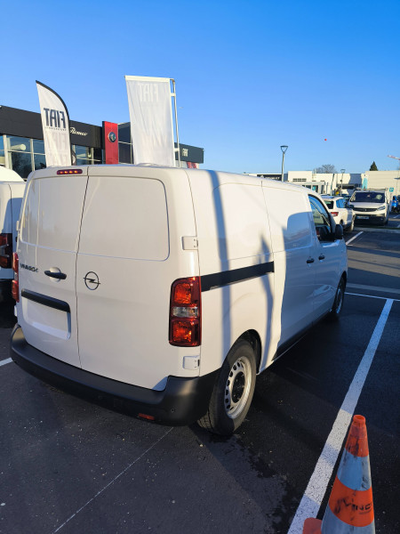 6 anneaux d'arrimage répartis uniformément sur la zone de chargement / Allumage automatique des feux de croisement et essuie-vitre AV / "ATTENTION" - Equipements en cours de saisie / Banquette passager 2 places avec appuis-têtes réglables en hauteur avec rangement sous assise / Boîte automatisée à variation continue / Boitier télématique (appel d'urgence et d'assistance géolocalisés + offres de services connectés) (SOS & Assistance: Appel d'urgence automatique ou manuel par push SOS, et mise en relation directe avec la plateforme d'assistance OPEL (24h/24-7j/7). / Boucliers, Poignées de portes extérieures, Enjoliveur(s) de rail de porte latérale coulissante, Baguettes latérales et Coques de rétroviseurs extérieurs noirs teintés masse / Câble de recharge Mode 3 (Wallbox) pour prise de charge T2 3x32A (triphasé) - longueur 7 m / Chargeurs embarqués 11 kW AC triphasé / Climatisation manuelle régulée en température / Cloison complète tôlée / Combiné numérique LCD noir et blanc / Commandes au volant du système audio et du régulateur-limiteur de vitesse / Détection de sous-gonflage indirecte / Freinage régénératif (3 modes) avec gestion par palettes au volant / Frein de stationnement électrique / Jantes tôle 16'' grises avec cabochon noir / Jeu de clefs : 2 plips HF 3 boutons avec fonction selectivité / Kit de dépannage provisoire de pneumatiques (Compresseur 12 V + Cartouche de produit de colmatage) / Pack Sécurité Freinage automatique d'urgence avec alerte risque de collision, Assistance au maintien dans la voie, Commutation automatique des feux de route, Détection inattention conducteur et Reconnaissance des panneaux de vitesse et recommandation / Panneaux latéraux intérieurs rangs 2 et 3 de type Isorel / Pare-brise feuilleté acoustique / Peinture opaque / Portes AR battantes 50/50 tôlées avec ouverture à 180° / Prise 12V (120 W max) dans la boîte à gants / Projecteurs halogène H15 avec feux diurnes intégrés / Radio DAB Bluetooth avec écran tactile 5'' monochrome + 4 HP (2 tweeters + 2 woofers) + 1 prise USB-A / Revêtement de sol en TPO dans l'habitacle / Sellerie Tissu bi-ton noir/gris / Service connecté de gestion de flotte "Preventive Maintenance" (inclus pendant 4 ans) / Service connecté ''Pack Connect One'' (inclus pendant 10 ans) / Service connecté ''Pack Connect Plus'' (inclus pendant 6 mois) / Siège conducteur individuel avec appui-tête réglable en hauteur et avec accoudoir Réglage : longueur, inclinaison, réhausse et lombaire