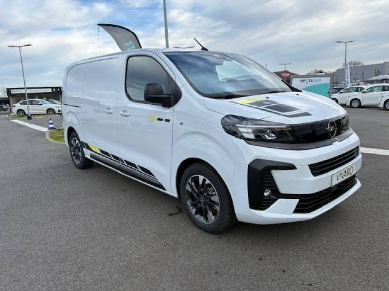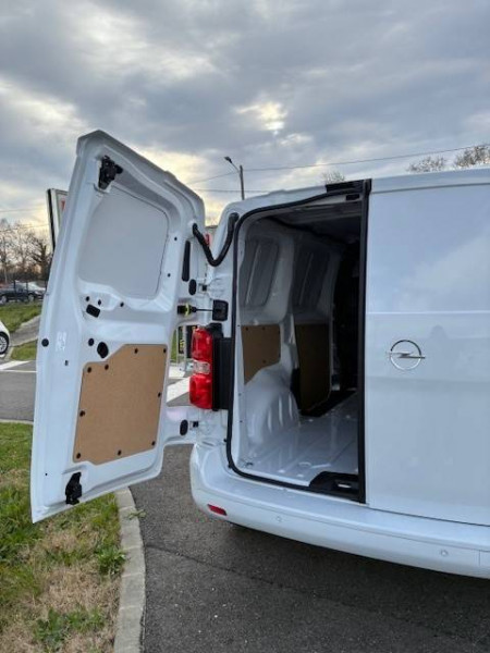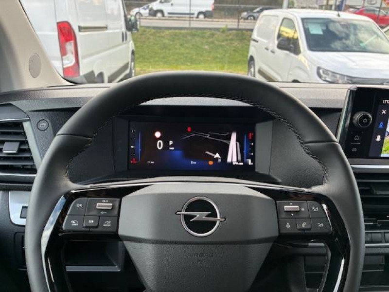 2 prises USB type C / 6 anneaux d'arrimage répartis uniformément sur la zone de chargement / Allumage automatique des feux de croisement et essuie-vitre AV / Boîte automatique à 8 vitesses / Boitier télématique (appel d'urgence et d'assistance géolocalisés + offres de services connectés) (SOS & Assistance: Appel d'urgence automatique ou manuel par push SOS, et mise en relation directe avec la plateforme d'assistance OPEL (24h/24-7j/7). / Cloison complète tôlée / Commandes au volant du système audio et du régulateur-limiteur de vitesse / Décors adhésifs extérieurs Sportive / Détection de sous-gonflage indirecte / Eclairage de zone chargement renforçée à LED (1 Plafonnier LED (5W) en rang 2 + 1 Spot LED (10W) en rang 3) / Frein de stationnement électrique / Jeu de clefs : 2 plips HF 3 boutons avec fonction selectivité / Kit de dépannage provisoire de pneumatiques (Compresseur 12 V + Cartouche de produit de colmatage) / Pack 3 Caméras + Rétroviseur numérique -Aide au stationnement AV, AR et latéral + Système de surveillance d'angle mort -Caméra de recul 180° -Système de rétrovision AR et latérale droite (par 2 caméras avec affichage sur rétroviseur intérieur numérique) -Ecran tactile 10'' HD couleur -Apple CarPlay et Android auto sans fil -Planche de bord avec décors Liquid Palladium -Combiné numérique 10'' HD couleur -Prise 12V dans la zone de chargement -Projecteurs antibrouillard -Rétroviseurs extérieurs rabattables électr. / Pack Confort - Accès et démarrage mains libres - Climatisation automatique bi-zone - Recharge sans fil pour smartphone - Planche de bord avec boîte à gants inférieure et rangement central supérieur fermés - Prise 12V dans la zone de chargement - Projecteurs antibrouillard - Rétroviseurs extérieurs rabattables électriquement - Volant cuir, chauffant, - Poignée(s) intérieure(s) de porte(s) latérale(s) coulissante(s) / Pack Connectivité - Navigation 3D connectée avec reconnaissance vocale, écran tactile 10'' HD couleur - Apple CarPlay et Android auto sans fil - Combiné numérique 10'' HD couleur - Planche de bord avec décor Liquid Palladium - Prise 12V dans la zone de chargement, - Projecteurs antibrouillard - Rétroviseurs extérieurs rabattables électriquement / Pack Hiver Sièges AV chauffants (2 nappes chauffantes par place, y compris sous siège central sur banquette passager - Commandes sur sièges si 2 sièges AV individuels ou sur planche de bord si banquette AV 2 passagers.) Volant cuir chauffant Airbags latéraux AV (thorax+tëte), / Pack Look extérieur - Boucliers, Enjoliveur(s) de rail de porte latérale coulissante et Poignées de portes extérieures couleur caisse - Baguettes latérales et coques de rétroviseurs extérieurs Noir Perla Nera - Jantes tôle noires 17'' avec enjoliveur - Prise 12V dans la zone de chargement - Projecteurs antibrouillard - Rétroviseurs extérieurs rabattables électriquement / Pack Moduwork - Banquette passager 2 places modulable (Les appui-têtes réglable en hauteur et le rangement sous assise centrale, Siège latéral droit relevable: +0,5 m³ de volume utile) - Tablette écritoire - Trappe de charge longue (sous banquette passagers: +1,16 m de longeur utile) / Pack Sécurité Freinage automatique d'urgence avec alerte risque de collision, Assistance au maintien dans la voie, Commutation automatique des feux de route, Détection inattention conducteur et Reconnaissance des panneaux de vitesse et recommandation / Pack Visibilité - Projecteurs antibrouillard - Rétroviseurs extérieurs rabattables électriquement - Prise 12V dans la zone de chargement / Panneaux latéraux intérieurs rangs 2 et 3 de type Isorel / Pare-brise feuilleté acoustique / Peinture opaque / Portes AR battantes 50/50 tôlées avec ouverture à 180° / Prise 12V (120 W max) dans la boîte à gants / Projecteurs full LED avec feux diurnes à LED / Radio DAB Bluetooth avec écran tactile 5'' monochrome + 4 HP (2 tweeters + 2 woofers) + 1 prise USB-A / Revêtement de sol en TPO dans l'habitacle / Sellerie Tissu bi-ton noir/gris / Service connecté de gestion de flotte "Preventive Maintenance" (inclus pendant 4 ans) / Service connecté ''Pack Connect One'' (inclus pendant 10 ans) / Service connecté ''Pack Connect Plus'' (inclus pendant 6 mois) / Siège conducteur individuel avec appui-tête réglable en hauteur et avec accoudoir Réglage : longueur, inclinaison, réhausse et lombaire