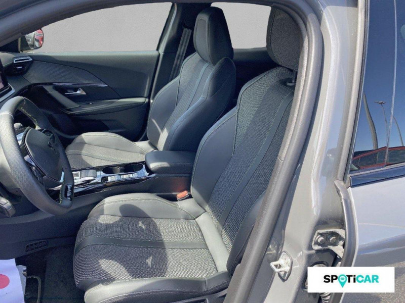 Pédalier Sport aluminium / Surtapis AV et AR / Habitacle et ciel de pavillon noir / Commutation automatique des feux de route / feux de croisement / Télécommande 3 boutons + clé standard / Teintes métallisées / Accès et démarrage mains libres Proximity / Air conditionné automatique monozone / Chargeur embarqué 7 / 4 kW monophasé / Eclairage polyambient 8 couleurs / 4 poignées de maintien / Siège passager AV avec réglage manuel en hauteur / Pare-brise teinté acoustique sérigraphié bi-couches / Peugeot i-Cockpit 3D avec combiné tête haute numérique 3D 10'' / 6 haut-parleurs / Vitres latérales AR et lunette AR chauffante temporisée surteintées / Toit Black Diamond / Rétroviseurs extérieurs dégivrants avec réglage et rabattement électriques / éclairage de seuil / Recharge smartphone sans fil / Lève-vitres électriques AV et AR et séquentiels avec anti-pincement / Fixations ISOFIX aux 2 places latérales AR avec Top Tether / Kit de dépannage de pneumatique compresseur 12 V avec cartouche de produit de colmatage / Câble électrique mode 3 triphasé 22 kW / Barres de toit longitudinales Noir Brillant / Rétroviseur intérieur électrochrome sans cadre / Pack Visibilité Allumage automatique des feux de croisement; Essuie vitre AV à déclenchement automatique; Eclairage d'accompagnement automatique / PEUGEOT Connect SOS & Assistance et Teleservices SOS & Assistance : Appel d'urgence automatique ou manuel par push SOS / et mise en relation directe avec la plateforme d'assistance PEUGEOT Teleservices : Détection du besoin d'une intervention technique ou d'une opération d'entretien périodique et transmission au réseau PEUGEOT pour prise de rendez vous / Sellerie tissu BELOMKA / accompagnement TEP Isabella / trimatière Uni Capy et surpiqûres Vert Adamit / Jantes alliage 17'' diamantées KARAKOY bi-tons Noir Onyx et vernis brillant / ESP Déconnectable avec aide au démarrage en pente et détection de sous gonflage indirecte / Pack Safety Plus Régulateur / Limiteur de vitesse / Freinage d'urgence automatique avec alerte risque de collision / Alerte active de franchissement involontaire de ligne et bas côté / Alerte attention conducteur / Console haute avec accoudoir & frein de stationnement électrique 1 prise USB type C pour passagers AR / Sélecteur de mode de conduite Normal/Eco/Sport / graphique et sonore / Peugeot i-Connect Radio DAB avec écran tactile couleur personnalisable 10 HD / Mirror Screen sans fil sur console AV / Projecteurs Peugeot upper Full LED Technology avec feux diurnes à LED 3 griffes / Visiopark 1 Caméra de recul HD & aide au stationnement AV et AR / graphique et sonore / Eléments de style éxterieur Lécheurs de vitres Noir Brillant / Katana noir mat avec insert noir brillant et monogramme GT sur motorisations thermiques / Protections latérales de portes Noir grainées avec inserts Gris Météor / Enjoliveurs de custode avec sérigraphie / Seuils de porte aluminium avec lettrage PEUGEOT Noir / Eléments de style intérieure Planche de bord moussée avec double surpiqûres adamite/tramontane et baguette Noir brillante avec jonc chromé et jonc lumineux / Panneaux de portes AV avec décor Carbone et baguette Noir brillante et jonc lumineux et crosse de tirage TEP Isabella Mistral / Panneaux de portes AR avec grain Karsten avec baguette Noir brillant / Accoudoirs de porte avant et arrière tissu/TEP Isabella avec surpiqûre Adamite / Volant compact cuir fleur avec commandes multimédia intégrées / Eclairage intérieur Miroir de courtoisie dans pare soleil éclairé à LED / Eclairage à LED partie basse rangement AR et caves à pieds / Eclairage intérieur Plafonnier AV A-DOME 3 LEDs 2 liseuses AR LED i DOME / Plancher de coffre modulable 2 positions