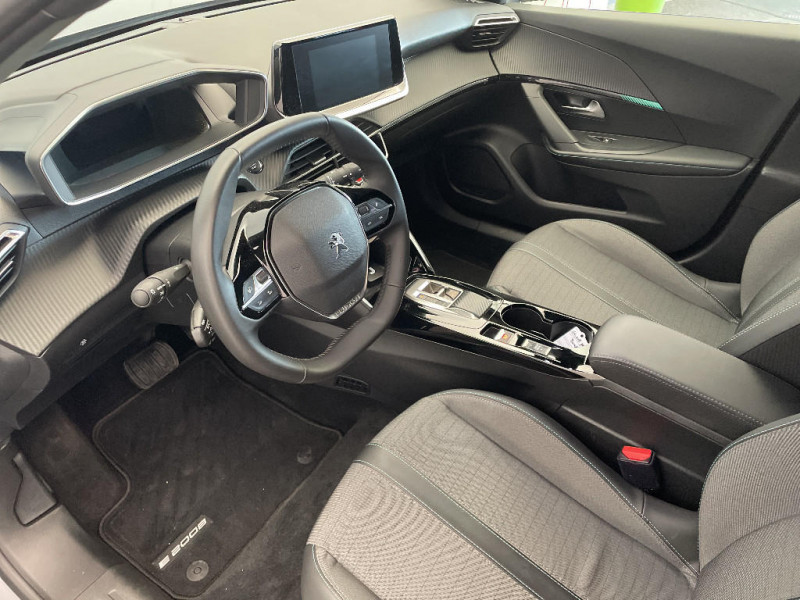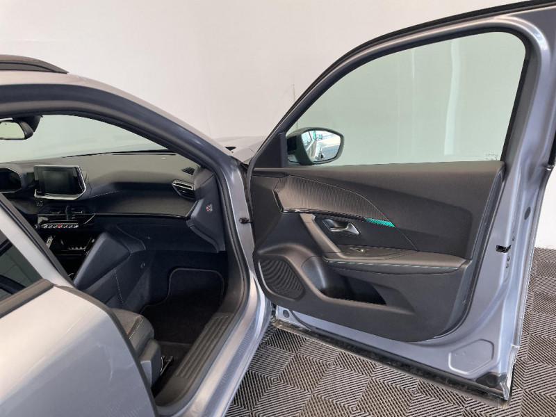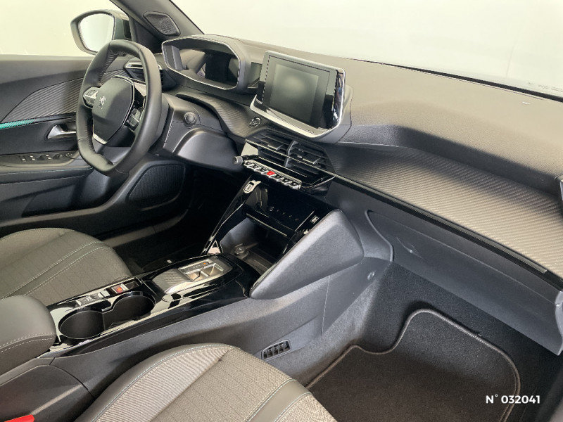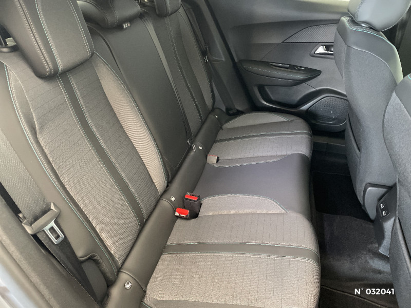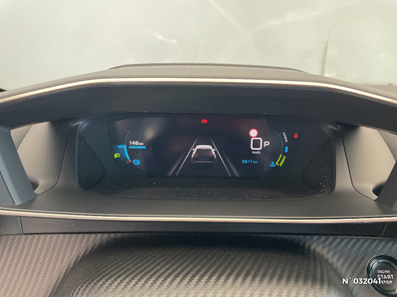 Aide graphique et sonore au stationnement AR / Essuie-vitre AV à déclenchement automatique / Rétroviseur intérieur photosensible / Lève-vitres électriques AV et AR séquentiels avec antipincement / Canule d'echappement chromée / Pare-brise teinté acoustique / Eclairage de coffre / 6 airbags - frontaux auto-adaptatifs, latéraux AV (thorax et abdominaux), rideaux AV / Jantes alliage 17'' SALAMANCA diamantées bi-tons Noir Onyx et vernis brillant, cabochons et vis Noir Onyx / Commandes multimédia intégrées au volant / Frein de stationnement électrique avec aide au démarrage en pente et serrage automatique / Barres de toit longitudinales Noir Brillant / Becquet AR couleur caisse / Coques de rétroviseurs extérieurs avec répétiteurs latéraux à LED / Enjoliveurs de custode Noir Brillant / Enjoliveurs de seuil de coffre Métallure / Détection de sous-gonflage indirecte / Commande d'ouverture extérieure couleur caisse / Avertisseur de temps de conduite / Lécheurs de vitres latérales Noir Mat / Passages de roues Noir Mat / Protections latérales de portes Noir grainées avec inserts Métallure / Commandes d'ouverture intérieure de portes chromées / Planche de bord slush et panneaux de portes AV avec décors aspect carbone et baguette Noir Brillant avec jonc chromé / Seuils de portes AV en inox avec marquage PEUGEOT Noir / Console haute avec accoudoir intégré / Eclairage de coffre à ampoule / Jantes alliage 17'' SALAMANCA diamantées bi-tons Noir Onyx et vernis brillant, cabochons et vis Noir / 6 haut-parleurs (2 tweeters et 2 woofers à l'AV et 2 haut-parleurs à l'AR) / Vitres latérales AR et lunette AR chauffante temporisée surteintées / Fonction DAB (Radio Numérique Terrestre) / Air conditionné automatique monozone / 2 prises USB (Recharge type A) sur console haute pour passagers AR / Rétroviseurs extérieurs dégivrants avec réglage et rabattement électriques / PEUGEOT Connect SOS & Assistance et Telemaintenance / Fonctions Mirror Screen (Apple Carplay/Android Auto) / Katana Noir Mat avec insert Noir Brillant et marquage "e" / Radio avec écran tactile capacitif 7" couleur, 2 prises USB console AV (1 Data Type A, 1 recharge type C) / Projecteurs LED Technology, avec indicateurs de direction à ampoules / Calandre avec grille supérieure noir grainée et marquage horizontal couleur caisse, grille inférieur avec décor Métallure, enjoliveur supérieur couleur caisse / Plancher de coffre modulable 2 positions / Sellerie Tri-matière Tissu COSY/TEP, surpiqures Blue Virtuel / Visio Park 1 / Kit de dépannage de pneumatique compresseur 12 V avec cartouche de produit de colmatage / Câble électrique mode 3 triphasé 22 kW / Visio Park 1 (Caméra de recul) / Pack Safety Plus / Siège passager AV à réglage manuel en hauteur / Programme de Stabilité Electronique (ESC) avec ASR, ABS, REF, AFU, CDS et TSM / Chargeur embarqué 7,4 kW monophasé / Peugeot i-Cockpit 3D avec combiné tête haute numérique 3D / 4 poignées de maintien (2 à l'AV et 2 à l'AR) / Rétroviseur intérieur à réglage jour/nuit manuel / Airbags frontaux auto-adaptatifs, latéraux AV (thorax et abdominaux), rideaux AV / Eclairage extérieur d'accueil et d'accompagnement / Fixations suivant norme ISOFIX et Top Tether avec étiquettes de localisation aux places latérales AR / Feux diurnes à LED sous projecteurs / Eclairage intérieur à LED / Filets aumônières au dos des sièges AV / Habitacle et ciel de pavillon noir