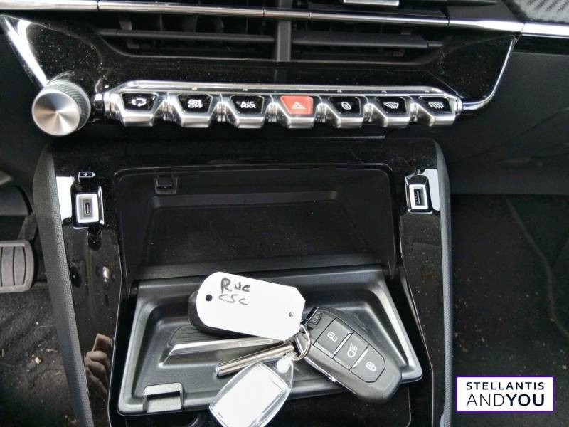 2 prises USB (Recharge type A) sur console haute pour passagers AR / 4 poignées de maintien (2 à l'AV et 2 à l'AR) / 6 HPs (2 tweeters et 2 woofers à l'AV et 2 HPs à l'AR) / Aide graphique et sonore au stationnement AR / latéraux AV (thorax et abdominaux) / rideaux AV / Air conditionné automatique monozone / Avertisseur de temps de conduite / Barres de toit longitudinales Noir Brillant / Becquet AR couleur caisse / Calandre avec grille supérieure noir grainée et marquage horizontal Chrome Brillant / grille inférieure avec décor Métallure / enjoliveur supérieur Noir Brillant / Canules d'échappement doubles droite et gauche chromées / Ceintures AR centrale 3 points avec détection de non bouclage / Ceintures de sécurité AR latérales avec enrouleurs pyrotechniques / limiteurs d'effort et détection de non bouclage / Ceintures de sécurité AV conducteur et passager à enrouleurs pyrotechniques avec limiteurs d'effort et détection de non bouclage / Commande d'ouverture extérieure couleur caisse / Commandes d'ouverture intérieure de portes chromées / Console haute avec accoudoir intégré / Coques de rétroviseurs couleur carrosserie / Coques de rétroviseurs extérieurs avec répétiteurs latéraux à LED / Démarrage mains libres avec 2 télécommandes 3 boutons mains libres / Détection de sous-gonflage indirecte / Eclairage de coffre à ampoule / Eclairage extérieur d'accueil et d'accompagnement / Eclairage intérieur à LED : plafonniers tactiles AV (1 lampe et 2 liseuses) et AR (2 liseuse) / cave à pieds / Enjoliveurs de custode Noir Brillant / Enjoliveurs de seuil de coffre Métallure / Essuie-vitre AV à déclenchement automatique / Feux diurnes à LED sous projecteurs / Filets aumônières au dos des sièges AV / Fixations suivant norme ISOFIX et Top Tether avec étiquettes de localisation aux places latérales AR / Fonction Bluetooth et Mirror Screen (Apple CarPlay / Android Auto / MirrorLink) / Fonction DAB (Radio Numérique Terrestre) / Frein de stationnement électrique avec aide au démarrage en pente et serrage automatique / Habitacle et ciel de pavillon gris clair / Hill Assist / Jantes alliage 17'' SALAMANCA diamantées bi-tons Noir Onyx et vernis brillant / cabochons et vis Noir / Katana Noir Mat avec insert Noir Brillant / Kit de dépannage pneumatique avec conditionnement rigide / Lécheurs de vitres latérales Noir Mat / Lève-vitres AV et AR électriques séquentiels avec antipincement / Pack Safety Plus / Pare-brise teinté acoustique / Passages de roues Noir Mat / Peugeot i-Cockpit 3D avec combiné tête haute numérique 10'' / Planche de bord slush et panneaux de portes AV avec décors aspect carbone et baguette Noir Brillant avec jonc chromé / Plancher de coffre 2 positions / Programme de Stabilité Electronique (ESC) avec ASR / REF / AFU / CDS et TSM / Projecteurs antibrouillard à LED avec fonction cornering / indicateurs de direction à ampoules / Protections latérales de portes Noir grainées avec inserts Métallure / Radio avec écran tactile capacitif 7 couleur / 2 prises USB console AV (1 Data Type A / 1 recharge type C) / 2 prises USB console haute (2 recharge Type A) / Rétroviseur intérieur photosensible / Rétroviseurs extérieurs dégivrants avec réglage et rabattement électriques / éclairage de seuil / Sellerie Tri-matière Tissu COSY/TEP / surpiqûres Vert Mentholé / Siège passager AV à réglage manuel en hauteur et lombaire pneumatique / Teinte métallisée Gris Platinium / Teinte métallisées Orange Fusion / Visio Park 1: Caméra de recul avec restitution sur l'écran tactile d'une vue AR et d'une vue de dessus de l'environnement AR du véhicule + Aide graphique et sonore au stationnement AR / Vitres latérales AR et lunette AR chauffante temporisée surteintées / Volant compact croute de cuir / Lion chromé et commandes multimédia sur volant