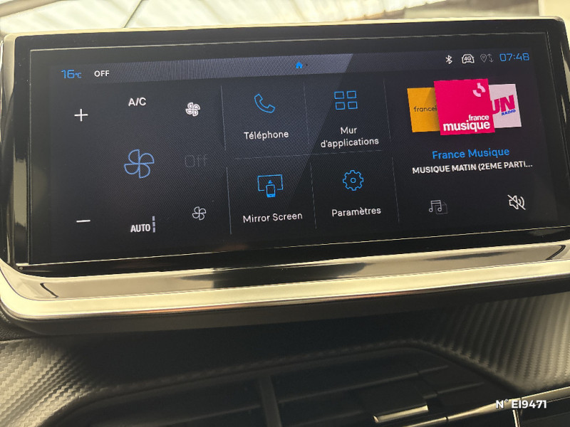 Peugeot Connect SOS & Assistance et Teleservices SOS & Assistance : Appel d'urgence automatique ou manuel par push SOS, et mise en relation directe avec la plateforme d'assistance PEUGEOT (24h/24 7j/7) , Teleservices : Détection du besoin d'une intervention technique ou d'une opération d'entretien périodique et transmission au réseau PEUGEOT pour prise de rendez vous / 6 airbags (Frontaux adaptatifs, latéraux AV, rideaux AV/AR) / Peugeot i-Connect: Radio DAB avec écran tactile couleur personnalisable 10" HD, Bluetooth - Mirror Screen sans fil (Apple CarPlay/Android Auto) - Wifi - 1 prise USB type C ( Data+charge), 1 prise USB type C (Charge) sur console AV / Plancher de coffre modulable 2 positions / Plancher de coffre standard / Projecteurs Peugeot LED Technology avec feux diurnes à LED 3 griffes / Rétroviseur intérieur électrochrome / Rétroviseurs extérieurs dégivrants avec réglage et rabattement électriques / Pack Safety Plus Régulateur / Limiteur de vitesse, Freinage d'urgence automatique avec alerte risque de collision, Alerte active de franchissement involontaire de ligne et bas côté, Reconnaissance étendue des panneaux de signalisation et préconisation de vitesse, Alerte attention conducteur. Freinage d'urgence automatique de jour et de nuit (caméra et radar) / Pack Safety Plus Régulateur / Limiteur de vitesse, Freinage d'urgence automatique avec alerte risque de collision pilotée par caméra et radar, Alerte active de franchissement involontaire de ligne et bas côté, Reconnaissance étendue des panneaux de signalisation et préconisation de vitesse, Alerte attention conducteur / Pack Visibilité - Allumage automatique des feux de croisement - Essuie vitre AV à déclenchement automatique - Eclairage extérieur d'accueil et d'accompagnement / Pack Visibilité Allumage automatique des feux de croisement; Essuie vitre AV à déclenchement automatique; Eclairage d'accompagnement automatique / Pare-brise teinté acoustique / Aide au stationnement AV/AR, graphique et sonore / Air conditionné automatique monozone / Barres de toit longitudinales Noir Brillant / Canule d'echappement double chromée / Console haute avec accoudoir & frein de stationnement électrique 1 prise USB type C (Charge) et 1 prise USB type A (Charge) pour passagers AR, Sélecteur de mode de conduite Normal/Eco/Sport / Eclairage intérieur: Plafonnier AV A-DOME 3 LEDs (1 lampe, 2 liseuses), 2 liseuses AR LED i-DOME / Eléments de style éxterieur: Calandre haut de gamme Noir avec marquage vertical couleur caisse, larmes Dark Chrome, Décor de grille inférieure Gris Météor, Katana noir mat avec insert noir brillant / Eléments de style intérieure: Panneaux de portes AV avec décor Carbone et baguette Noir brillant avec tampographie Quartz, Accoudoirs de porte AV/AR tissu/TEP Isabella avec surpiqûre Quartz / ESP Déconnectable avec aide au démarrage en pente et détection de sous gonflage indirecte / Habitacle et ciel de pavillon Noir / Jantes alliage 17" diamantées KARAKOY bi-tons Noir Onyx et vernis brillant / Kit de dépannage de pneumatique compresseur 12 V avec cartouche de produit de colmatage / Lève-vitres électriques AV/ AR et séquentiels avec anti-pincement / Pack Safety Plus Régulateur / Limiteur de vitesse, Freinage d'urgence automatique avec alerte risque de collision, Alerte active de franchissement involontaire de ligne et bas--côté,côté, Reconnaissance étendue des panneaux de signalisation et préconisation de vitesse, Alerte attention conducteur, Freinage d'urgence automatique de jour et de nuit (caméra et radar) / 6 HPs (2 tweeters et 2 woofers à l'AV et 2 HPs à l'AR) / Sellerie tissu CASUAL LOMSA embossé, accompagnement TEP Isabella, trimatière LOMSA et surpiqûres Quartz / Siège passager AV avec réglage manuel en hauteur / Télécommande 3 boutons + clé standard / Vitres latérales AR et lunette AR chauffante temporisée surteintées / Volant compact croute de cuir avec commandes multimédia intégrées / 4 poignées de maintien (2 à l'AV et 2 à l'AR) / Peugeot i-Cockpit avec combiné tête haute 10" numérique