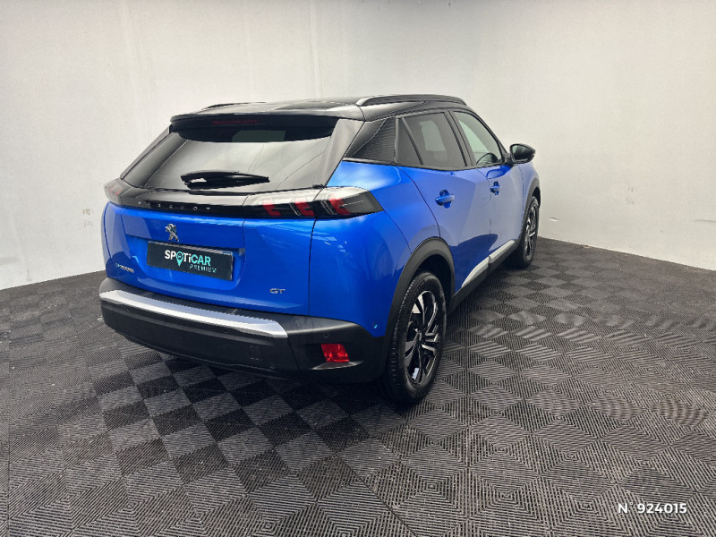 Panneaux de porte AV avec poignée moussée / Seuils de portes AV en inox avec marquage PEUGEOT Noir / Volant compact cuir fleur avec laà§age vert, Lion chromé et badge GT Line et commandes multimédia sur volant / Démarrage mains libres avec 2 télécommandes 3 boutons mains libres / Eclairage polyambient 8 couleurs / Lécheurs de vitres latérales Noir Brillant / Ceintures AR centrale 3 points avec détection de non bouclage / Eclairage extérieur d'accueil et d'accompagnement / Fixations suivant norme ISOFIX et Top Tether avec étiquettes de localisation aux places latérales AR / Ceintures de sécurité AR latérales avec enrouleurs pyrotechniques, limiteurs d'effort et détection de non bouclage / Katana Noir Mat avec insert Noir Brillant et marquage "e" / Navigation 3D connectée avec écran tactile 10" HD, 2 prises USB sur console AV (1 DATA Type A, de recharge type C) / Fonctions Mirror Screen (Apple Carplay/Android Auto) / Fixations suivant norme ISOFIX et Top Tether avec étiquette de localisation sur siège passager AV / Kit de dépannage pneumatique avec conditionnement rigide / Console haute avec accoudoir intégré / Eclairage de coffre à ampoule / Surtapis AV et AR noirs avec surpiqûres Vert Adamite / Pare-brise teinté acoustique sérigraphié bi-couches / Peugeot i-Cockpit 3D avec combiné tête haute numérique 3D 10'' / Airbags frontaux, latéraux AV (thorax et abdominaux), rideaux AV / Jantes alliage 18'' BUND diamantées bi-tons Noir Onyx et vernis brillant cabochons et vis Noir Onyx, inserts Gris Storm mat / Chargeur embarqué 7,4 kW monophasé / Essuie-vitre AV à déclenchement automatique / Câble électrique mode 2, prises de charge T2/EF type Green'up / 2 prises USB (Recharge type A) sur console haute pour passagers AR / Feux diurnes à LED sous projecteurs / Projecteurs Peugeot Full LED Technology avec signature 3 griffes, indicateurs de direction à LED / Planche de bord slush surpiquée et panneaux de portes AV avec décors aspect carbone et éclairage polyambiant 8 couleurs / Pack Safety Plus / 4 poignées de maintien (2 à l'AV et 2 à l'AR) / Air conditionné automatique monozone / Filets aumônières au dos des sièges AV / Habitacle et ciel de pavillon noir / Peugeot i-Cockpit 3D avec combiné tête haute numérique 3D / Siège passager AV à réglage manuel en hauteur / Becquet AR Noir Brillant / PEUGEOT Connect SOS & Assistance Appel d'urgence automatique ou manuel par push SOS, et mise en relation directe avec la plateforme d'assistance PEUGEOT (24/24 - 7/7), Détection du besoin d'une intervention technique ou d'une opération d'entretien périodique et transmission au réseau PEUGEOT pour prise de rendez-vous / Plancher de coffre 2 positions / Navigation 3D connectée avec écran tactile 10" HD 2 prises USB sur console AV (1 DATA Type A et 1 de recharge type C),2 prises USB console haute (2 recharge Type A) / PEUGEOT Connect SOS & Assistance et Telemaintenance / Navigation 3D connectée avec reconnaissance vocale, écran tactile capacitif 10" HD 2 prises USB sur console avant (1 DATA Type A et 1 de recharge type C),2 prises USB arrière sur la console haute (recharge), Fonction DAB (Radio Numérique Terrestre),Cartographie Europe,Services de navigation connectée TomTom® (TomTom® Traffic, prix carburant, parkings, météo,recherche locale), abonnement 3 ans inclus, Connexion automatique et permanente via carte SIM intégrée au véhicule / Avertisseur de temps de conduite / Jantes alliage 17'' SALAMANCA diamantées bi-tons Noir Onyx et vernis brillant, cabochons et vis Noir / Commande d'ouverture extérieure couleur caisse / Toit Black Diamond / Rétroviseur intérieur photosensible frameless / Hill Assist / Ceintures de sécurité AV conducteur et passager à enrouleurs pyrotechniques avec limiteurs d'effort et détection de non bouclage / Aide graphique et sonore au stationnement AR / Eclairage intérieur à LED : plafonniers tactiles AV (1 lampe et 2 liseuses) et AR (2 liseuses), pares-soleils, cave à pieds / Fonction Bluetooth et Mirror Screen (Apple CarPlay / Android Auto / MirrorLink) / 6 haut-parleurs (2 tweeters et 2 woofers à l'AV et 2 haut-parleurs à l'AR) / Détection de sous-gonflage indirecte / Barres de toit longitudinales Noir Brillant / Volant compact cuir fleur avec laà§age vert, Lion chromé et badge GT et commandes multimédia sur volant / Programme de Stabilité Electronique (ESC) avec ASR, ABS, REF, AFU, CDS et TSM / Frein de stationnement électrique avec aide au démarrage en pente et serrage automatique / Lève-vitres AV et AR électriques séquentiels avec antipincement / Toit "Black Diamond" / Pédalier Sport aluminium / Aide graphique et sonore au stationnement AV / Rétroviseurs extérieurs dégivrants avec réglage et rabattement électriques,éclairage de seuil / Fonction DAB (Radio Numérique Terrestre) / Commutation automatique des feux de route / feux de croisement / Teinte métallisées Orange Fusion / Katana avec marquage "e" / Passages de roues Noir Mat / Protections latérales de portes Noir grainées avec inserts Métallure / Commandes d'ouverture intérieure de portes chromées / Vitres latérales AR et lunette AR chauffante temporisée surteintées / Calandre avec grille supérieure noir grainée et marquage horizontal couleur caisse, grille inférieur avec décor Métallure, enjoliveur supérieur couleur caisse, Lion dichroïque / Coques de rétroviseurs extérieurs avec répétiteurs latéraux à LED / Enjoliveurs de custode Noir Brillant avec sérigraphie / Enjoliveurs de seuil de coffre Métallure / Visio Park 1 Caméra de recul avec restitution sur l'écran tactile d'une vue AR et d'une vue de dessus de l'environnement AR du véhicule + Aide graphique et sonore au stationnement AR / Eclairage intérieur à LED : plafonniers tactiles AV (1 lampe et 2 liseuses) et AR (2 liseuse), miroir de courtoisie dans pare-soleil éclairéà LED, éclairage LED cave à pieds / Airbags frontaux auto-adaptat