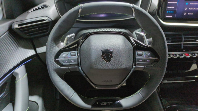 ...) + alerte active de franchissement involontaire de ligne et bas-côté +reconnaissance étendue des panneaux de signalisation et préconisation de vitesse + alerte attention conducteur + freinage d'urgence automatique de jour et de nuit (3 caméras & radar) / 4 poignées de maintien rétractables (2 à l'av et 2 à l'ar) / 6 airbags (frontaux auto-adaptatifs / 6 hps (2 tweeters et 2 woofers à l'av et 2 hps à l'ar) / Accès et démarrage mains libres proximity / Accompagnement tep isabella / Air conditionné automatique monozone / Barres de toit longitudinales noir brillant / Bluetooth + mirror screen sans fil (apple carplay/android auto) + wifi + 1 prise usb type c ( data+charge) + 1 prise usb type c (charge) sur console av / Boîte de vitesse automatique / Canule d'echappement double chromée / Commutation automatique des feux de route / feux de croisement / Console haute avec accoudoir & frein de stationnement électrique 1 prise usb type c (charge) et 1 prise usb type a (charge) pour passagers ar / Cyclistes / Détection élargie (3 caméras haut de pare-brise) et protection des usagers de la route vulnérables (piétons / Eclairage polyambiant 8 couleurs (liés aux modes de conduite) / Eléments de style éxterieur : lécheurs de vitres noir brillant + katana noir mat avec insert noir brillant et monogramme gt + protections latérales de portes noir grainées avec inserts gris météor + becquet ar noir perla nera + seuils de porte aluminium avec lettrage peugeot noir / Eléments de style intérieure: planche de bord moussée avec double surpiqûres adamite/tramontane et baguette noir brillante avec jonc chromé et jonc lumineux + panneaux de portes av avec décor carbone et baguette noir brillante et jonc lumineux (8 couleurs) et crosse de tirage tep isabella mistral + / Esp déconnectable avec aide au démarrage en pente et détection de sous gonflage indirecte / Graphique et sonore + rétroviseurs extérieurs éclairage d'accueil led + témoins de surveillance angles morts + peugeot i-connect advanced navigation 3d connectée + ecran tactile 10" hd + régulateur vitesse adaptatif + aide au maintien dans la voie + recharge smartphone sans fil 15w / Habitacle et ciel de pavillon noir / Jantes alliage 18" evissa diamantées bi-tons noir onyx et vernis black mist avec inserts noir onyx mat / Kit de dépannage de pneumatique compresseur 12 v avec cartouche de produit de colmatage / Latéraux av et rideaux av/ar) / Lève-vitres av/ar électriques et séquentiels avec antipincement / Pack safety plus : freinage automatique d'urgence avec alerte risque de collision / Pack visibilité : allumage automatique des feux de croisement : essuie vitre av à déclenchement automatique : eclairage extérieur d'accueil et d'accompagnement / Pack vision & navigation & drive assist plus : visio park 2 : caméras av + recul hd avec restitution sur écran tactile de vue av-ar + de vue de l'environnement du véhicule sur 360° + aide au stationnement av-ar / Pédalier sport aluminium / Peugeot i-cockpit 3d avec combiné tête haute numérique 10" numérique / Peugeot i-connect: radio dab avec écran tactile couleur personnalisable 10" hd / Plancher de coffre modulable 2 positions / Projecteurs peugeot upper full led technology avec feux diurnes à led 3 griffes / Rétroviseur intérieur électrochrome / Rétroviseurs extérieurs dégivrants avec réglage et rabattement électriques / Sélecteur de mode de conduite normal/eco/sport / Sellerie tissu belomka / Séquentielle (6 rapports) / Siège passager av avec réglage manuel en hauteur / Teinte métallisée gris artense / Toit black diamond / Trimatière uni capy et surpiqûres vert adamite / Vitres latérales ar et lunette ar chauffante temporisée surteintées / Volant compact cuir fleur avec commandes multimédia intégrées