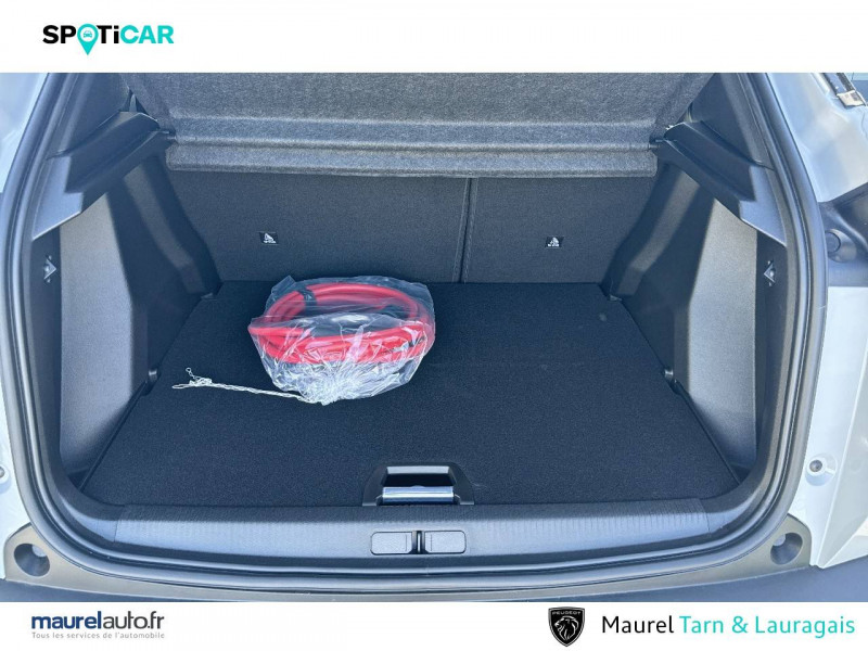 4 poignées de maintien (2 à l'AV et 2 à l'AR) / 6 airbags (Frontaux adaptatifs, latéraux AV, rideaux AV/AR) / 6 HPs (2 tweeters et 2 woofers à l'AV et 2 HPs à l'AR) / Accès et démarrage mains libres Proximity / Air conditionné automatique monozone / Barres de toit longitudinales Noir Brillant / Câble électrique mode 3 triphasé 22 kW / Chargeur embarqué 7,4kW monophasé / Commutation automatique des feux de route / feux de croisement / Console haute avec accoudoir & frein de stationnement électrique 1 prise USB type C (Charge) et 1 prise USB type A (Charge) pour passagers AR, Sélecteur de mode de conduite Normal/Eco/Sport / Eclairage intérieur: Miroir de courtoisie dans pare-soleil éclairéà LED, Eclairage à LED partie basse rangement AR et caves à pieds / Eclairage intérieur: Plafonnier AV A-DOME 3 LEDs (1 lampe, 2 liseuses), 2 liseuses AR LED i-DOME / Eclairage polyambient 8 couleurs / Eléments de style éxterieur : Lécheurs de vitres Noir Brillant, Katana noir mat avec insert noir brillant et monogramme GT sur motorisations thermiques, Protections latérales de portes Noir grainées avec inserts Gris Météor, Becquet AR Noir Perla Nera, Seuils de porte aluminium avec lettrage PEUGEOT Noir / Eléments de style intérieure: Planche de bord moussée avec double surpiqûres adamite/tramontane et baguette Noir brillante avec jonc chromé et jonc lumineux, Panneaux de portes AV avec décor Carbone et baguette Noir brillante et jonc lumineux (8 couleurs) et crosse de tirage TEP Isabella Mistral, Panneaux de portes AR avec grain Karsten avec baguette Noir brillant, Accoudoirs de porte AV/AR tissu/TEP Isabella avec surpiqûre Adamite / ESP Déconnectable avec aide au démarrage en pente et détection de sous gonflage indirecte / Habitacle et ciel de pavillon Noir / Jantes alliage 17" diamantées KARAKOY bi-tons Noir Onyx et vernis brillant / Lève-vitres électriques AV/ AR et séquentiels avec anti-pincement / Pack Safety Plus Régulateur / Limiteur de vitesse, Freinage d'urgence automatique avec alerte risque de collision, Alerte active de franchissement involontaire de ligne et bas--côté,côté, Reconnaissance étendue des panneaux de signalisation et préconisation de vitesse, Alerte attention conducteur, Freinage d'urgence automatique de jour et de nuit (caméra et radar) / Pack Visibilité - Allumage automatique des feux de croisement - Essuie vitre AV à déclenchement automatique - Eclairage extérieur d'accueil et d'accompagnement / Pare-brise teinté acoustique sérigraphié bi-couches / Pédalier Sport aluminium / Peugeot Connect SOS & Assistance et Teleservices SOS & Assistance : Appel d'urgence automatique ou manuel par push SOS, et mise en relation directe avec la plateforme d'assistance PEUGEOT (24h/24 7j/7) , Teleservices : Détection du besoin d'une intervention technique ou d'une opération d'entretien périodique et transmission au réseau PEUGEOT pour prise de rendez vous / Peugeot i-Cockpit 3D avec combiné tête haute numérique 10'' / Peugeot i-Connect: Radio DAB avec écran tactile couleur personnalisable 10" HD, Bluetooth - Mirror Screen sans fil (Apple CarPlay/Android Auto) - Wifi - 1 prise USB type C ( Data+charge), 1 prise USB type C (Charge) sur console AV / Plancher de coffre modulable 2 positions / Projecteurs Peugeot upper Full LED Technology avec feux diurnes à LED 3 griffes / Rétroviseur intérieur électrochrome / Rétroviseurs extérieurs dégivrants avec réglage et rabattement électriques / Sellerie tissu BELOMKA, accompagnement TEP Isabella, trimatière Uni Capy et surpiqûres Vert Adamite / Siège passager AV avec réglage manuel en hauteur / Surtapis AV/AR / Télécommande 3 boutons + clé standard / Toit Black Diamond / Visiopark 1: caméra de recul HD & aide au stationnement AV/AR, graphique et sonore / Vitres latérales AR et lunette AR chauffante temporisée surteintées / Volant compact cuir fleur avec commandes multimédia intégrées