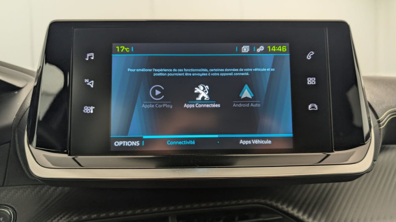 Pédalier Sport aluminium / Détection de sous-gonflage indirecte / Aide graphique et sonore au stationnement AV / Aide graphique et sonore au stationnement AR / Essuie-vitre AV à déclenchement automatique / Eclairage intérieur à LED / Commutation automatique des feux de route / feux de croisement / Frein de stationnement électrique avec aide au démarrage en pente et serrage automatique / Barres de toit longitudinales / Pack Safety Plus : Pack Safety Freinage d'urgence automatique avec caméra & radar / Siège passager AV à réglage manuel en hauteur / Programme de Stabilité Electronique (ESC) avec ASR, ABS, REF, AFU, CDS et TSM / Peugeot i-Cockpit 3D avec combiné tête haute numérique 3D / Rétroviseur intérieur photosensible frameless / Eclairage extérieur d'accueil et d'accompagnement / Fixations suivant norme ISOFIX et Top Tether avec étiquettes de localisation aux places latérales AR / Fixations suivant norme ISOFIX et Top Tether avec étiquette de localisation sur siège passager AV / Projecteurs Peugeot Full LED Technology avec signature 3 griffes, indicateurs de direction à LED / Feux diurnes à LED sous projecteurs / Coques de rétroviseurs extérieurs avec répétiteurs latéraux à LED / Console haute avec accoudoir intégré / 6 HPs (2 tweeters et 2 woofers à l'AV et 2 HPs à l'AR) / Vitres latérales AR et lunette AR chauffante temporisée surteintées / Fonction DAB (Radio Numérique Terrestre) / Sellerie Tri matière Tissu CAPY/TEP surpiqûres Vert Adamite / Air conditionné automatique monozone / Rétroviseurs extérieurs dégivrants avec réglage et rabattement électriques, éclairage de seuil / Fonctions Mirror Screen (Apple Carplay/Android Auto) / Toit "Black Diamond" / Plancher de coffre modulable 2 positions / Kit de dépannage de pneumatique / Câble électrique mode 3 triphasé 22 kW / Navigation 3D connectée avec reconnaissance vocale, écran tactile capacitif 7" / Visio Park 1 (Caméra de recul) / Eclairage de coffre / 6 airbags - frontaux auto-adaptatifs, latéraux AV (thorax et abdominaux), rideaux AV / Jantes alliage 17'' SALAMANCA diamantées bi-tons Noir Onyx et vernis brillant, cabochons et vis Noir Onyx / Commandes multimédia intégrées au volant / Lève-vitres AV/AR électriques et séquentiels avec antipincement / / Véhicules équivalents: Captur - C4 Cactus - CX3
