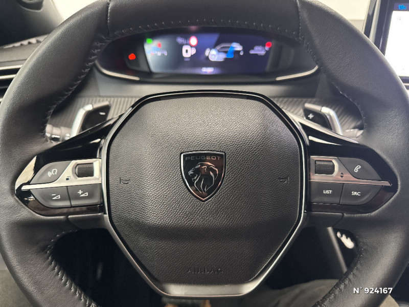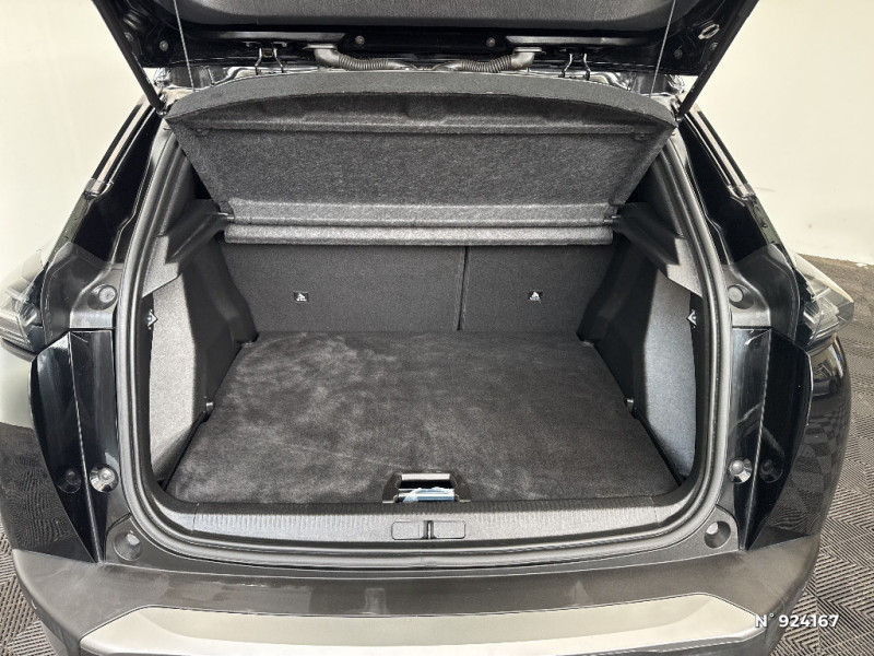 Barres de toit longitudinales Noir Brillant / Air conditionné automatique monozone / Peugeot i-Connect Radio DAB avec écran tactile couleur personnalisable 10" HD,Bluetooth, Mirror Screen sans fil (Apple CarPlay/Android Auto), Wifi, 1 prise USB type C ( Data+charge ) et 1 prise USB type C (Charge) sur console AV / ESP Déconnectable avec aide au démarrage en pente et détection de sous gonflage indirecte / Eclairage intérieur Plafonnier AV A-DOME 3 LEDs (1 lampe, 2 liseuses) 2 liseuses AR LED i DOME / Jantes alliage 17'' diamantées KARAKOY bi-tons Noir Onyx et vernis brillant / Aide au stationnement AV et AR, graphique et sonore / Peugeot i-Cockpit avec combiné tête haute 10'' numérique / Eléments de style éxterieur Calandre haut de gamme Noir avec marquage vertical couleur caisse, larmes Dark Chrome, Décor de grille inférieure Gris Météor, Katana noir mat avec insert noir brillant / Eléments de style intérieure Panneaux de portes avant avec décor Carbone et baguette Noir brillante avec tampographie Quartz, Accoudoirs de porte avant et arrière tissu/TEP Isabella avec surpiqûre Quartz / Rétroviseurs extérieurs dégivrants avec réglage et rabattement électriques / PEUGEOT Connect SOS & Assistance et Teleservices SOS & Assistance : Appel d'urgence automatique ou manuel par push SOS, et mise en relation directe avec la plateforme d'assistance PEUGEOT (24h/24 7j/7) Teleservices : Détection du besoin d'une intervention technique ou d'une opération d'entretien périodique et transmission au réseau PEUGEOT pour prise de rendez vous / Pack Visibilité Allumage automatique des feux de croisement; Essuie vitre AV à déclenchement automatique; Eclairage extérieur d'accueil et d'accompagnement / Plancher de coffre modulable 2 positions / Pare-brise teinté acoustique / Pack Visibilité Allumage automatique des feux de croisement; Essuie vitre AV à déclenchement automatique; Eclairage d'accompagnement automatique / Pack Safety Plus Pack Safety + freinage d'urgence automatique de jour et de nuit (caméra et radar) / Lève-vitres électriques AV et AR et séquentiels avec anti-pincement / Projecteurs "Peugeot LED Technology" avec feux diurnes à LED 3 griffes / Kit de dépannage de pneumatique compresseur 12 V avec cartouche de produit de colmatage / Sellerie tissu CASUAL LOMSA embossé, accompagnement TEP Isabella, tri matière LOMSA et surpiqûres Quartz / Console haute avec accoudoir & frein de stationnement électrique 1 prise USB type C (Charge) et 1 prise USB type A (Charge) pour passagers AR, Sélecteur de mode de conduite Normal/Eco/Sport / Pack Safety Plus Régulateur / Limiteur de vitesse, Freinage d'urgence automatique avec alerte risque de collision, Alerte active de franchissement involontaire de ligne et bas côté, Reconnaissance étendue des panneaux de signalisation et préconisation de vitesse, Alerte attention conducteur / Volant compact croute de cuir avec commandes multimédia intégrées / Habitacle et ciel de pavillon noir / Canule d'echappement double chromée / 4 poignées de maintien (2 à l'AV et 2 à l'AR) / Plancher de coffre standard / Siège passager AV avec réglage manuel en hauteur / 6 airbags (Frontaux adaptatifs, latéraux AV, rideaux AV et AR) / Rétroviseur intérieur électrochrome / Télécommande 3 boutons + clé standard / 6 haut-parleurs (2 tweeters et 2 woofers à l'AV et 2 haut-parleurs à l'AR) / Vitres latérales AR et lunette AR chauffante temporisée surteintées