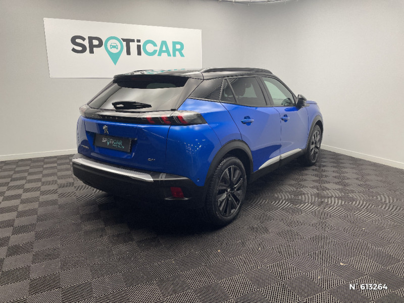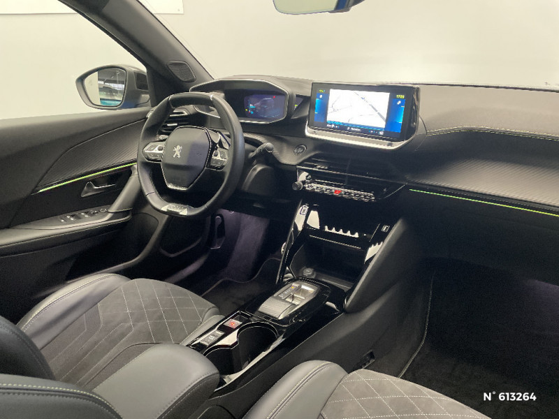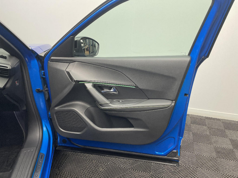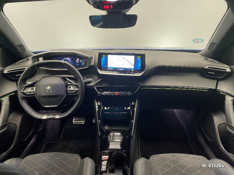 PEUGEOT Connect SOS & Assistance et Telemaintenance / Commutation automatique des feux de route / feux de croisement / Câble électrique mode 2, prises de charge T2/EF type Green'up / Air conditionné automatique monozone / 2 prises USB (Recharge type A) sur console haute pour passagers AR / Jantes alliage 18'' BUND diamantées bi-tons Noir Onyx et vernis brillant cabochons et vis Noir Onyx, inserts Gris Storm mat / Lécheurs de vitres latérales Noir Brillant / Katana Noir Mat avec insert Noir Brillant et marquage "e" / Calandre avec grille supérieure noir grainée et marquage horizontal couleur caisse, grille inférieur avec décor Métallure, enjoliveur supérieur couleur caisse / Plancher de coffre modulable 2 positions / Programme de Stabilité Electronique (ESC) avec ASR, ABS, REF, AFU, CDS et TSM / Accès et démarrage mains libres Proximity / Fonctions Mirror Screen (Apple Carplay/Android Auto) / 6 haut-parleurs (2 tweeters et 2 woofers à l'AV et 2 haut-parleurs à l'AR) / Aide graphique et sonore au stationnement AR / Feux diurnes à LED sous projecteurs / Protections latérales de portes Noir grainées avec inserts Métallure / Commandes d'ouverture intérieure de portes chromées / Passages de roues Noir Mat / Kit de dépannage pneumatique avec conditionnement rigide / Peugeot i-Cockpit 3D avec combiné tête haute numérique 3D / Projecteurs Peugeot Full LED Technology avec signature 3 griffes, indicateurs de direction à LED / Pack Safety Plus / Pack Drive Assist Plus / Eclairage polyambient 8 couleurs / Pare-brise teinté acoustique sérigraphié bi-couches / Habitacle et ciel de pavillon noir / Vitres latérales AR et lunette AR chauffante temporisée surteintées / Radio avec écran tactile capacitif 7" couleur, 1 prise USB (DATA type A) sur console AV / Rétroviseur intérieur photosensible frameless / Commande d'ouverture extérieure couleur caisse / Eclairage extérieur d'accueil et d'accompagnement / Fixations suivant norme ISOFIX et Top Tether avec étiquettes de localisation aux places latérales AR / Fixations suivant norme ISOFIX et Top Tether avec étiquette de localisation sur siège passager AV / Rétroviseurs extérieurs dégivrants avec réglage et rabattement électriques,éclairage de seuil / Enjoliveurs de custode Noir Brillant avec sérigraphie / Enjoliveurs de seuil de coffre Métallure / Navigation 3D connectée avec écran tactile 10" HD, 2 prises USB sur console AV (1 DATA Type A, de recharge type C) / Toit "Black Diamond" / Pédalier Sport aluminium / Chargeur embarqué 7,4 kW monophasé / Becquet AR Noir Brillant / Avertisseur de temps de conduite / Aide graphique et sonore au stationnement AV / Sellerie Alcantara Mistral/TEP, surpiqûres Vert Adamite / Lève-vitres AV et AR électriques séquentiels avec antipincement / Barres de toit longitudinales Noir Brillant / Console haute avec accoudoir intégré / Eclairage de coffre à ampoule / Eclairage intérieur à LED / Filets aumônières au dos des sièges AV / Surtapis AV et AR noirs avec surpiqûres Vert Adamite / Teinte métallisées Orange Fusion / Siège passager AV à réglage manuel en hauteur / 4 poignées de maintien (2 à l'AV et 2 à l'AR) / Coques de rétroviseurs extérieurs avec répétiteurs latéraux à LED / Frein de stationnement électrique avec aide au démarrage en pente et serrage automatique / Essuie-vitre AV à déclenchement automatique / Airbags frontaux auto-adaptatifs, latéraux AV (thorax et abdominaux), rideaux AV / Détection de sous-gonflage indirecte / Planche de bord slush surpiquée et panneaux de portes AV avec décors aspect carbone et éclairage polyambiant 8 couleurs / Panneaux de porte AV avec poignée moussée / Seuils de portes AV en inox avec marquage PEUGEOT Noir / Fonction DAB (Radio Numérique Terrestre) / Projecteurs antibrouillard à LED avec fonction cornering