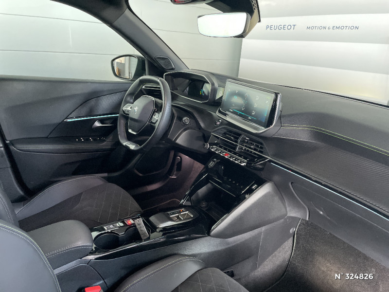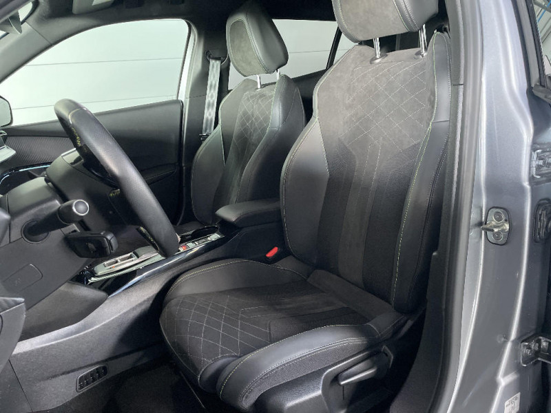 Peugeot i-Cockpit 3D avec combiné tête haute numérique 10'' / Peugeot i-Cockpit 3D avec combiné tête haute numérique 3D / Planche de bord slush surpiquée et panneaux de portes AV avec décors aspect carbone et éclairage polyambiant 8 couleurs / Plancher de coffre modulable 2 positions / Plancher de coffre standard + plancher de coffre modulable (réglable en hauteur) / Plancher de coffre 2 positions / Programme de Stabilité Electronique (ESC) avec ASR, ABS, REF, AFU, CDS et TSM / Projecteurs antibrouillard à LED avec fonction cornering / Projecteurs Peugeot Full LED Technology avec signature 3 griffes, indicateurs de direction à LED / Protections latérales de portes Noir grainées avec inserts Métallure / Radio avec écran tactile capacitif 7" couleur, 1 prise USB (DATA type A) sur console AV / Becquet AR Noir Brillant / Câble électrique mode 2, prises de charge T2/EF type Green'up / Calandre avec grille supérieure noir grainée et marquage horizontal couleur caisse, grille inférieur avec décor Métallure, enjoliveur supérieur couleur caisse / Calandre avec grille supérieure noir grainée et marquage horizontal couleur caisse, grille inférieur avec décor Métallure, enjoliveur supérieur couleur caisse, Lion dichroïque / Canule d'échappement non chromée / Ceintures AR centrale 3 points avec détection de non bouclage / Ceintures de sécurité AR latérales avec enrouleurs pyrotechniques, limiteurs d'effort et détection de non bouclage / Ceintures de sécurité AV conducteur et passager à enrouleurs pyrotechniques avec limiteurs d'effort et détection de non bouclage / Chargeur embarqué 7,4kW monophasé / Commande d'ouverture extérieure couleur caisse / Commandes d'ouverture intérieure de portes chromées / Commutation automatique des feux de route / feux de croisement / Console haute avec accoudoir intégré / Coques de rétroviseurs extérieurs avec répétiteurs latéraux à LED / Détection de sous-gonflage indirecte / Eclairage de coffre à ampoule / Eclairage extérieur d'accueil et d'accompagnement / Eclairage intérieur à LED / Eclairage intérieur à LED : plafonniers tactiles AV (1 lampe et 2 liseuses) et AR (2 liseuse), miroir de courtoisie dans pare-soleil éclairéà LED, éclairage LED cave à pieds / Eclairage intérieur à LED : plafonniers tactiles AV (1 lampe et 2 liseuses) et AR (2 liseuses), pares-soleils, cave à pieds / Eclairage polyambient 8 couleurs / Enjoliveurs de custode Noir Brillant avec sérigraphie / Enjoliveurs de seuil de coffre Métallure / Essuie-vitre AV à déclenchement automatique / Feux diurnes à LED sous projecteurs / Filets aumônières au dos des sièges AV / Fixations suivant norme ISOFIX et Top Tether avec étiquette de localisation sur siège passager AV / Fixations suivant norme ISOFIX et Top Tether avec étiquettes de localisation aux places latérales AR / Fonction Bluetooth et Mirror Screen (Apple CarPlay / Android Auto / MirrorLink) / Fonction DAB (Radio Numérique Terrestre) / Fonctions Mirror Screen (Apple Carplay/Android Auto) / Frein de stationnement électrique avec aide au démarrage en pente et serrage automatique / Habitacle et ciel de pavillon Noir / Hill Assist / Jantes alliage 18'' BUND diamantées bi-tons Noir Onyx et vernis brillant cabochons et vis Noir Onyx, inserts Gris Storm mat / Katana avec marquage "e" / Katana Noir Mat avec insert Noir Brillant et marquage "e" / Kit de dépannage pneumatique avec conditionnement rigide / Lécheurs de vitres latérales Noir Brillant / Lève-vitres AV/AR électriques et séquentiels avec antipincement / Pack Safety Plus / Panneaux de porte AV avec poignée moussée / Pare-brise teinté acoustique / Pare-brise teinté acoustique sérigraphié bi-couches / Passages de roues Noir Mat / Pédalier Sport aluminium / PEUGEOT Connect SOS & Assistance Appel d'urgence automatique ou manuel par push SOS, et mise en relation directe avec la plateforme d'assistance PEUGEOT (24/24 - 7/7), Détection du besoin d'une intervention technique ou d'une opération d'entretien périodique et transmission au réseau PEUGEOT pour prise de rendez-vous / Accès et démarrage mains libres Proximity / Aide graphique et sonore au stationnement AR / Aide graphique et sonore au stationnement AR / Aide graphique et sonore au stationnement AV / Aide graphique et sonore au stationnement AV / Aide graphique et sonore au stationnement AV / Air conditionné automatique monozone / Air conditionné automatique monozone / Système stop & go couplé avec l'assistance au positionnement sur la voie / Teinte métallisées Orange Fusion / Toit "Black Diamond" / Toit Black Diamond / Visio Park 1: Caméra de recul avec restitution sur l'écran tactile d'une vue AR et d'une vue de dessus de l'environnement AR du véhicule + Aide graphique et sonore au stationnement AR / Vitres latérales AR et lunette AR chauffante temporisée surteintées / Volant compact cuir fleur avec laà§age vert, Lion chromé et badge GT et commandes multimédia sur volant / Volant compact cuir fleur avec laà§age vert, Lion chromé et badge GT Line et commandes multimédia sur volant / 2 prises USB (Recharge type A) sur console haute pour passagers AR / 4 poignées de maintien (2 à l'AV et 2 à l'AR) / 6 HPs (2 tweeters et 2 woofers à l'AV et 2 HPs à l'AR) / Radio avec écran tactile capacitif 7" couleur, 2 prises USB console AV (1 Data Type A, 1 recharge type C) / Rétroviseur intérieur photosensible frameless / Rétroviseurs extérieurs dégivrants avec réglage et rabattement électriques, éclairage de seuil / Sellerie Alcantara Gris Gréval / TEP, surpiqûres Bleu Cyan et Vert Adamite / Sellerie Alcantara Mistral/TEP, surpiqûres Bleu Moyen et Vert Adamite / Sellerie Alcantara Mistral/TEP, surpiqûres Vert Adamite / Seuils de portes AV en inox avec marquage PEUGEOT Noir / Siège passager AV à réglage manuel en hauteur et lombaire pneumatique / Surtapis AV et AR noirs avec surpiqûres Vert Adamite / Navigation 3D c