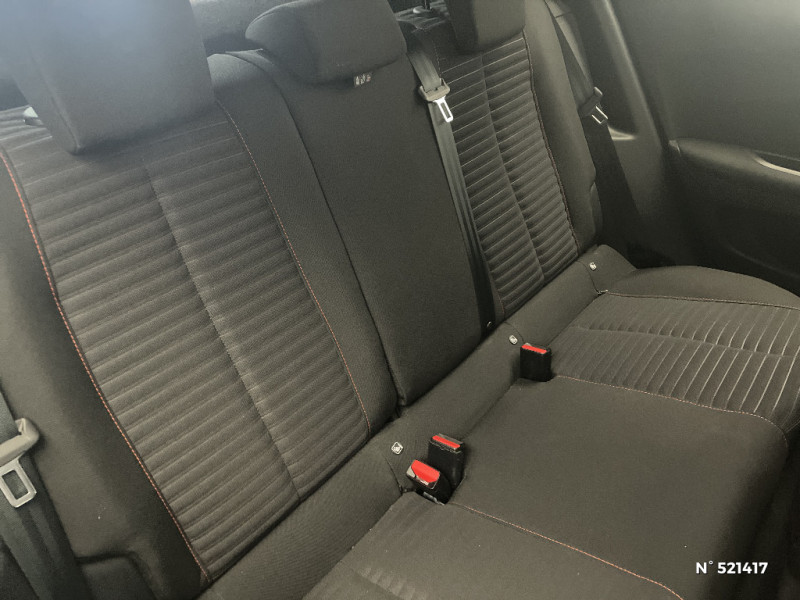 Sellerie Tri matière Tissu PNEUMA 3D, surpiqûre Orange Intense / Fonction DAB (Radio Numérique Terrestre) / Détection de sous-gonflage indirecte / Pack Safety / Démarrage mains libres avec 2 télécommandes 3 boutons mains libres / Commandes d'ouverture intérieure de portes chromées / Planche de bord slush et panneaux de portes AV avec décors aspect carbone et baguette Noir Brillant avec jonc chromé / Console haute avec accoudoir intégré / Eclairage de coffre à ampoule / Becquet AR couleur caisse / Calandre avec grille supérieure noir grainée et marquage horizontal couleur caisse, grille inférieur avec décor Métallure, enjoliveur supérieur couleur caisse, Lion dichroïque / Coques de rétroviseurs extérieurs avec répétiteurs latéraux à LED / Enjoliveurs de custode Noir Brillant / 6 haut-parleurs (2 tweeters et 2 woofers à l'AV et 2 haut-parleurs à l'AR) / Jantes alliage 16" ELBORN Gris Anthra, cabochons Gris Anthra et vis chromés / Ceintures AR centrale 3 points avec détection de non bouclage / Eclairage extérieur d'accueil et d'accompagnement / Fixations suivant norme ISOFIX et Top Tether avec étiquettes de localisation aux places latérales AR / Kit de dépannage pneumatique avec conditionnement rigide / Lève-vitres AV et AR électriques séquentiels avec antipincement / Avertisseur de temps de conduite / Projecteurs halogènes, indicateurs de direction à ampoules / Hill Assist / Aide graphique et sonore au stationnement AR / 2 prises USB (Recharge type A) sur console haute pour passagers AR / Essuie-vitre AV à déclenchement automatique / Programme de Stabilité Electronique (ESC) avec ASR, ABS, REF, AFU, CDS et TSM / PEUGEOT Connect SOS & Assistance Appel d'urgence automatique ou manuel par push SOS, et mise en relation directe avec la plateforme d'assistance PEUGEOT (24/24 - 7/7), Détection du besoin d'une intervention technique ou d'une opération d'entretien périodique et transmission au réseau PEUGEOT pour prise de rendez-vous / Fonctions Mirror Screen (Apple Carplay/Android Auto) / Katana Noir Mat avec insert Noir Brillant et marquage "e" / Radio avec écran tactile capacitif 7" couleur, 2 prises USB console AV (1 Data Type A, 1 recharge type C) / Ceintures de sécurité AR latérales avec enrouleurs pyrotechniques, limiteurs d'effort et détection de non bouclage / Chargeur embarqué 7,4 kW monophasé / Volant compact croute de cuir, Lion chromé et commandes multimédia sur volant / Eclairage intérieur à ampoules : plafonnier AV à 3 spots (1 lampe et 2 liseuses) / Ceintures de sécurité AV conducteur et passager à enrouleurs pyrotechniques avec limiteurs d'effort et détection de non bouclage / Eclairage intérieur à ampoules : plafonnier AV à 3 spots (1 lampe et 2 liseuses), miroir de courtoisie dans pare-soleil non éclairé / Habitacle et ciel de pavillon gris clair / Pack Safety Plus / Air conditionné automatique monozone / Coques de rétroviseurs couleur carrosserie / Pare-brise teinté acoustique / Enjoliveurs de seuil de coffre Métallure / Lécheurs de vitres latérales Noir Mat / Katana avec marquage "e" / Passages de roues Noir Mat / Protections latérales de portes Noir grainées / Frein de stationnement électrique avec aide au démarrage en pente et serrage automatique / Airbags frontaux auto-adaptatifs, latéraux AV (thorax et abdominaux), rideaux AV / Feux diurnes à LED sous projecteurs / Câble électrique mode 2, prises de charge T2/EF type Green'up / 4 poignées de maintien (2 à l'AV et 2 à l'AR) / Rétroviseur intérieur à réglage jour/nuit manuel / PEUGEOT Connect SOS & Assistance et Telemaintenance / Commande d'ouverture extérieure couleur caisse / Peugeot i-Cockpit avec combiné spécifique tête haute analogique et matrice 3,5'' couleur / Plancher de coffre standard / Jantes tôle 16" avec enjoliveurs NOLITA bi-tons Gris Eclat & Noir Onyx, cabochons Gris Eclat / Radio avec écran tactile capacitif 7" couleur, 2 prises USB console AV (1 Data Type A, 1 recharge type C), 2 prises USB console haute (2 recharge Type A) / Fonction Bluetooth et Mirror Screen (Apple CarPlay / Android Auto / MirrorLink) / Vitres latérales AR et lunette AR chauffante temporisée teintées / Airbags frontaux, latéraux AV (thorax et abdominaux), rideaux AV / Peugeot i-Cockpit avec combiné tête haute analogique et matrice TFT 3,5'' couleur / Teinte métallisées Orange Fusion