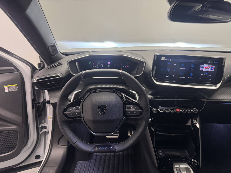 4 poignées de maintien rétractables (2 à l'AV et 2 à l'AR) / 6 Airbags (Frontaux auto-adaptatifs, latéraux AV et rideaux AV/AR) / 6 HPs (2 tweeters et 2 woofers à l'AV et 2 HPs à l'AR) / Accès et démarrage mains libres Proximity / Air conditionné automatique monozone / Barres de toit longitudinales Noir Brillant / Boîte de vitesse automatique, séquentielle (6 rapports) / Canule d'echappement double chromée / Commutation automatique des feux de route / feux de croisement / Console haute avec accoudoir & frein de stationnement électrique 1 prise USB type C (Charge) et 1 prise USB type A (Charge) pour passagers AR, Sélecteur de mode de conduite Normal/Eco/Sport / Eclairage intérieur: Miroir de courtoisie dans pare-soleil éclairéà LED, Eclairage à LED partie basse rangement AR et caves à pieds / Eclairage intérieur: Plafonnier AV A-DOME 3 LEDs (1 lampe, 2 liseuses), 2 liseuses AR A-DOME / Eclairage polyambiant 8 couleurs (Liés aux modes de conduite) / Eléments de style éxterieur : Katana noir mat avec insert noir brillant et monogramme GT sur motorisations thermiques, Protections latérales de portes Noir grainées avec inserts Gris Météor, Becquet AR Noir Perla Nera, Seuils de porte aluminium avec lettrage PEUGEOT Noir / Eléments de style intérieur: Planche de bord moussée avec double surpiqûres adamite/tramontane et baguette Noir brillant avec jonc chromé et jonc lumineux, Panneaux de portes AV avec décor Carbone et baguette Noir brillant et jonc lumineux (8 couleurs) et crosse de tirage TEP Isabella Mistral, Panneaux de portes AR avec grain Karsten avec baguette Noir brillant, Accoudoirs de porte AV/AR tissu/TEP Isabella avec surpiqûre Adamite / ESP Déconnectable avec aide au démarrage en pente et détection de sous gonflage indirecte / Habitacle et ciel de pavillon Noir / Jantes alliage 17" diamantées KARAKOY bi-tons Noir Onyx et vernis brillant / Lève-vitres AV/AR électriques et séquentiels avec antipincement / Pack Safety Plus Pack Safety: - Régulateur / Limiteur de vitesse - Freinage automatique d'urgence avec alerte risque de collision, détection élargie (3 caméras haut de pare-brise) et protection des usagers de la route vulnérables (piétons, cyclistes, ...) - Alerte active de franchissement involontaire de ligne et bas-côté - Reconnaissance étendue des panneaux de signalisation et préconisation de vitesse - Alerte attention conducteur - Freinage d'urgence automatique de jour et de nuit (3 caméras & radar) / Pack Visibilité - Allumage automatique des feux de croisement - Essuie vitre AV à déclenchement automatique - Eclairage extérieur d'accueil et d'accompagnement / Pare-brise teinté acoustique sérigraphié bi-couches / Pédalier Sport aluminium / Peugeot Connect SOS & Assistance et Teleservices SOS & Assistance : Appel d'urgence automatique ou manuel par push SOS, et mise en relation directe avec la plateforme d'assistance PEUGEOT (24h/24 7j/7) , Teleservices : Détection du besoin d'une intervention technique ou d'une opération d'entretien périodique et transmission au réseau PEUGEOT pour prise de rendez vous / Peugeot i-Cockpit 3D avec combiné tête haute numérique 10" numérique / Peugeot i-Connect: Radio DAB avec écran tactile couleur personnalisable 10" HD, Bluetooth - Mirror Screen sans fil (Apple CarPlay/Android Auto) - Wifi - 1 prise USB type C ( Data+charge), 1 prise USB type C (Charge) sur console AV / Plancher de coffre modulable 2 positions / Projecteurs Peugeot upper Full LED Technology avec feux diurnes à LED 3 griffes / Rétroviseur intérieur électrochrome / Rétroviseurs extérieurs dégivrants avec réglage et rabattement électriques / Sellerie tissu BELOMKA, accompagnement TEP Isabella, trimatière Uni Capy et surpiqûres Vert Adamite / Siège passager AV avec réglage manuel en hauteur / Surtapis AV/AR / Télécommande 3 boutons + clé standard / Toit Black Diamond / Visiopark 1: caméra de recul HD & aide au stationnement AV/AR, graphique et sonore / Vitres latérales AR et lunette AR chauffante temporisée surteintées / Volant compact cuir fleur avec commandes multimédia intégrées