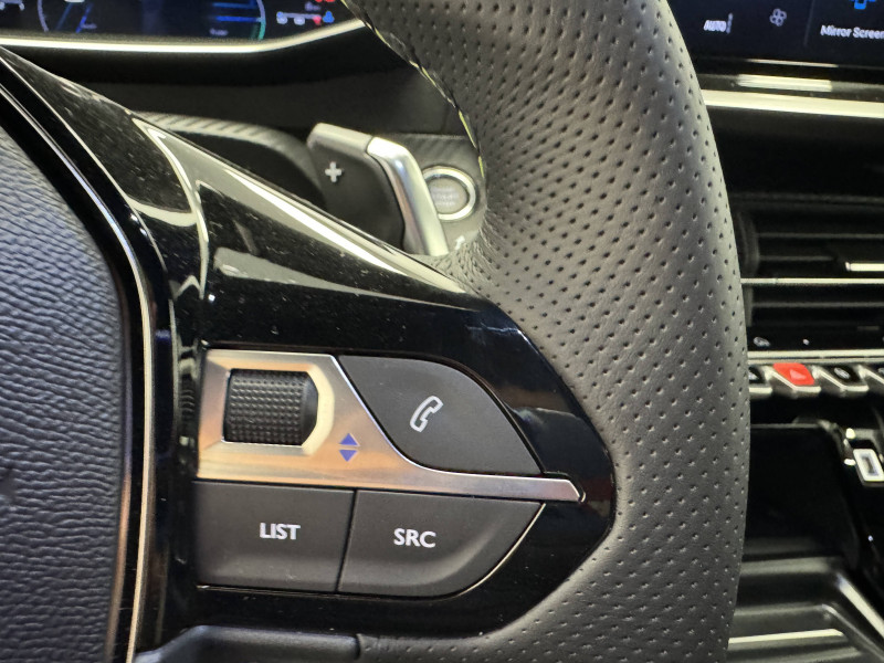 4 poignées de maintien rétractables (2 à l'AV et 2 à l'AR) / 6 Airbags (Frontaux auto-adaptatifs, latéraux AV et rideaux AV/AR) / 6 HPs (2 tweeters et 2 woofers à l'AV et 2 HPs à l'AR) / Accès et démarrage mains libres Proximity / Air conditionné automatique monozone / Barres de toit longitudinales Noir Brillant / Boîte de vitesse automatique, séquentielle (6 rapports) / Canule d'echappement double chromée / Commutation automatique des feux de route / feux de croisement / Console haute avec accoudoir & frein de stationnement électrique 1 prise USB type C (Charge) et 1 prise USB type A (Charge) pour passagers AR, Sélecteur de mode de conduite Normal/Eco/Sport / Eclairage intérieur: Miroir de courtoisie dans pare-soleil éclairéà LED, Eclairage à LED partie basse rangement AR et caves à pieds / Eclairage intérieur: Plafonnier AV A-DOME 3 LEDs (1 lampe, 2 liseuses), 2 liseuses AR LED i-DOME / Eclairage polyambiant 8 couleurs (Liés aux modes de conduite) / Eléments de style éxterieur : Lécheurs de vitres Noir Brillant, Katana noir mat avec insert noir brillant et monogramme GT sur motorisations thermiques, Protections latérales de portes Noir grainées avec inserts Gris Météor, Becquet AR Noir Perla Nera, Seuils de porte aluminium avec lettrage PEUGEOT Noir / Eléments de style intérieur: Planche de bord moussée avec double surpiqûres adamite/tramontane et baguette Noir brillant avec jonc chromé et jonc lumineux, Panneaux de portes AV avec décor Carbone et baguette Noir brillant et jonc lumineux (8 couleurs) et crosse de tirage TEP Isabella Mistral, Panneaux de portes AR avec grain Karsten avec baguette Noir brillant, Accoudoirs de porte AV/AR tissu/TEP Isabella avec surpiqûre Adamite / ESP Déconnectable avec aide au démarrage en pente et détection de sous gonflage indirecte / Habitacle et ciel de pavillon Noir / Jantes alliage 17" diamantées KARAKOY bi-tons Noir Onyx et vernis brillant / Lève-vitres AV/AR électriques et séquentiels avec antipincement / Pack Safety Plus Pack Safety: - Régulateur / Limiteur de vitesse - Freinage automatique d'urgence avec alerte risque de collision, détection élargie (3 caméras haut de pare-brise) et protection des usagers de la route vulnérables (piétons, cyclistes, ...) - Alerte active de franchissement involontaire de ligne et bas-côté - Reconnaissance étendue des panneaux de signalisation et préconisation de vitesse - Alerte attention conducteur - Freinage d'urgence automatique de jour et de nuit (3 caméras & radar) / Pack Visibilité - Allumage automatique des feux de croisement - Essuie vitre AV à déclenchement automatique - Eclairage extérieur d'accueil et d'accompagnement / Pare-brise teinté acoustique sérigraphié bi-couches / Pédalier Sport aluminium / Peugeot Connect SOS & Assistance et Teleservices SOS & Assistance : Appel d'urgence automatique ou manuel par push SOS, et mise en relation directe avec la plateforme d'assistance PEUGEOT (24h/24 7j/7) , Teleservices : Détection du besoin d'une intervention technique ou d'une opération d'entretien périodique et transmission au réseau PEUGEOT pour prise de rendez vous / Peugeot i-Cockpit 3D avec combiné tête haute numérique 10" numérique / Peugeot i-Connect: Radio DAB avec écran tactile couleur personnalisable 10" HD, Bluetooth - Mirror Screen sans fil (Apple CarPlay/Android Auto) - Wifi - 1 prise USB type C ( Data+charge), 1 prise USB type C (Charge) sur console AV / Plancher de coffre modulable 2 positions / Projecteurs Peugeot upper Full LED Technology avec feux diurnes à LED 3 griffes / Rétroviseur intérieur électrochrome / Rétroviseurs extérieurs dégivrants avec réglage et rabattement électriques / Sellerie tissu BELOMKA, accompagnement TEP Isabella, trimatière Uni Capy et surpiqûres Vert Adamite / Siège passager AV avec réglage manuel en hauteur / Surtapis AV/AR / Télécommande 3 boutons + clé standard / Toit Black Diamond / Visiopark 1: caméra de recul HD & aide au stationnement AV/AR, graphique et sonore / Vitres latérales AR et lunette AR chauffante temporisée surteintées / Volant compact cuir fleur avec commandes multimédia intégrées