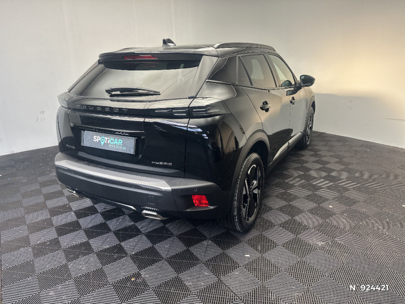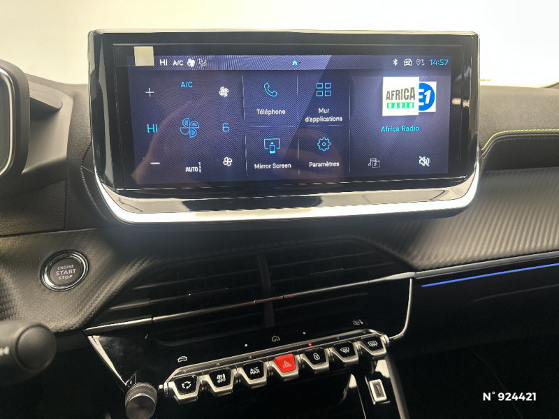 Accès et démarrage mains libres Proximity / Habitacle et ciel de pavillon noir / Télécommande 3 boutons + clé standard / Eclairage polyambient 8 couleurs / Eléments de style éxterieur Lécheurs de vitres Noir Brillant, Katana noir mat avec insert noir brillant et monogramme GT sur motorisations thermiques, Protections latérales de portes Noir grainées avec inserts Gris Météor, Becquet AR Noir Perla Nera, Seuils de porte aluminium avec lettrage PEUGEOT Noir / Commutation automatique des feux de route / feux de croisement / Barres de toit longitudinales Noir Brillant / Pédalier Sport aluminium / 4 poignées de maintien (2 à l'AV et 2 à l'AR) / 4 poignées de maintien rétractables (2 à l'AV et 2 à l'AR) / Eclairage polyambiant 8 couleurs (Liés aux modes de conduite) / Siège passager AV avec réglage manuel en hauteur / Canule d'echappement double chromée / 6 airbags (Frontaux adaptatifs, latéraux AV, rideaux AV et AR) / Air conditionné automatique monozone / Pare-brise teinté acoustique sérigraphié bi-couches / Toit Black Diamond / Visiopark 1: caméra de recul HD & aide au stationnement AV et AR, graphique et sonore / 6 haut-parleurs (2 tweeters et 2 woofers à l'AV et 2 haut-parleurs à l'AR) / PEUGEOT Connect SOS & Assistance et Teleservices SOS & Assistance : Appel d'urgence automatique ou manuel par push SOS, et mise en relation directe avec la plateforme d'assistance PEUGEOT (24h/24 7j/7) Teleservices : Détection du besoin d'une intervention technique ou d'une opération d'entretien périodique et transmission au réseau PEUGEOT pour prise de rendez vous / Lève-vitres AV et AR électriques séquentiels avec antipincement / Console haute avec accoudoir & frein de stationnement électrique 1 prise USB type C (Charge) et 1 prise USB type A (Charge) pour passagers AR, Sélecteur de mode de conduite Normal/Eco/Sport / Peugeot i-Cockpit 3D avec combiné tête haute numérique 3D 10'' / 6 Airbags - Frontaux auto-adaptatifs, latéraux AV et rideaux AV et AR / Pack Visibilité Allumage automatique des feux de croisement; Essuie vitre AV à déclenchement automatique; Eclairage extérieur d'accueil et d'accompagnement / Rétroviseur intérieur électrochrome / Pack Safety Plus Régulateur / Limiteur de vitesse, Freinage d'urgence automatique avec alerte risque de collision, Alerte active de franchissement involontaire de ligne et bas côté, Reconnaissance étendue des panneaux de signalisation et préconisation de vitesse, Alerte attention conducteur. Freinage d'urgence automatique de jour et de nuit (caméra et radar) / Vitres latérales AR et lunette AR chauffante temporisée surteintées / Rétroviseurs extérieurs dégivrants avec réglage et rabattement électriques / Lève-vitres électriques AV et AR et séquentiels avec anti-pincement / Pack Safety Plus Pack Safety: - Régulateur / Limiteur de vitesse - Freinage automatique d'urgence avec alerte risque de collision, détection élargie (3 caméras haut de pare-brise) et protection des usagers de la route vulnérables (piétons, cyclistes, ...) - Alerte active de franchissement involontaire de ligne et bas-côté - Reconnaissance étendue des panneaux de signalisation et préconisation de vitesse - Alerte attention conducteur - Freinage d'urgence automatique de jour et de nuit (3 caméras & radar) / Eléments de style intérieure Planche de bord moussée avec double surpiqûres adamite/tramontane et baguette Noir brillante avec jonc chromé et jonc lumineux, Panneaux de portes AV avec décor Carbone et baguette Noir brillante et jonc lumineux (8 couleurs) et crosse de tirage TEP Isabella Mistral, Panneaux de portes AR avec grain Karsten avec baguette Noir brillant, Accoudoirs de porte avant et arrière tissu/TEP Isabella avec surpiqûre Adamite / Plancher de coffre modulable 2 positions / Surtapis AV et AR / Peugeot i-Cockpit 3D avec combiné tête haute numérique 10" numérique / Peugeot i-Connect Radio DAB avec écran tactile couleur personnalisable 10" HD,Bluetooth, Mirror Screen sans fil (Apple CarPlay/Android Auto), Wifi, 1 prise USB type C ( Data+charge ) et 1 prise USB type C (Charge) sur console AV / Projecteurs Peugeot upper Full LED Technology avec feux diurnes à LED 3 griffes / Jantes alliage 17'' diamantées KARAKOY bi-tons Noir Onyx et vernis brillant / ESP Déconnectable avec aide au démarrage en pente et détection de sous gonflage indirecte / Eclairage intérieur Plafonnier AV A-DOME 3 LEDs (1 lampe, 2 liseuses) 2 liseuses AR LED i DOME / Boîte de vitesse automatique, séquentielle (6 rapports) / Volant compact cuir fleur avec commandes multimédia intégrées / Eclairage intérieur Miroir de courtoisie dans pare soleil éclairéà LED, Eclairage à LED partie basse rangement AR et caves à pieds / Sellerie tissu BELOMKA, accompagnement TEP Isabella, trimatière Uni Capy et surpiqûres Vert Adamit