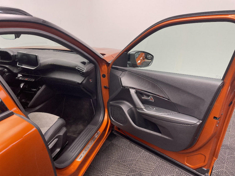 Surtapis AV et AR noirs avec surpiqûres Vert Adamite / Teinte métallisée Orange Fusion / Teinte métallisées Orange Fusion / Toit Black Diamond / Toit Black Diamond / Visio Park 1 + aide graphique et sonore au stationnement AV / Vitres latérales AR et lunette AR chauffante temporisée surteintées / Volant compact cuir fleur avec laà§age vert, Lion chromé et badge GT et commandes multimédia sur volant / 4 poignées de maintien (2 à l'AV et 2 à l'AR) / 6 HPs (2 tweeters et 2 woofers à l'AV et 2 HPs à l'AR) / Airbags- frontaux auto-adaptatifs, latéraux AV (thorax et abdominaux), rideaux AV / Airbags frontaux, latéraux AV (thorax et abdominaux), rideaux AV / Avertisseur de temps de conduite / Barres de toit longitudinales Noir Brillant / Becquet AR Noir Brillant / Câble électrique mode 2, prises de charge T2/EF type Green'up / Calandre avec grille supérieure noir grainée et marquage horizontal couleur caisse, grille inférieur avec décor Métallure, enjoliveur supérieur couleur caisse, Lion dichroïque / Ceintures AR centrale 3 points avec détection de non bouclage / Ceintures de sécurité AR latérales avec enrouleurs pyrotechniques, limiteurs d'effort et détection de non bouclage / Ceintures de sécurité AV conducteur et passager à enrouleurs pyrotechniques avec limiteurs d'effort et détection de non bouclage / Chargeur embarqué 7,4kW monophasé / Commande d'ouverture extérieure couleur caisse / Commandes d'ouverture intérieure de portes chromées / Commutation automatique des feux de route / feux de croisement / Console haute avec accoudoir intégré / Coques de rétroviseurs extérieurs avec répétiteurs latéraux à LED / Détection de sous-gonflage indirecte / Eclairage de coffre à ampoule / Eclairage extérieur d'accueil et d'accompagnement / Accès et démarrage mains libres Proximity / Air conditionné automatique monozone / Eclairage intérieur à LED : plafonniers tactiles AV (1 lampe et 2 liseuses) et AR (2 liseuse), miroir de courtoisie dans pare-soleil, cave à pieds / Eclairage polyambient 8 couleurs / Enjoliveurs de custode Noir Brillant avec sérigraphie / Enjoliveurs de seuil de coffre Métallure / Essuie-vitre AV à déclenchement automatique / Essuie-vitre AV à déclenchement automatique / Feux diurnes à LED sous projecteurs / Filets aumônières au dos des sièges AV / Peugeot i-Cockpit 3D avec combiné tête haute numérique 10'' / Planche de bord slush surpiquée et panneaux de portes AV avec décors aspect carbone et éclairage polyambiant 8 couleurs / Plancher de coffre standard + plancher de coffre modulable (réglable en hauteur) / Frein de stationnement électrique avec aide au démarrage en pente et serrage automatique / Habitacle et ciel de pavillon Noir / Fixations suivant norme ISOFIX et Top Tether avec étiquette de localisation sur siège passager AV / Fixations suivant norme ISOFIX et Top Tether avec étiquettes de localisation aux places latérales AR / Fonction Bluetooth et Mirror Screen (Apple CarPlay / Android Auto / MirrorLink) / Fonction DAB (Radio Numérique Terrestre) / Fonction DAB (Radio Numérique Terrestre) / Jantes alliage 18'' BUND diamantées bi-tons Noir Onyx et vernis brillant cabochons et vis Noir Onyx, inserts Gris Storm mat / Katana avec marquage "e" / Kit de dépannage pneumatique avec conditionnement rigide / Lécheurs de vitres latérales Noir Brillant / Lève-vitres AV/AR électriques et séquentiels avec antipincement / Navigation 3D connectée avec reconnaissance vocale, écran tactile capacitif 10" HD / Navigation 3D connectée avec reconnaissance vocale, écran tactile capacitif 10" HD 2 prises USB sur console avant (1 DATA Type A et 1 de recharge type C),2 prises USB arrière sur la console haute (recharge), Fonction DAB (Radio Numérique Terrestre),Cartographie Europe,Services de navigation connectée TomTom® (TomTom® Traffic, prix carburant, parkings, météo,recherche locale), abonnement 3 ans inclus, Connexion automatique et permanente via carte SIM intégrée au véhicule / Pack Drive Assist Plus / Panneaux de porte AV avec poignée moussée / Pare-brise teinté acoustique sérigraphié bi-couches / Passages de roues Noir Mat / Pédalier Sport aluminium / PEUGEOT Connect SOS & Assistance Appel d'urgence automatique ou manuel par push SOS, et mise en relation directe avec la plateforme d'assistance PEUGEOT (24/24 - 7/7), Détection du besoin d'une intervention technique ou d'une opération d'entretien périodique et transmission au réseau PEUGEOT pour prise de rendez-vous / PEUGEOT Connect SOS & Assistance et Teleservices / Programme de Stabilité Electronique (ESC) avec ASR, ABS, REF, AFU, CDS et TSM / Projecteurs antibrouillard à LED avec fonction cornering / Projecteurs Peugeot Full LED Technology avec signature 3 griffes, indicateurs de direction à LED / Protections latérales de portes Noir grainées avec inserts Métallure / Rétroviseur intérieur photosensible et rétroviseurs extérieurs dégivrants avec réglage et rabattement électriques / Hill Assist / Jantes alliage 18'' BUND diamantées bi-tons Noir Onyx et vernis brillant / Rétroviseur intérieur photosensible frameless / Sellerie Alcantara Gris Gréval / TEP, surpiqûres Bleu Cyan et Vert Adamite / Sellerie Alcantara Gris Gréval / TEP, surpiqûres Bleu Cyan et Vert Adamite / Seuils de portes AV en inox avec marquage PEUGEOT Noir / Siège passager AV à réglage manuel en hauteur et lombaire pneumatique