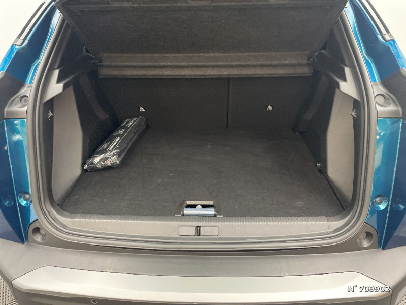 Siège passager AV avec réglage manuel en hauteur / Eclairage intérieur: Plafonnier AV A-DOME 3 LEDs (1 lampe, 2 liseuses), 2 liseuses AR A-DOME / 6 HPs (2 tweeters et 2 woofers à l'AV et 2 HPs à l'AR) / Vitres latérales AR et lunette AR chauffante temporisée surteintées / Air conditionné automatique monozone / Rétroviseurs extérieurs dégivrants avec réglage et rabattement électriques / Peugeot Connect SOS & Assistance et Teleservices SOS & Assistance : Appel d'urgence automatique ou manuel par push SOS, et mise en relation directe avec la plateforme d'assistance PEUGEOT (24h/24 7j/7) , Teleservices : Détection du besoin d'une intervention technique ou d'une opération d'entretien périodique et transmission au réseau PEUGEOT pour prise de rendez vous / Sellerie tissu CASUAL LOMSA embossé, accompagnement TEP Isabella, trimatière LOMSA et surpiqûres Quartz / Jantes alliage 17" diamantées KARAKOY bi-tons Noir Onyx et vernis brillant / Pack Visibilité - Allumage automatique des feux de croisement - Essuie vitre AV à déclenchement automatique - Eclairage extérieur d'accueil et d'accompagnement / Plancher de coffre standard / ESP Déconnectable avec aide au démarrage en pente et détection de sous gonflage indirecte / Volant compact en croûte de cuir avec commandes multimédia intégrées / Console haute avec accoudoir & frein de stationnement électrique 1 prise USB type C (Charge) et 1 prise USB type A (Charge) pour passagers AR, Sélecteur de mode de conduite Normal/Eco/Sport / Aide au stationnement AV/AR, graphique et sonore / Eléments de style éxterieur: Calandre haut de gamme Noir avec marquage vertical couleur caisse, larmes Dark Chrome, Décor de grille inférieure Gris Météor, Katana noir mat avec insert noir brillant / Eléments de style intérieur: Panneaux de portes AV avec décor Carbone et baguette Noir brillant avec tampographie Quartz, Accoudoirs de porte AV/AR tissu/TEP Isabella avec surpiqûre Quartz / Peugeot i-Cockpit avec combiné tête haute 10" numérique / Peugeot i-Connect: Radio DAB avec écran tactile couleur personnalisable 10" HD, Bluetooth, Mirror Screen sans fil (Apple CarPlay/Android Auto), Wifi, 1 prise USB type C ( Data+charge) et 1 prise USB type C (Charge) sur console AV / Projecteurs Peugeot LED Technology avec feux diurnes à LED 3 griffes / Rétroviseur intérieur électrochrome / Canule d'echappement double chromée / Pare-brise teinté acoustique / Habitacle et ciel de pavillon Noir / Télécommande 3 boutons + clé standard / Boîte de vitesse automatique, séquentielle (6 rapports) / Lève-vitres AV/AR électriques et séquentiels avec antipincement / 4 poignées de maintien rétractables (2 à l'AV et 2 à l'AR) / 6 Airbags (Frontaux auto-adaptatifs, latéraux AV et rideaux AV/AR) / Pack Safety Plus Pack Safety: - Régulateur / Limiteur de vitesse - Freinage automatique d'urgence avec alerte risque de collision, détection élargie (3 caméras haut de pare-brise) et protection des usagers de la route vulnérables (piétons, cyclistes, ...) - Alerte active de franchissement involontaire de ligne et bas-côté - Reconnaissance étendue des panneaux de signalisation et préconisation de vitesse - Alerte attention conducteur Freinage d'urgence automatique de jour et de nuit (3 caméras & radar)