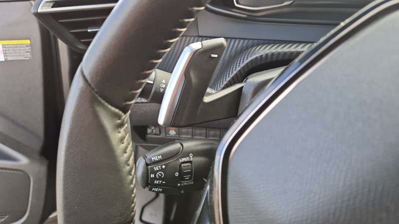 Aide graphique et sonore au stationnement AR / Air conditionné automatique monozone / Coques de rétroviseurs extérieurs avec répétiteurs latéraux à LED / Eclairage intérieur à LED / Essuie-vitre AV à déclenchement automatique / Feux diurnes à LED sous projecteurs / Frein de stationnement électrique avec aide au démarrage en pente et serrage automatique / Jantes alliage 17'' SALAMANCA diamantées bi-tons Noir Onyx et vernis brillant, cabochons et vis Noir Onyx / Pack Safety / Projecteurs LED Technology, avec indicateurs de direction à ampoules / 2 prises USB (Recharge type A) sur console haute pour passagers AR / 4 poignées de maintien (2 à l'AV et 2 à l'AR) / 6 airbags - frontaux auto-adaptatifs, latéraux AV (thorax et abdominaux), rideaux AV / 6 HPs (2 tweeters et 2 woofers à l'AV et 2 HPs à l'AR) / Avertisseur de temps de conduite / Barres de toit longitudinales Noir Brillant / Becquet AR couleur caisse / Calandre avec grille supérieure noir grainée et marquage horizontal Chrome Brillant, grille inférieure avec décor Métallure, enjoliveur supérieur Noir Brillant / Canule d'echappement chromée / Commande d'ouverture extérieure couleur caisse / Commandes d'ouverture intérieure de portes chromées / Commandes multimédia intégrées au volant / Console haute avec accoudoir intégré / Détection de sous-gonflage indirecte / Eclairage de coffre / Eclairage extérieur d'accueil et d'accompagnement / Enjoliveurs de custode Noir Brillant / Enjoliveurs de seuil de coffre Métallure / Filets aumônières au dos des sièges AV / Fixations suivant norme ISOFIX et Top Tether avec étiquettes de localisation aux places latérales AR / Fonction DAB (Radio Numérique Terrestre) / Fonctions Mirror Screen (Apple Carplay/Android Auto) / Habitacle et ciel de pavillon Noir / Katana Noir Mat avec insert Noir Brillant / Kit de dépannage de pneumatique compresseur 12 V avec cartouche de produit de colmatage / Lève-vitres AV/AR électriques et séquentiels avec antipincement / Lécheurs de vitres latérales Noir Mat / Pare-brise teinté acoustique / Passages de roues Noir Mat / Peugeot i-Cockpit avec combiné tête haute analogique TFT / Planche de bord slush et panneaux de portes AV avec décors aspect carbone et baguette Noir Brillant avec jonc chromé / Plancher de coffre modulable 2 positions / Programme de Stabilité Electronique (ESC) avec ASR, ABS, REF, AFU, CDS et TSM / Protections latérales de portes Noir grainées avec inserts Métallure / Radio avec écran tactile capacitif 7" couleur, 2 prises USB console AV (1 Data Type A, 1 recharge type C) / Rétroviseur intérieur photosensible / Rétroviseurs extérieurs dégivrants avec réglage et rabattement électriques / Seuils de portes AV en inox avec marquage PEUGEOT Noir / Siège passager AV à réglage manuel en hauteur et lombaire pneumatique / Système stop & go couplé avec l'assistance au positionnement sur la voie / Télécommande 3 boutons + clé standard / Vitres latérales AR et lunette AR chauffante temporisée surteintées