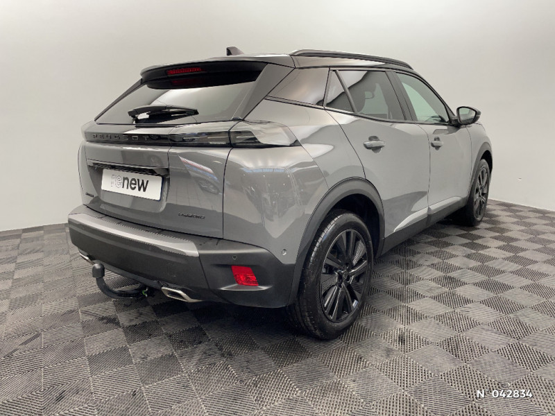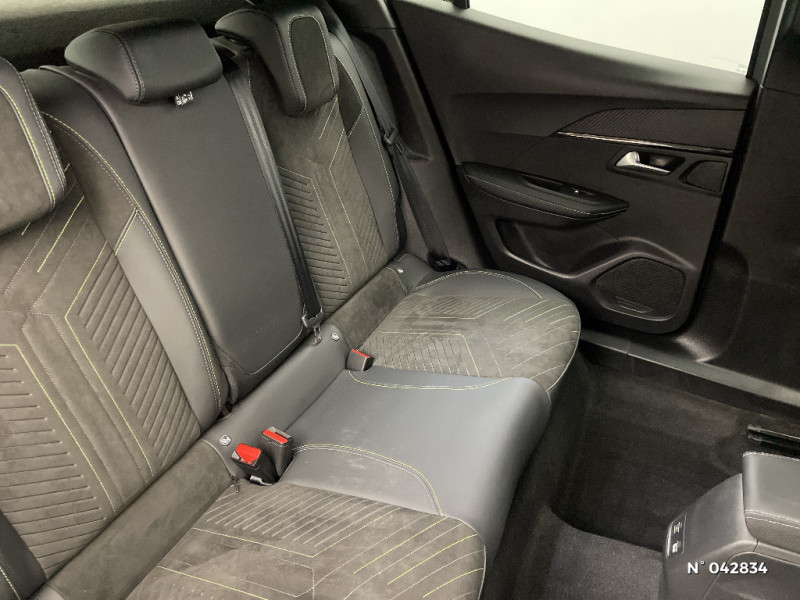 Pack Safety Plus Régulateur / Limiteur de vitesse, Freinage d'urgence automatique avec alerte risque de collision, Alerte active de franchissement involontaire de ligne et bas--côté,côté, Reconnaissance étendue des panneaux de signalisation et préconisation de vitesse, Alerte attention conducteur, Freinage d'urgence automatique de jour et de nuit (caméra et radar) / Visiopark 1: caméra de recul HD & aide au stationnement AV/AR, graphique et sonore / 4 poignées de maintien (2 à l'AV et 2 à l'AR) / Siège passager AV avec réglage manuel en hauteur / Pare-brise teinté acoustique sérigraphié bi-couches / Peugeot i-Cockpit 3D avec combiné tête haute numérique 3D 10'' / 6 haut-parleurs (2 tweeters et 2 woofers à l'AV et 2 haut-parleurs à l'AR) / Vitres latérales AR et lunette AR chauffante temporisée surteintées / Toit Black Diamond / Eléments de style éxterieur : Lécheurs de vitres Noir Brillant, Katana noir mat avec insert noir brillant et monogramme GT sur motorisations thermiques, Protections latérales de portes Noir grainées avec inserts Gris Météor, Becquet AR Noir Perla Nera, Seuils de porte aluminium avec lettrage PEUGEOT Noir / Rétroviseur intérieur électrochrome / Canule d'echappement double chromée / Projecteurs Peugeot upper Full LED Technology avec feux diurnes à LED 3 griffes / Visiopark 1: caméra de recul HD & aide au stationnement AR, graphique et sonore / Eléments de style éxterieur Lécheurs de vitres Noir Brillant, Katana noir mat avec insert noir brillant et monogramme GT sur motorisations thermiques, Protections latérales de portes Noir grainées avec inserts Gris Météor, Enjoliveurs de custode avec sérigraphie, Becquet AR Noir Perla Nera, Seuils de porte aluminium avec lettrage PEUGEOT Noir / Console haute avec accoudoir & frein de stationnement électrique 1 prise USB type C (Charge) et 1 prise USB type A (Charge) pour passagers AR, Sélecteur de mode de conduite Normal/Eco/Sport / Peugeot i-Connect Radio DAB avec écran tactile couleur personnalisable 10" HD,Bluetooth, Mirror Screen sans fil (Apple CarPlay/Android Auto), Wifi, 1 prise USB type C ( Data+charge ) et 1 prise USB type C (Charge) sur console AV / Eléments de style intérieure Planche de bord moussée avec double surpiqures adamite/tramontane et baguette Noir brillante avec jonc chromé et jonc lumineux, Panneaux de portes AV avec décor Carbone et baguette Noir brillante et jonc lumineux (8 couleurs) et crosse de tirage TEP Isabella Mistral, Panneaux de portes AR avec grain Karsten avec baguette Noir brillant, Accoudoirs de porte AV et AR tissu/TEP Isabella avec surpiqure Adamite / Volant compact cuir fleur avec commandes multimédia intégrées / Eclairage intérieur Miroir de courtoisie dans pare soleil éclairéà LED, Eclairage à LED partie basse rangement AR et caves à pieds / Eclairage intérieur Plafonnier AV A-DOME 3 LEDs (1 lampe, 2 liseuses) 2 liseuses AR LED i DOME / Plancher de coffre modulable 2 positions / Pack Safety Plus Régulateur / Limiteur de vitesse, Freinage d'urgence automatique avec alerte risque de collision, Alerte active de franchissement involontaire de ligne et bas côté, Reconnaissance étendue des panneaux de signalisation et préconisation de vitesse, Alerte attention conducteur. Freinage d'urgence automatique de jour et de nuit (caméra et radar) / Pack Visibilité Allumage automatique des feux de croisement; Essuie vitre AV à déclenchement automatique; Eclairage extérieur d'accueil et d'accompagnement / Recharge smartphone sans fil (15W) / Air conditionné automatique monozone / Rétroviseurs extérieurs dégivrants avec réglage et rabattement électriques,éclairage de seuil / Rétroviseurs extérieurs dégivrants avec réglage et rabattement électriques / Lève-vitres électriques AV et AR et séquentiels avec anti-pincement / Kit de dépannage de pneumatique compresseur 12 V avec cartouche de produit de colmatage / Barres de toit longitudinales Noir Brillant / Rétroviseur intérieur électrochrome sans cadre / 6 airbags (Frontaux adaptatifs, latéraux AV, rideaux AV et AR) / PEUGEOT Connect SOS & Assistance et Teleservices SOS & Assistance : Appel d'urgence automatique ou manuel par push SOS, et mise en relation directe avec la plateforme d'assistance PEUGEOT (24h/24 7j/7) , Teleservices : Détection du besoin d'une intervention technique ou d'une opération d'entretien périodique et transmission au réseau PEUGEOT pour prise de rendez vous / Sellerie tissu BELOMKA, accompagnement TEP Isabella, trimatière Uni Capy et surpiqures Vert Adamite / Jantes alliage 17'' diamantées KARAKOY bi-tons Noir Onyx et vernis brillant / ESP Déconnectable avec aide au démarrage en pente et détection de sous gonflage indirecte / Pédalier Sport aluminium / Surtapis AV et AR / Habitacle et ciel de pavillon noir / Commutation automatique des feux de route / feux de croisement / Télécommande 3 boutons + clé standard / Accès et démarrage mains libres Proximity / Eclairage polyambient 8 couleurs