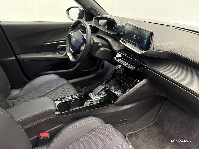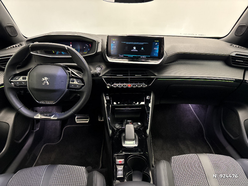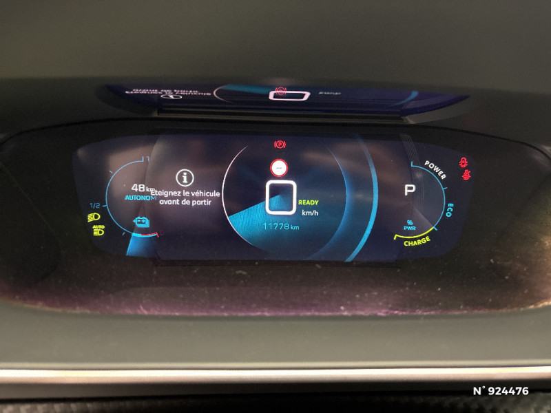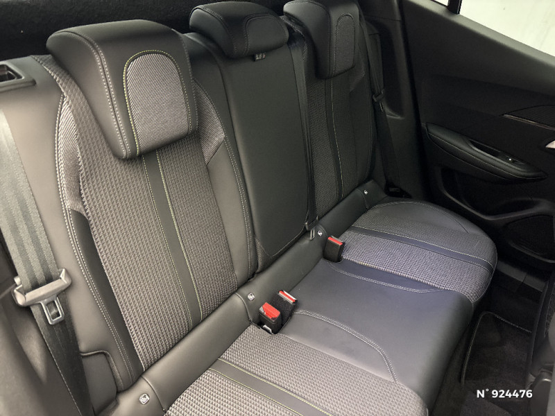 Fonction DAB (Radio Numérique Terrestre) / Rétroviseur intérieur photosensible frameless / Air conditionné automatique monozone / Peugeot i-Cockpit 3D avec combiné tête haute numérique 3D / Programme de Stabilité Electronique (ESC) avec ASR, ABS, REF, AFU, CDS et TSM / Surtapis AV et AR noirs avec surpiqûres Vert Adamite / Rétroviseurs extérieurs dégivrants avec réglage et rabattement électriques,éclairage de seuil / Eclairage polyambient 8 couleurs / Ceintures de sécurité AV conducteur et passager à enrouleurs pyrotechniques avec limiteurs d'effort et détection de non bouclage / Canule d'échappement non chromée / Détection de sous-gonflage indirecte / Plancher de coffre 2 positions / 4 poignées de maintien (2 à l'AV et 2 à l'AR) / Jantes alliage 18'' BUND diamantées bi-tons Noir Onyx et vernis brillant cabochons et vis Noir Onyx, inserts Gris Storm mat / Commande d'ouverture extérieure couleur caisse / Chargeur embarqué 7,4 kW monophasé / Plancher de coffre modulable 2 positions / Calandre avec grille supérieure noir grainée et marquage horizontal couleur caisse, grille inférieur avec décor Métallure, enjoliveur supérieur couleur caisse / Siège passager AV à réglage manuel en hauteur / Radio avec écran tactile capacitif 7" couleur, 1 prise USB (DATA type A) sur console AV / Ceintures de sécurité AR latérales avec enrouleurs pyrotechniques, limiteurs d'effort et détection de non bouclage / Volant compact cuir fleur avec laà§age vert, Lion chromé et badge GT et commandes multimédia sur volant / Planche de bord slush surpiquée et panneaux de portes AV avec décors aspect carbone et éclairage polyambiant 8 couleurs / Lécheurs de vitres latérales Noir Brillant / Avertisseur de temps de conduite / Démarrage mains libres avec 2 télécommandes 3 boutons mains libres / Barres de toit longitudinales Noir Brillant / PEUGEOT Connect SOS & Assistance et Telemaintenance / Becquet AR Noir Brillant / Navigation 3D connectée avec écran tactile 10" HD, 2 prises USB sur console AV (1 DATA Type A, de recharge type C) / Jantes alliage 17'' SALAMANCA diamantées bi-tons Noir Onyx et vernis brillant, cabochons et vis Noir / Lève-vitres AV et AR électriques séquentiels avec antipincement / Enjoliveurs de custode Noir Brillant avec sérigraphie / Enjoliveurs de seuil de coffre Métallure / Katana Noir Mat avec insert Noir Brillant et marquage "e" / Radio avec écran tactile capacitif 7" couleur, 2 prises USB console AV (1 Data Type A, 1 recharge type C) / Feux diurnes à LED sous projecteurs / Projecteurs Peugeot Full LED Technology avec signature 3 griffes, indicateurs de direction à LED / Frein de stationnement électrique avec aide au démarrage en pente et serrage automatique / Visio Park 1 Caméra de recul avec restitution sur l'écran tactile d'une vue AR et d'une vue de dessus de l'environnement AR du véhicule + Aide graphique et sonore au stationnement AR / Toit "Black Diamond" / Sellerie Tri matière Tissu CAPY/TEP surpiqûres Vert Adamite / Commandes d'ouverture intérieure de portes chromées / Protections latérales de portes Noir grainées avec inserts Métallure / Pare-brise teinté acoustique sérigraphié bi-couches / Pédalier Sport aluminium / Passages de roues Noir Mat / Eclairage de coffre à ampoule / Câble électrique mode 2, prises de charge T2/EF type Green'up / Console haute avec accoudoir intégré / Eclairage extérieur d'accueil et d'accompagnement / Fixations suivant norme ISOFIX et Top Tether avec étiquettes de localisation aux places latérales AR / 6 haut-parleurs (2 tweeters et 2 woofers à l'AV et 2 haut-parleurs à l'AR) / Teinte métallisées Orange Fusion / Ceintures AR centrale 3 points avec détection de non bouclage / Pack Safety Plus / 2 prises USB (Recharge type A) sur console haute pour passagers AR / Aide graphique et sonore au stationnement AV / Aide graphique et sonore au stationnement AR / Habitacle et ciel de pavillon noir / Airbags frontaux auto-adaptatifs, latéraux AV (thorax et abdominaux), rideaux AV / Volant compact cuir fleur avec laà§age vert, Lion chromé et badge GT Line et commandes multimédia sur volant / Panneaux de porte AV avec poignée moussée / Seuils de portes AV en inox avec marquage PEUGEOT Noir / Fonctions Mirror Screen (Apple Carplay/Android Auto) / Eclairage intérieur à LED : plafonniers tactiles AV (1 lampe et 2 liseuses) et AR (2 liseuse), miroir de courtoisie dans pare-soleil éclairéà LED, éclairage LED cave à pieds / Commutation automatique des feux de route / feux de croisement / Projecteurs antibrouillard à LED avec fonction cornering / Plancher de coffre standard + plancher de coffre modulable (réglable en hauteur) / Toit Black Diamond / Kit de dépannage pneumatique avec conditionnement rigide / Coques de rétroviseurs extérieurs avec répétiteurs latéraux à LED / Vitres latérales AR et lunette AR chauffante temporisée surteintées / Fixations suivant norme ISOFIX et Top Tether avec étiquette de localisation sur siège passager AV / Calandre avec grille supérieure noir grainée et marquage horizontal couleur caisse, grille inférieur avec décor Métallure, enjoliveur supérieur couleur caisse, Lion dichroïque / Essuie-vitre AV à déclenchement automatique / Filets aumônières au dos des sièges AV / Eclairage intérieur à LED