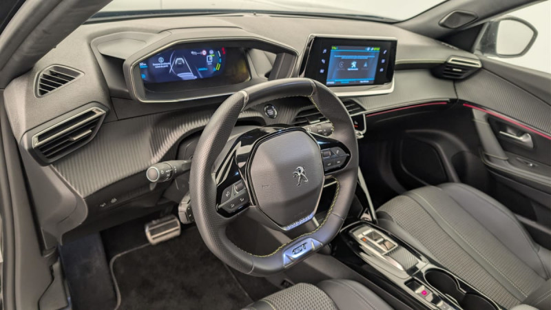 Pédalier Sport aluminium / Détection de sous-gonflage indirecte / Commande d'ouverture extérieure couleur caisse / Aide graphique et sonore au stationnement AV / Avertisseur de temps de conduite / Aide graphique et sonore au stationnement AR / Essuie-vitre AV à déclenchement automatique / Eclairage intérieur à LED / Filets aumônières au dos des sièges AV / Commutation automatique des feux de route / feux de croisement / Frein de stationnement électrique avec aide au démarrage en pente et serrage automatique / Barres de toit longitudinales Noir Brillant / Becquet AR Noir Brillant / Pack Safety Plus : Pack Safety Freinage d'urgence automatique avec caméra & radar / Siège passager AV à réglage manuel en hauteur / Programme de Stabilité Electronique (ESC) avec ASR, ABS, REF, AFU, CDS et TSM / Planche de bord slush surpiquée et panneaux de portes AV avec décors aspect carbone et éclairage polyambiant 8 couleurs / Volant compact cuir fleur avec laçage vert, Lion chromé et badge GT et commandes multimédia sur volant / Peugeot i-Cockpit 3D avec combiné tête haute numérique 3D / 4 poignées de maintien (2 à l'AV et 2 à l'AR) / Rétroviseur intérieur photosensible frameless / Eclairage extérieur d'accueil et d'accompagnement / Fixations suivant norme ISOFIX et Top Tether avec étiquettes de localisation aux places latérales AR / Fixations suivant norme ISOFIX et Top Tether avec étiquette de localisation sur siège passager AV / Projecteurs Peugeot Full LED Technology avec signature 3 griffes, indicateurs de direction à LED / Feux diurnes à LED sous projecteurs / Coques de rétroviseurs extérieurs avec répétiteurs latéraux à LED / Protections latérales de portes Noir grainées avec inserts Métallure / Commandes d'ouverture intérieure de portes chromées / Console haute avec accoudoir intégré / Pare-brise teinté acoustique sérigraphié bi-couches / 6 HPs (2 tweeters et 2 woofers à l'AV et 2 HPs à l'AR) / Vitres latérales AR et lunette AR chauffante temporisée surteintées / Fonction DAB (Radio Numérique Terrestre) / Sellerie Tri matière Tissu CAPY/TEP surpiqûres Vert Adamite / Air conditionné automatique monozone / Rétroviseurs extérieurs dégivrants avec réglage et rabattement électriques, éclairage de seuil / 2 prises USB (Recharge type A) sur console haute pour passagers AR / PEUGEOT Connect SOS / Fonctions Mirror Screen (Apple Carplay/Android Auto) / Radio avec écran tactile capacitif 7" couleur, 2 prises USB console AV (1 Data Type A, 1 recharge type C) / Calandre avec grille supérieure noir grainée et marquage horizontal couleur caisse, grille inférieur avec décor Métallure, enjoliveur supérieur couleur caisse / Plancher de coffre modulable 2 positions / Kit de dépannage de pneumatique compresseur 12 V avec cartouche de produit de colmatage / Câble électrique mode 3 triphasé 22 kW / Navigation 3D connectée avec reconnaissance vocale, écran tactile capacitif 7" 2 prises USB sur console AV, Cartographie Europe / Visio Park 1 (Caméra de recul) / Eclairage de coffre / 6 airbags - frontaux auto-adaptatifs, latéraux AV (thorax et abdominaux), rideaux AV / Jantes alliage 17'' SALAMANCA diamantées bi-tons Noir Onyx et vernis brillant, cabochons et vis Noir Onyx / Commandes multimédia intégrées au volant / Lève-vitres AV/AR électriques et séquentiels avec antipincement / / Véhicules équivalents: Captur - C4 Cactus - CX3