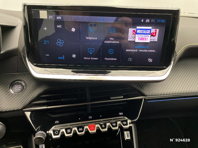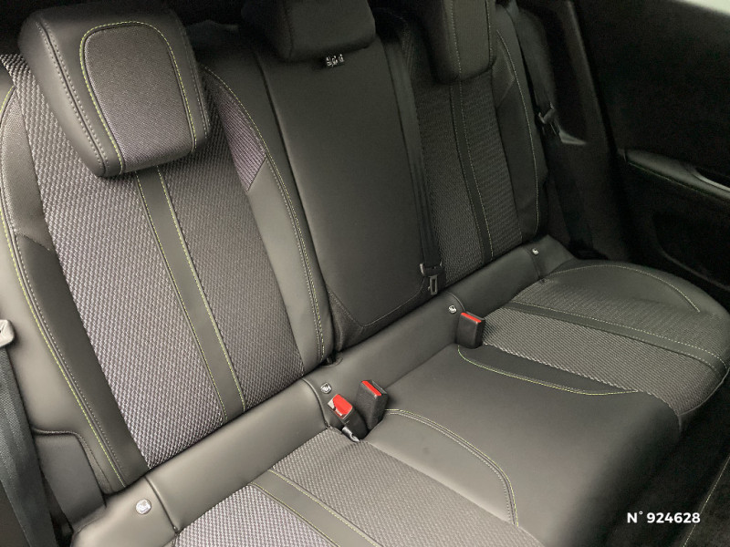 6 airbags (Frontaux adaptatifs, latéraux AV, rideaux AV et AR) / 6 haut-parleurs (2 tweeters et 2 woofers à l'AV et 2 haut-parleurs à l'AR) / Peugeot i-Cockpit 3D avec combiné tête haute numérique 3D 10'' / Eclairage polyambient 8 couleurs / Rétroviseurs extérieurs dégivrants avec réglage et rabattement électriques / Vitres latérales AR et lunette AR chauffante temporisée surteintées / Surtapis AV et AR / Visiopark 1: caméra de recul HD & aide au stationnement AV et AR, graphique et sonore / Habitacle et ciel de pavillon noir / Eclairage polyambiant 8 couleurs (Liés aux modes de conduite) / Boîte de vitesse automatique, séquentielle (6 rapports) / Commutation automatique des feux de route / feux de croisement / Pack Safety Plus Pack Safety: - Régulateur / Limiteur de vitesse - Freinage automatique d'urgence avec alerte risque de collision, détection élargie (3 caméras haut de pare-brise) et protection des usagers de la route vulnérables (piétons, cyclistes, ...) - Alerte active de franchissement involontaire de ligne et bas-côté - Reconnaissance étendue des panneaux de signalisation et préconisation de vitesse - Alerte attention conducteur - Freinage d'urgence automatique de jour et de nuit (3 caméras & radar) / Peugeot i-Cockpit 3D avec combiné tête haute numérique 10" numérique / Pédalier Sport aluminium / Pare-brise teinté acoustique sérigraphié bi-couches / Accès et démarrage mains libres Proximity / 4 poignées de maintien (2 à l'AV et 2 à l'AR) / Eléments de style éxterieur Lécheurs de vitres Noir Brillant, Katana noir mat avec insert noir brillant et monogramme GT sur motorisations thermiques, Protections latérales de portes Noir grainées avec inserts Gris Météor, Becquet AR Noir Perla Nera, Seuils de porte aluminium avec lettrage PEUGEOT Noir / Console haute avec accoudoir & frein de stationnement électrique 1 prise USB type C (Charge) et 1 prise USB type A (Charge) pour passagers AR, Sélecteur de mode de conduite Normal/Eco/Sport / Siège passager AV avec réglage manuel en hauteur / 4 poignées de maintien rétractables (2 à l'AV et 2 à l'AR) / Toit Black Diamond / Télécommande 3 boutons + clé standard / Pack Visibilité Allumage automatique des feux de croisement; Essuie vitre AV à déclenchement automatique; Eclairage extérieur d'accueil et d'accompagnement / Lève-vitres électriques AV et AR et séquentiels avec anti-pincement / Canule d'echappement double chromée / Peugeot i-Connect Radio DAB avec écran tactile couleur personnalisable 10" HD,Bluetooth, Mirror Screen sans fil (Apple CarPlay/Android Auto), Wifi, 1 prise USB type C ( Data+charge ) et 1 prise USB type C (Charge) sur console AV / Projecteurs Peugeot upper Full LED Technology avec feux diurnes à LED 3 griffes / Eléments de style intérieure Planche de bord moussée avec double surpiqûres adamite/tramontane et baguette Noir brillante avec jonc chromé et jonc lumineux, Panneaux de portes AV avec décor Carbone et baguette Noir brillante et jonc lumineux (8 couleurs) et crosse de tirage TEP Isabella Mistral, Panneaux de portes AR avec grain Karsten avec baguette Noir brillant, Accoudoirs de porte avant et arrière tissu/TEP Isabella avec surpiqûre Adamite / Volant compact cuir fleur avec commandes multimédia intégrées / Eclairage intérieur Miroir de courtoisie dans pare soleil éclairéà LED, Eclairage à LED partie basse rangement AR et caves à pieds / Eclairage intérieur Plafonnier AV A-DOME 3 LEDs (1 lampe, 2 liseuses) 2 liseuses AR LED i DOME / ESP Déconnectable avec aide au démarrage en pente et détection de sous gonflage indirecte / Air conditionné automatique monozone / Sellerie tissu BELOMKA, accompagnement TEP Isabella, trimatière Uni Capy et surpiqûres Vert Adamit / Eléments de style éxterieur : Katana noir mat avec insert noir brillant et monogramme GT sur motorisations thermiques, Protections latérales de portes Noir grainées avec inserts Gris Météor, Becquet AR Noir Perla Nera, Seuils de porte aluminium avec lettrage PEUGEOT Noir / Barres de toit longitudinales Noir Brillant / PEUGEOT Connect SOS & Assistance et Teleservices SOS & Assistance : Appel d'urgence automatique ou manuel par push SOS, et mise en relation directe avec la plateforme d'assistance PEUGEOT (24h/24 7j/7) Teleservices : Détection du besoin d'une intervention technique ou d'une opération d'entretien périodique et transmission au réseau PEUGEOT pour prise de rendez vous / Eclairage intérieur: Plafonnier AV A-DOME 3 LEDs (1 lampe, 2 liseuses), 2 liseuses AR A-DOME / Jantes alliage 17'' diamantées KARAKOY bi-tons Noir Onyx et vernis brillant / Rétroviseur intérieur électrochrome / Plancher de coffre modulable 2 positions / Lève-vitres AV et AR électriques séquentiels avec antipincement / 6 Airbags - Frontaux auto-adaptatifs, latéraux AV et rideaux AV et AR