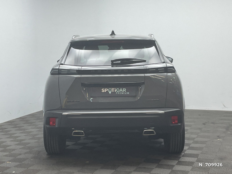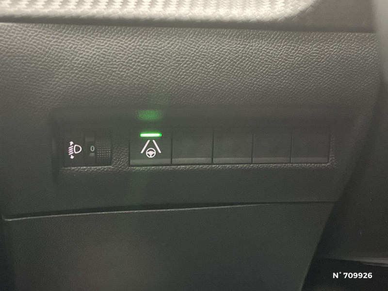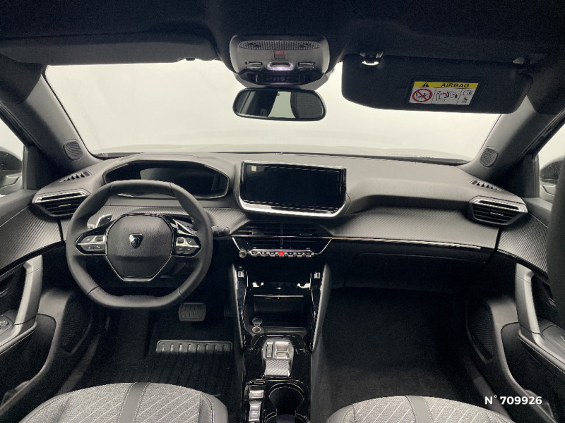 4 poignées de maintien rétractables (2 à l'AV et 2 à l'AR) / Canule d'echappement double chromée / Eclairage intérieur: Plafonnier AV A-DOME 3 LEDs (1 lampe, 2 liseuses), 2 liseuses AR A-DOME / Pare-brise teinté acoustique / Habitacle et ciel de pavillon Noir / Télécommande 3 boutons + clé standard / Siège passager AV avec réglage manuel en hauteur / 6 HPs (2 tweeters et 2 woofers à l'AV et 2 HPs à l'AR) / Vitres latérales AR et lunette AR chauffante temporisée surteintées / Air conditionné automatique monozone / Rétroviseurs extérieurs dégivrants avec réglage et rabattement électriques / Peugeot Connect SOS & Assistance et Teleservices SOS & Assistance : Appel d'urgence automatique ou manuel par push SOS, et mise en relation directe avec la plateforme d'assistance PEUGEOT (24h/24 7j/7) , Teleservices : Détection du besoin d'une intervention technique ou d'une opération d'entretien périodique et transmission au réseau PEUGEOT pour prise de rendez vous / Sellerie tissu CASUAL LOMSA embossé, accompagnement TEP Isabella, trimatière LOMSA et surpiqûres Quartz / Jantes alliage 17" diamantées KARAKOY bi-tons Noir Onyx et vernis brillant / ESP Déconnectable avec aide au démarrage en pente et détection de sous gonflage indirecte / Volant compact en croûte de cuir avec commandes multimédia intégrées / Console haute avec accoudoir & frein de stationnement électrique 1 prise USB type C (Charge) et 1 prise USB type A (Charge) pour passagers AR, Sélecteur de mode de conduite Normal/Eco/Sport / Aide au stationnement AV/AR, graphique et sonore / Eléments de style éxterieur: Calandre haut de gamme Noir avec marquage vertical couleur caisse, larmes Dark Chrome, Décor de grille inférieure Gris Météor, Katana noir mat avec insert noir brillant / Eléments de style intérieur: Panneaux de portes AV avec décor Carbone et baguette Noir brillant avec tampographie Quartz, Accoudoirs de porte AV/AR tissu/TEP Isabella avec surpiqûre Quartz / Peugeot i-Cockpit avec combiné tête haute 10" numérique / Peugeot i-Connect: Radio DAB avec écran tactile couleur personnalisable 10" HD, Bluetooth, Mirror Screen sans fil (Apple CarPlay/Android Auto), Wifi, 1 prise USB type C ( Data+charge) et 1 prise USB type C (Charge) sur console AV / Projecteurs Peugeot LED Technology avec feux diurnes à LED 3 griffes / Pack Visibilité - Allumage automatique des feux de croisement - Essuie vitre AV à déclenchement automatique - Eclairage extérieur d'accueil et d'accompagnement / Plancher de coffre standard / Boîte de vitesse automatique, séquentielle (6 rapports) / Lève-vitres AV/AR électriques et séquentiels avec antipincement / 6 Airbags (Frontaux auto-adaptatifs, latéraux AV et rideaux AV/AR) / Rétroviseur intérieur électrochrome / Pack Safety Plus Pack Safety: - Régulateur / Limiteur de vitesse - Freinage automatique d'urgence avec alerte risque de collision, détection élargie (3 caméras haut de pare-brise) et protection des usagers de la route vulnérables (piétons, cyclistes, ...) - Alerte active de franchissement involontaire de ligne et bas-côté - Reconnaissance étendue des panneaux de signalisation et préconisation de vitesse - Alerte attention conducteur Freinage d'urgence automatique de jour et de nuit (3 caméras & radar)