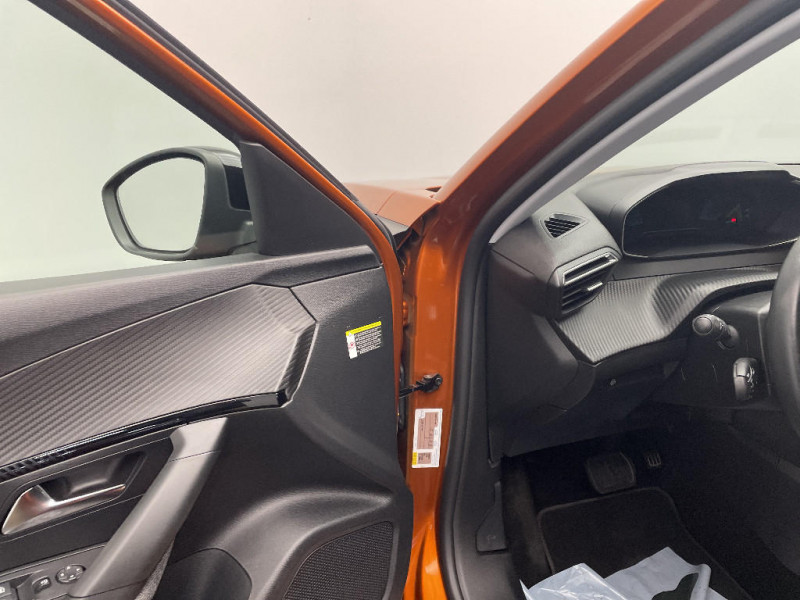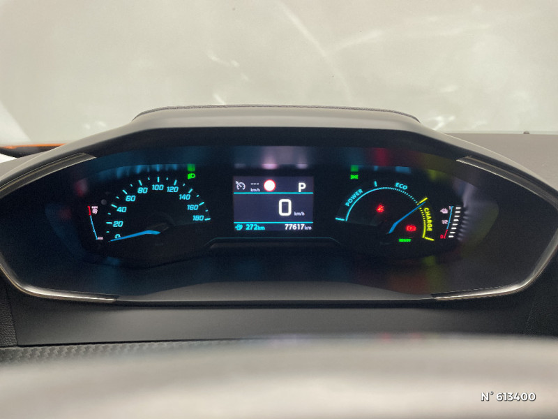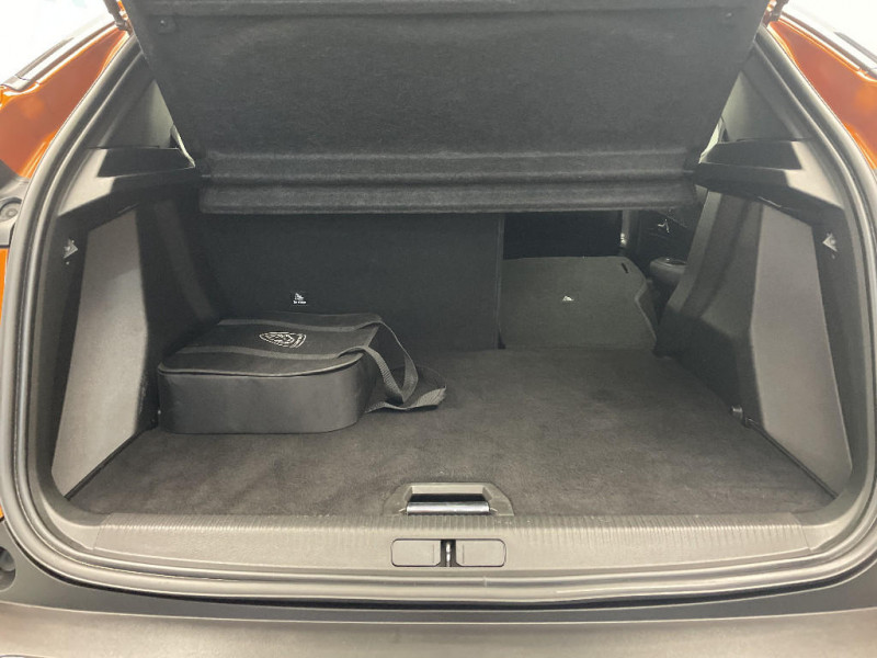 Volant compact croute de cuir, Lion chromé et commandes multimédia sur volant / Prédisposition Peugeot Connect SOS & Assistance et Télémaintenance / Filets aumônières au dos des sièges AV / Console haute avec accoudoir intégré / Eclairage de coffre à ampoule / Feux diurnes à LED sous projecteurs / Ceintures de sécurité AV conducteur et passager à enrouleurs pyrotechniques avec limiteurs d'effort et détection de non bouclage / Peugeot i-Cockpit avec combiné tête haute analogique et matrice TFT 3,5'' couleur / Air conditionné automatique monozone / Programme de Stabilité Electronique (ESC) avec ASR, ABS, REF, AFU, CDS et TSM / Plancher de coffre 2 positions / Kit de dépannage pneumatique avec conditionnement rigide / Projecteurs LED Technology, indicateurs de direction à ampoules / Détection de sous-gonflage indirecte / Fonction DAB (Radio Numérique Terrestre) / Fixations suivant norme ISOFIX et Top Tether avec étiquettes de localisation aux places latérales AR / Aide graphique et sonore au stationnement AR / Habitacle et ciel de pavillon gris clair / Ceintures AR centrale 3 points avec détection de non bouclage / Eclairage extérieur d'accueil et d'accompagnement / Radio avec écran tactile capacitif 7" couleur, 1 prise USB (DATA type A) sur console AV / Barres de toit longitudinales Noir Brillant / Planche de bord slush et panneaux de portes AV avec décors aspect carbone et baguette Noir Brillant avec jonc chromé / Seuils de portes AV en inox avec marquage PEUGEOT Noir / 4 poignées de maintien (2 à l'AV et 2 à l'AR) / Avertisseur de temps de conduite / Pack Safety / Airbags frontaux auto-adaptatifs, latéraux AV (thorax et abdominaux), rideaux AV / Lécheurs de vitres latérales Noir Mat / Passages de roues Noir Mat / Protections latérales de portes Noir grainées / Commandes d'ouverture intérieure de portes chromées / Canule d'échappement non chromée / Sellerie Tri matière Tissu PNEUMA 3D, surpiqûre Bleu Azure / Rétroviseurs extérieurs dégivrants avec réglage et rabattement électriques,éclairage de seuil / Démarrage mains libres avec 2 télécommandes 3 boutons mains libres / Kit de dépannage de pneumatique compresseur 12 V avec cartouche de produit de colmatage / Câble électrique mode 3 triphasé 22 kW / Eclairage intérieur à ampoules : plafonnier AV à 3 spots (1 lampe et 2 liseuses), miroir de courtoisie dans pare-soleil non éclairé / Essuie-vitre AV à déclenchement automatique / Badge Style sur katana et sérigraphie Style sur custodes / Fonctions Mirror Screen (Apple Carplay/Android Auto) / Katana Noir Mat avec insert Noir Brillant et marquage "e" / Radio avec écran tactile capacitif 7" couleur, 2 prises USB console AV (1 Data Type A, 1 recharge type C) / Plancher de coffre standard + plancher de coffre modulable (réglable en hauteur) / Lève-vitres AV et AR électriques séquentiels avec antipincement / Vitres latérales AR et lunette AR chauffante temporisée surteintées / Eclairage intérieur à ampoules / Plancher de coffre modulable 2 positions / Frein de stationnement électrique avec aide au démarrage en pente et serrage automatique / Enjoliveurs de seuil de coffre Métallure / 6 haut-parleurs (2 tweeters et 2 woofers à l'AV et 2 haut-parleurs à l'AR) / Coques de rétroviseurs extérieurs avec répétiteurs latéraux à LED / Ceintures de sécurité AR latérales avec enrouleurs pyrotechniques, limiteurs d'effort et détection de non bouclage / Baguette planche de bord et panneaux de portes AV avec décor Noir/Bleu Azure / Seuils de portes inox avec lettrage PEUGEOT / Calandre avec grille supérieure noir grainée et marquage horizontal couleur caisse, grille inférieur avec décor Métallure, enjoliveur supérieur couleur caisse / Enjoliveurs de custode Noir Brillant / Chargeur embarqué 7,4 kW monophasé / Projecteurs LED Technology, avec indicateurs de direction à ampoules / Pare-brise teinté acoustique / PEUGEOT Connect SOS & Assistance et Telemaintenance / Calandre avec grille supérieure noir grainée et marquage horizontal couleur caisse, grille inférieur avec décor Métallure, enjoliveur supérieur couleur caisse, Lion dichroïque / Rétroviseur intérieur photosensible / Commande d'ouverture extérieure couleur caisse / Câble électrique mode 2, prises de charge T2/EF type Green'up / Becquet AR couleur caisse / Teinte métallisées Orange Fusion / Surtapis / 2 prises USB (Recharge type A) sur console haute pour passagers AR / Jantes alliage 16" ELBORN Gris Anthra, cabochons Gris Anthra et vis chromés