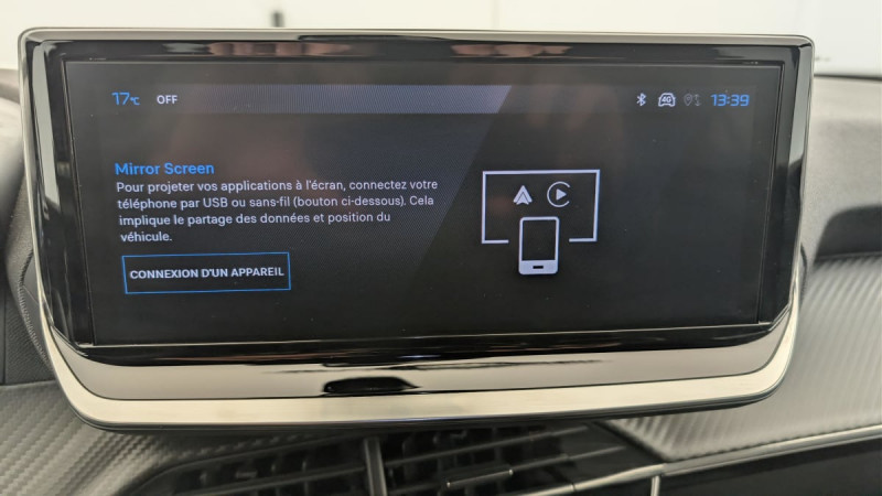 Habitacle et ciel de pavillon Noir / Télécommande 3 boutons + clé standard / Canule d'échappement non chromée / 4 poignées de maintien (2 à l'AV et 2 à l'AR) / Siège passager AV avec réglage manuel en hauteur / 6 HPs (2 tweeters et 2 woofers à l'AV et 2 HPs à l'AR) / Vitres latérales AR et lunette AR chauffante temporisée surteintées / Air conditionné automatique monozone / Rétroviseurs extérieurs dégivrants avec réglage et rabattement électriques / Lève-vitres électriques AV/ AR et séquentiels avec anti-pincement / Barres de toit longitudinales Noir Brillant / 6 airbags (Frontaux adaptatifs, latéraux AV, rideaux AV/AR) / Peugeot Connect SOS & Assistance et Teleservices SOS & Assistance : Appel d'urgence automatique ou manuel par push SOS, et mise en relation directe avec la plateforme d'assistance PEUGEOT (24h/24 7j/7) , Teleservices : Détection du besoin d'une intervention technique ou d'une opération d'entretien périodique et transmission au réseau PEUGEOT pour prise de rendez vous / Sellerie tissu CASUAL LOMSA embossé, accompagnement TEP Isabella, trimatière LOMSA et surpiqûres Quartz / Jantes alliage 17" diamantées KARAKOY bi-tons Noir Onyx et vernis brillant / ESP Déconnectable avec aide au démarrage en pente et détection de sous gonflage indirecte / Volant compact en croûte de cuir avec commandes multimédia intégrées / Aide au stationnement AV/AR, graphique et sonore / Eléments de style éxterieur: Calandre haut de gamme Noir avec marquage vertical couleur caisse, larmes Dark Chrome, Décor de grille inférieure Gris Météor, Katana noir mat avec insert noir brillant / Eléments de style intérieur: Panneaux de portes AV avec décor Carbone et baguette Noir brillant avec tampographie Quartz, Accoudoirs de porte AV/AR tissu/TEP Isabella avec surpiqûre Quartz / Console haute avec accoudoir & frein de stationnement électrique 1 prise USB type C (Charge) et 1 prise USB type A (Charge) pour passagers AR, Sélecteur de mode de conduite Normal/Eco / Peugeot i-Cockpit avec combiné tête haute 10" numérique / Peugeot i-Connect: Radio DAB avec écran tactile couleur personnalisable 10" HD, Bluetooth, Mirror Screen sans fil (Apple CarPlay/Android Auto), Wifi, 1 prise USB type C ( Data+charge) et 1 prise USB type C (Charge) sur console AV / Eclairage intérieur: Plafonnier AV A-DOME 3 LEDs (1 lampe, 2 liseuses), 2 liseuses AR LED i-DOME / Projecteurs Peugeot LED Technology avec feux diurnes à LED 3 griffes / Pack Visibilité - Allumage automatique des feux de croisement - Essuie vitre AV à déclenchement automatique - Eclairage extérieur d'accueil et d'accompagnement : Allumage automatique des feux de croisement Eclairage extérieur d'accueil et d'accompagnement Essuie-vitre AV à déclenchement automatique / Pack Safety Plus Régulateur / Limiteur de vitesse, Freinage d'urgence automatique avec alerte risque de collision, Alerte active de franchissement involontaire de ligne et bas--côté,côté, Reconnaissance étendue des panneaux de signalisation et préconisation de vitesse, Alerte attention conducteur, Freinage d'urgence automatique de jour et de nuit (caméra et radar) : Alerte attention conducteur Régulateur / Limiteur de vitesse Reconnaissance étendue des panneaux de signalisation et préconisation de vitesse Alerte active de franchissement involontaire de ligne et bas côté Freinage d'urgence automatique avec alerte risque de collision Freinage d'urgence automatique de jour et de nuit (caméra & radar) / Plancher de coffre standard / Rétroviseur intérieur électrochrome / Pare-brise teinté acoustique / / Véhicules équivalents: Captur - C4 Cactus - CX3
