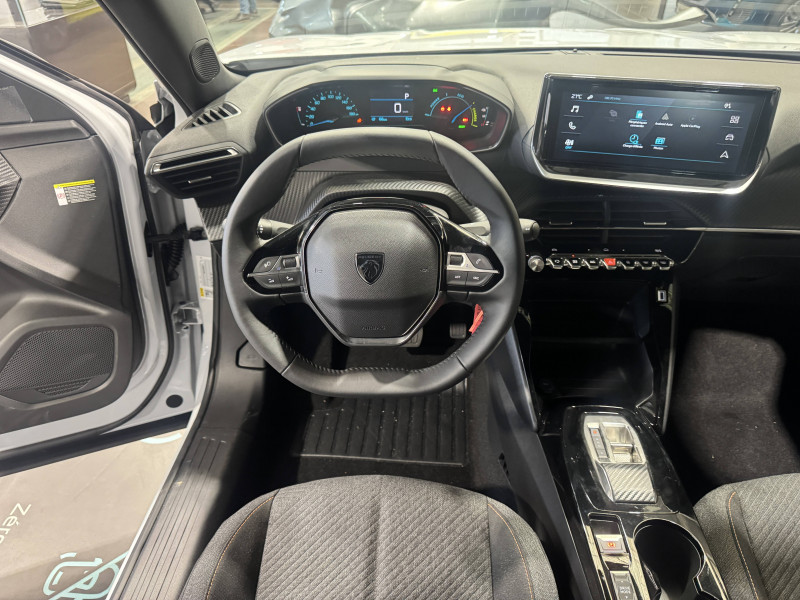 4 poignées de maintien (2 à l'AV et 2 à l'AR) / 6 airbags (Frontaux adaptatifs, latéraux AV, rideaux AV/AR) / 6 HPs (2 tweeters et 2 woofers à l'AV et 2 HPs à l'AR) / Aide au stationnement AR, graphique et sonore / Air conditionné automatique monozone / Câble électrique mode 3 triphasé 22 kW / Chargeur embarqué 7,4kW monophasé / Console haute avec accoudoir & frein de stationnement électrique 1 prise USB type C (Charge) et 1 prise USB type A (Charge) pour passagers AR, Sélecteur de mode de conduite Normal/Eco/Sport / Eclairage intérieur: Plafonnier AV A-DOME 3 ampoules (1 lampe, 2 liseuses), Eclairage de coffre à lampe / Eléments de style éxterieur: Calandre Noir grainée avec marquage horizontal polymirroirs, Décor de grille inférieure Noir grainé, Enjoliveur supérieur couleur caisse, Coques de rétroviseurs extérieurs Noir Brillant, Commandes d'ouverture de portes couleur caisse, Lécheurs de vitres Noir mat, Badge "STYLE" sur katana AV, Katana noir mat, Protections latérales de portes Noir grainées, Enjoliveurs de custode Noir, Becquet AR couleur caisse, Enjoliveur de seuil de coffre Gris Météor / Eléments de style intérieur: Planche de bord moussée avec décor Carbone et baguette Noir mat, Panneaux de portes AV avec décor Carbone et baguette Noir mat avec tampographie Noir mat, Accoudoir panneaux de portes AV/AR tissu Baladin gris chiné / ESP Déconnectable avec aide au démarrage en pente et détection de sous gonflage indirecte / Habitacle et ciel de pavillon Noir / Jantes tôle 16" avec enjoliveurs SILOM Gris Eclat & Noir Orbital, vernis mat / Lève-vitres électriques AV/ AR et séquentiels avec anti-pincement / Pack Safety Régulateur / Limiteur de vitesse, Freinage d'urgence automatique avec alerte risque de collision, Alerte active de franchissement involontaire de ligne et bas--côté,côté, Reconnaissance étendue des panneaux de signalisation et préconisation de vitesse, Alerte attention conducteur / Pack Visibilité - Allumage automatique des feux de croisement - Essuie vitre AV à déclenchement automatique - Eclairage extérieur d'accueil et d'accompagnement / Pare-brise teinté acoustique / Peugeot Connect SOS & Assistance et Teleservices SOS & Assistance : Appel d'urgence automatique ou manuel par push SOS, et mise en relation directe avec la plateforme d'assistance PEUGEOT (24h/24 7j/7) , Teleservices : Détection du besoin d'une intervention technique ou d'une opération d'entretien périodique et transmission au réseau PEUGEOT pour prise de rendez vous / Peugeot i-Cockpit avec combiné tête haute analogique 3,5" TFT / Plancher de coffre standard / Projecteurs Peugeot LED Technology avec feux diurnes à LED 3 griffes / Rétroviseur intérieur à réglage jour/nuit manuel / Rétroviseurs extérieurs dégivrants avec réglage et rabattement électriques / Sellerie tissu RENZO, accompagnement Rimini, surpiqûres Orange Sunrise / Télécommande 3 boutons + clé standard / Touch screen 10" & Bluetooth Radio & Telephone: Radio DAB avec écran tactile couleur 10" SD, Bluetooth, Mirror Screen sans fil (Apple CarPlay / Android Auto), Ecran avec Toggles Switches, 1 prise USB type C ( Data+charge ) sur console AV / Vitres latérales AR et lunette AR chauffante temporisée teintées / Volant compact en croûte de cuir avec commandes multimédia intégrées